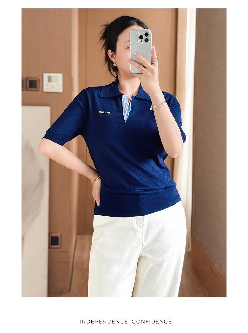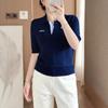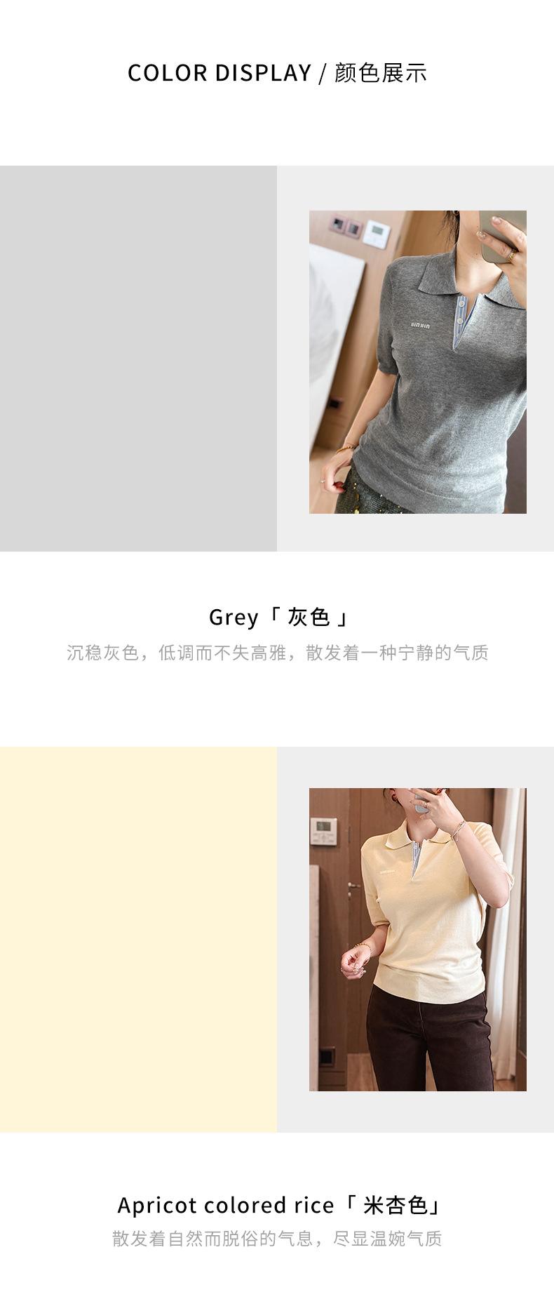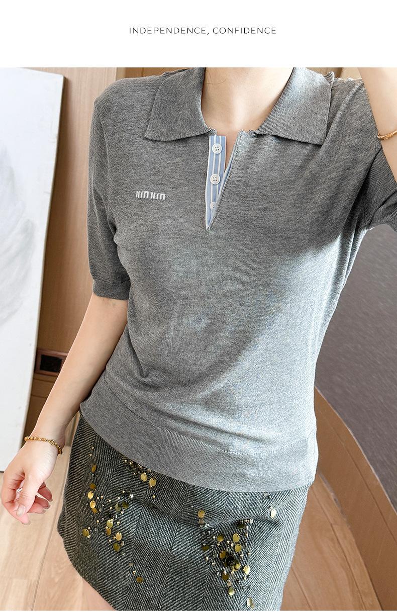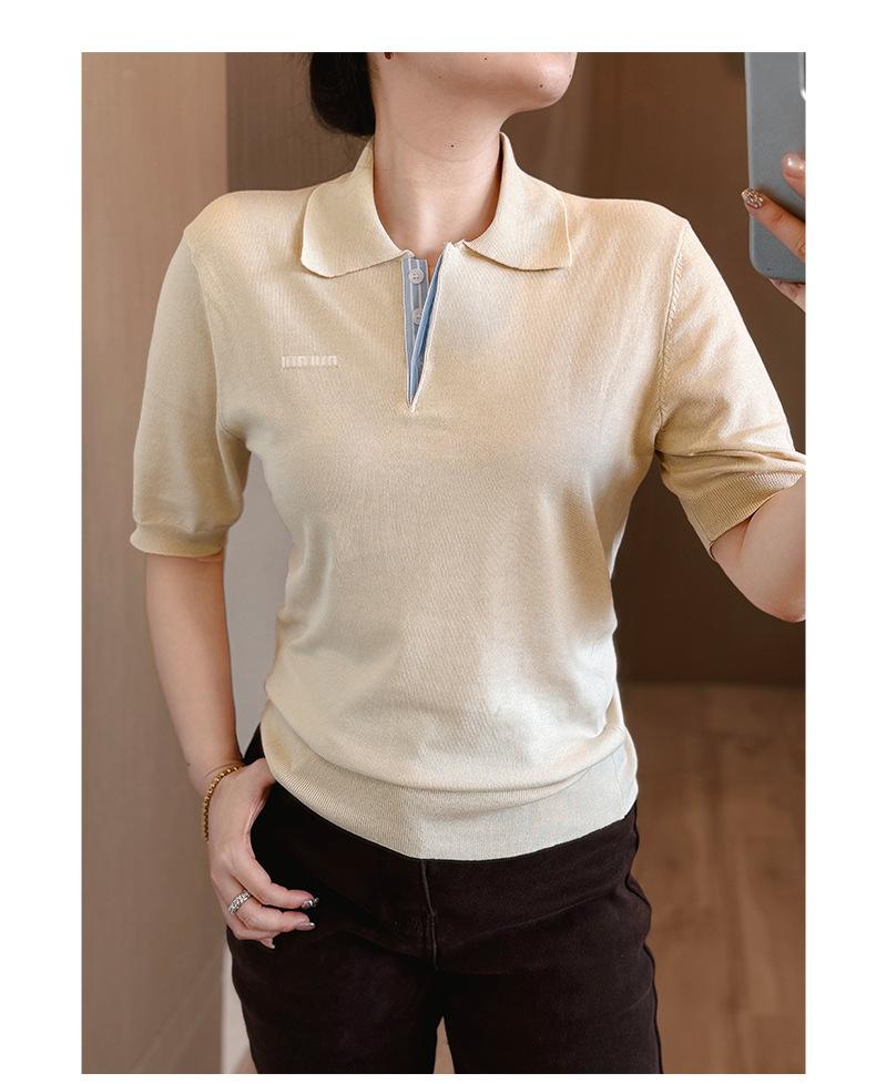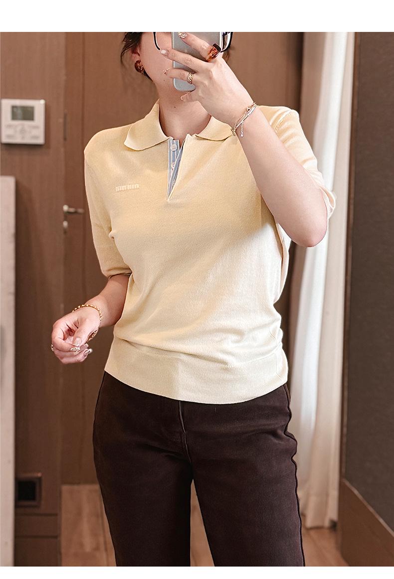 2503109- Casual Casual Ropa de Trabajo Solapa Tejido de Punto Fino de 16 Agujas Lenzing Tencel Logotipo de Letra Top de Punto para Mujer