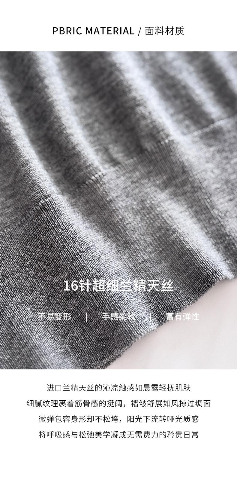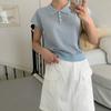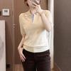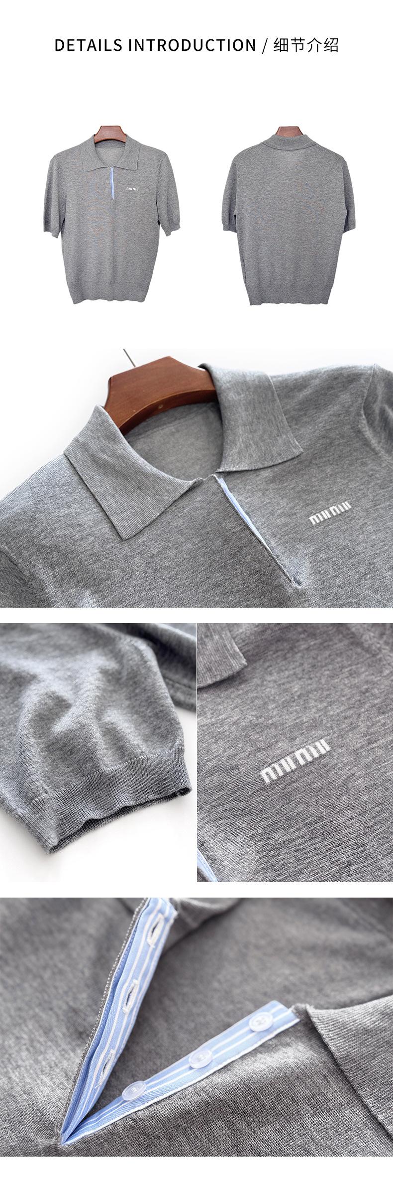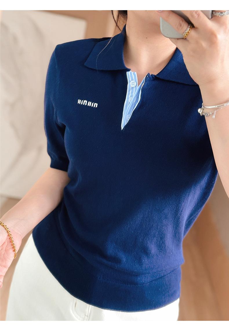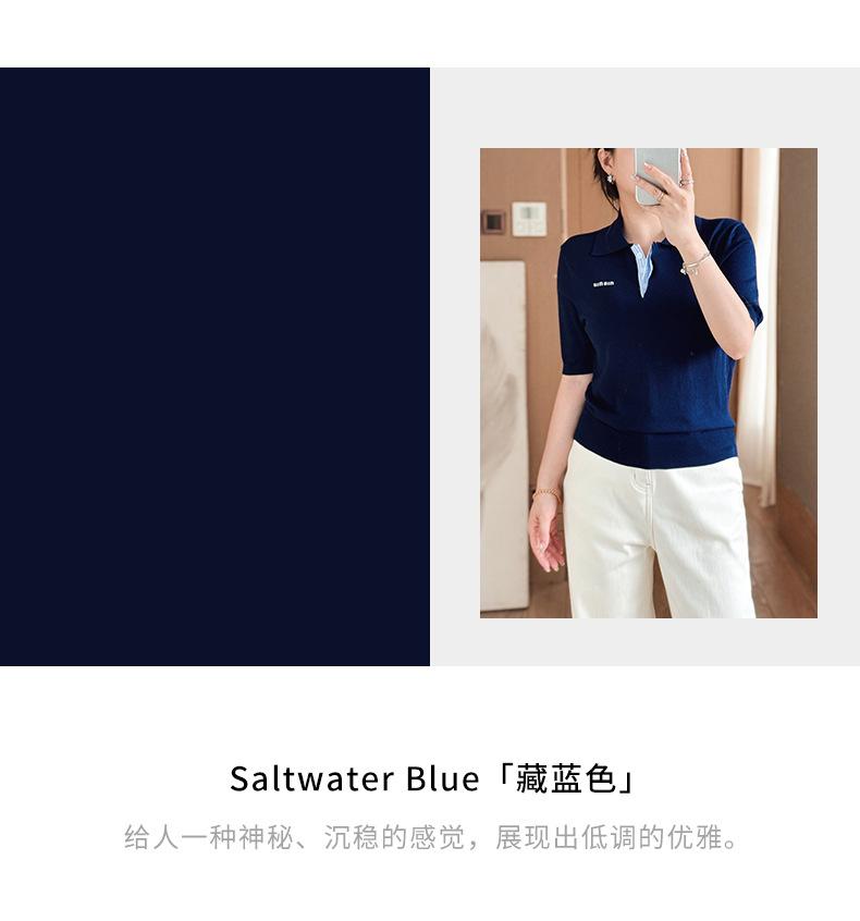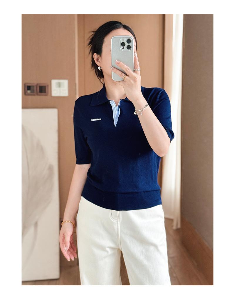 2503109- Casual Casual Ropa de Trabajo Solapa Tejido de Punto Fino de 16 Agujas Lenzing Tencel Logotipo de Letra Top de Punto para Mujer
