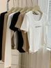 Camiseta de Algodón Puro de Manga Corta con Hombro Derecho Europeo para Mujer Verano Nuevo Diseño Nicho Top Asimétrico Ajustado Ins Trend
