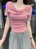 Verano Sentido del Diseño Cuello Oscilante Nicho Slim Top Dulce Hombro Descubierto Ajustado Combinable Camiseta de Manga Corta Mujer