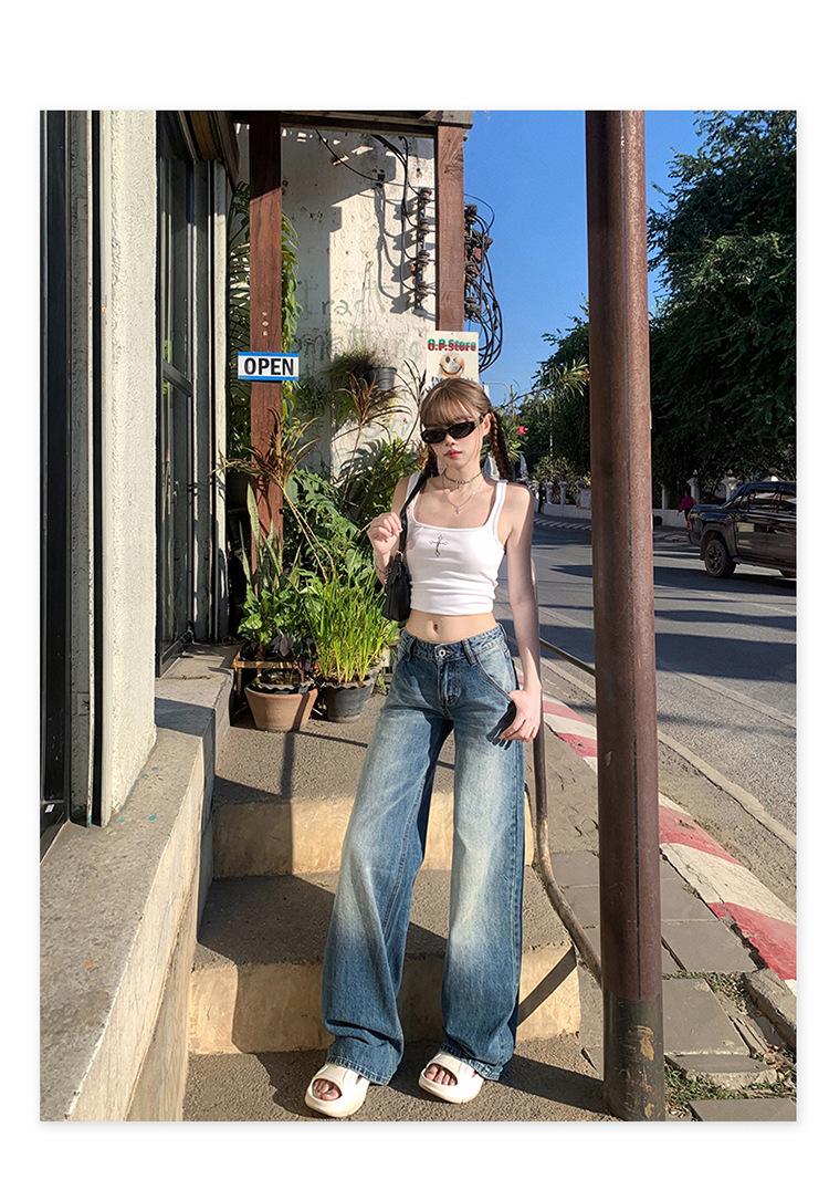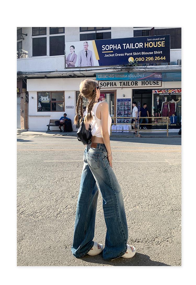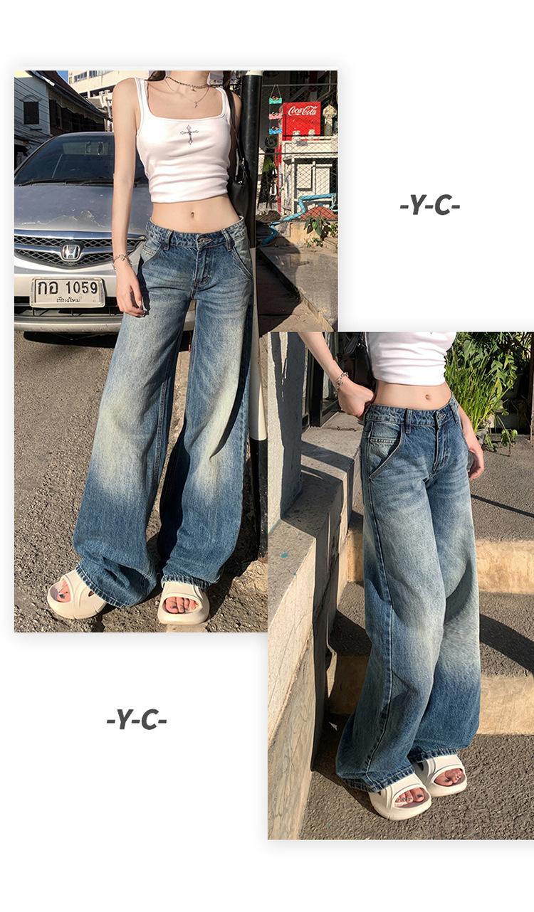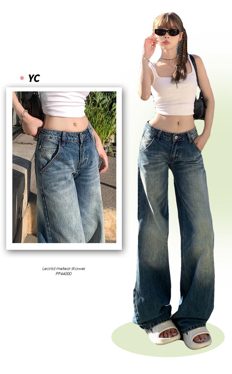 Pantalones vaqueros de pierna ancha para mujer, holgados, adelgazantes, con diseño lavado, que cubren la cadera y combinan con todo, de Young Orange#, primavera y verano.
