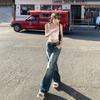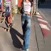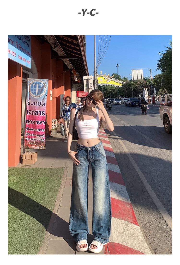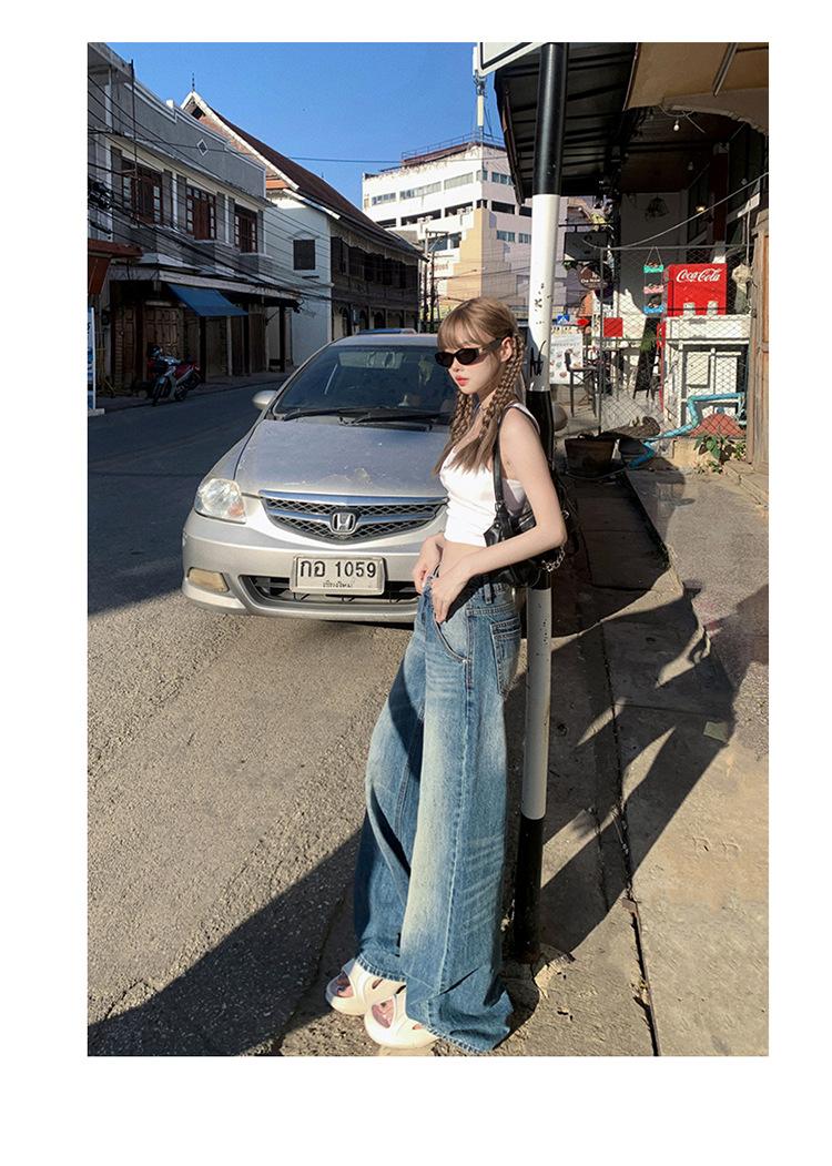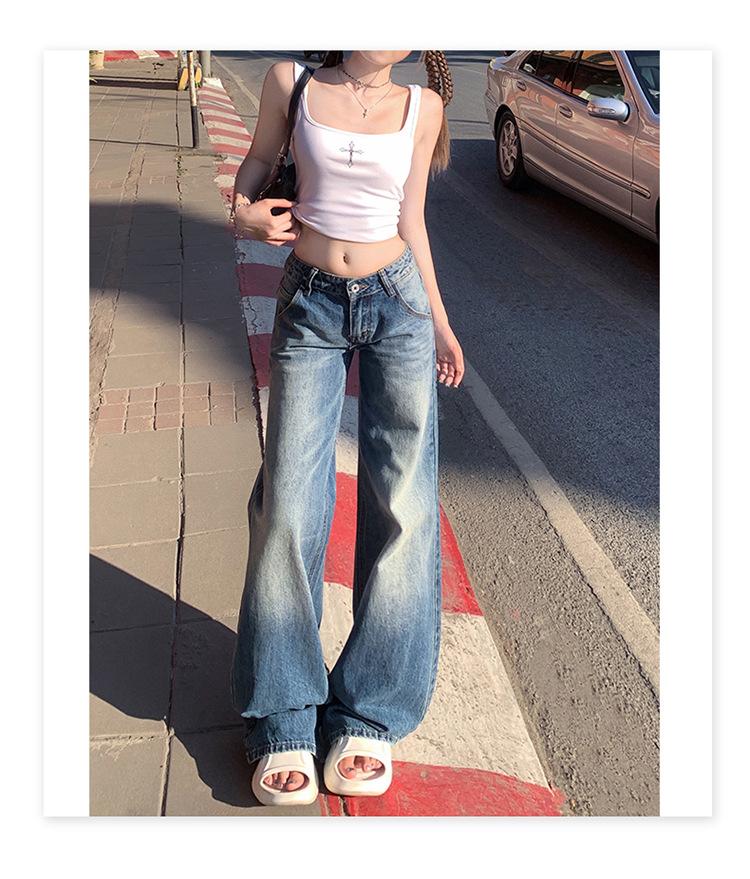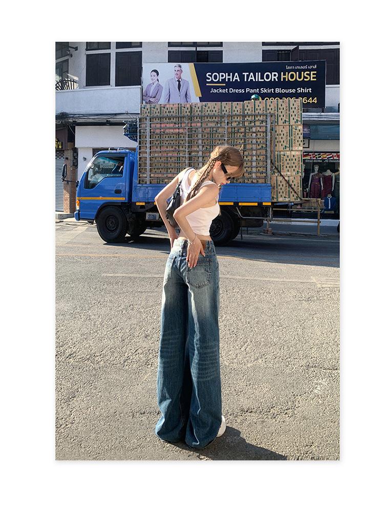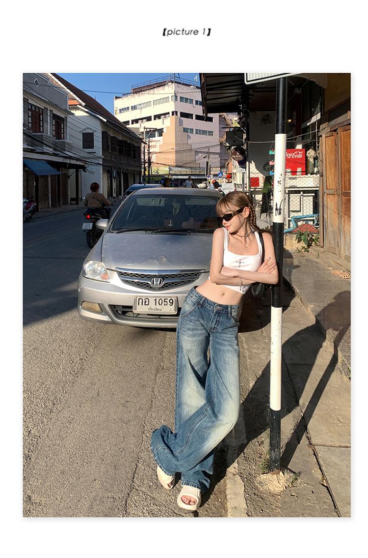 Pantalones vaqueros de pierna ancha para mujer, holgados, adelgazantes, con diseño lavado, que cubren la cadera y combinan con todo, de Young Orange#, primavera y verano.