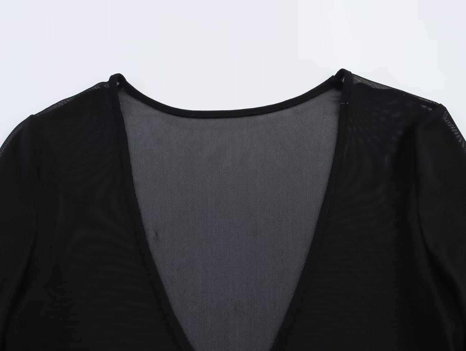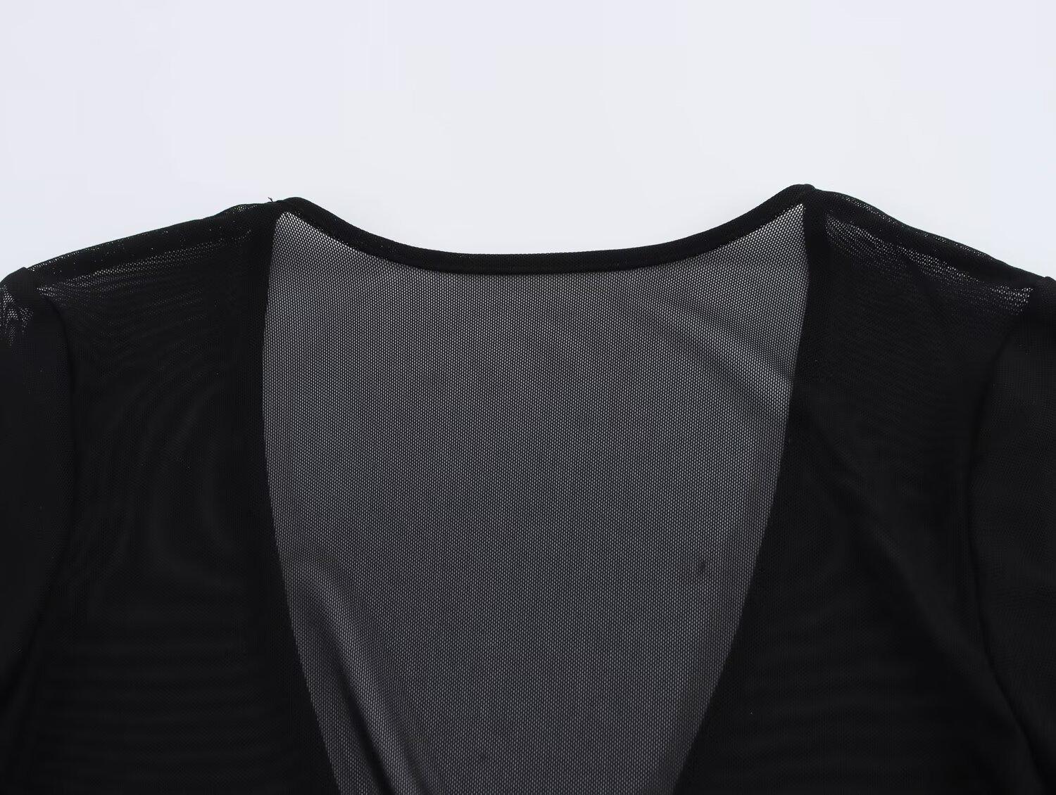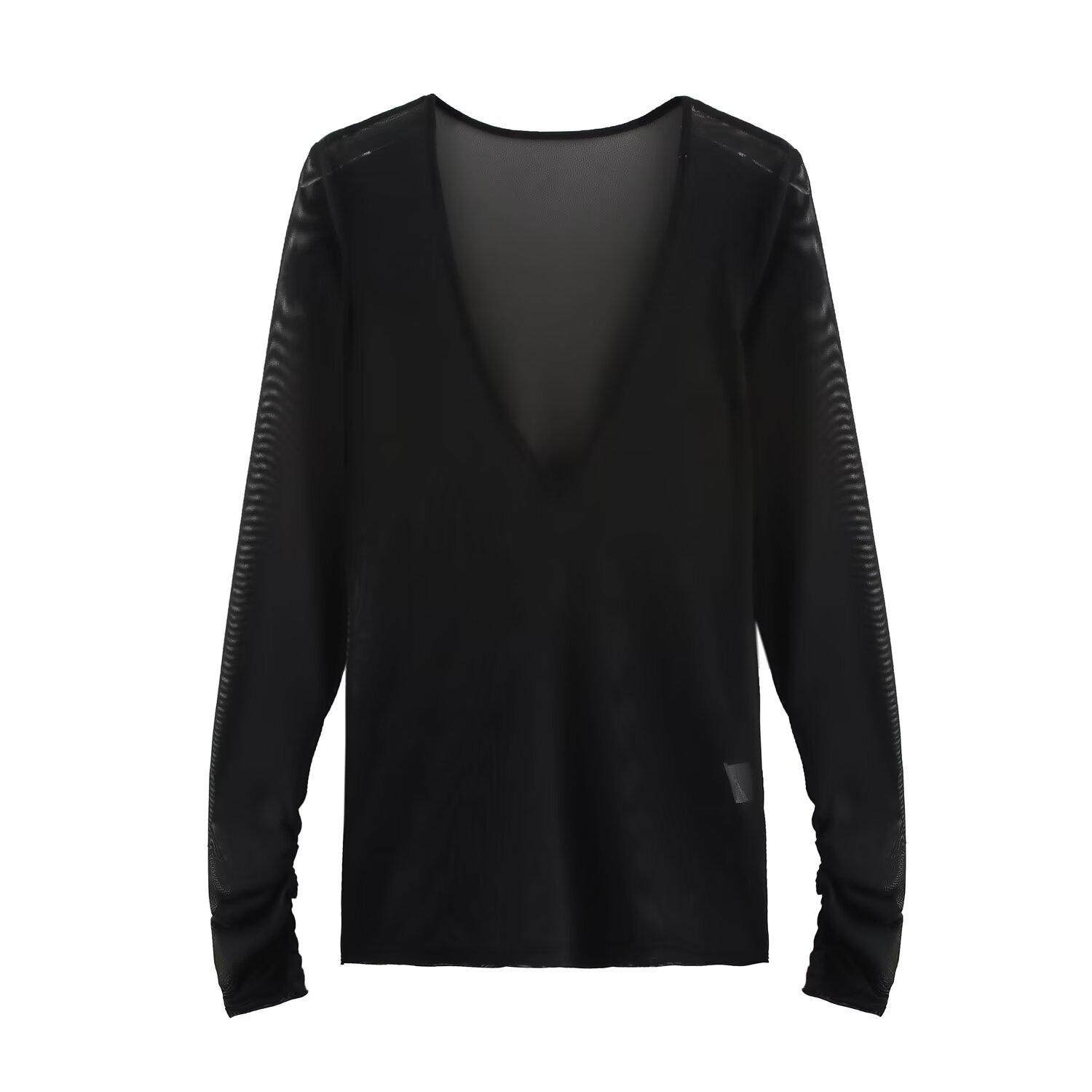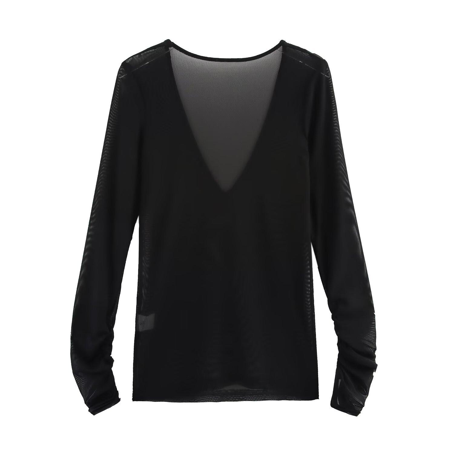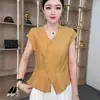 Exportación Transfronteriza Ropa de Mujer 2025 Verano Europeo y Americano Simple Cuello en V Plisada Transparente Camiseta Top Interior para Mujer B482232