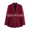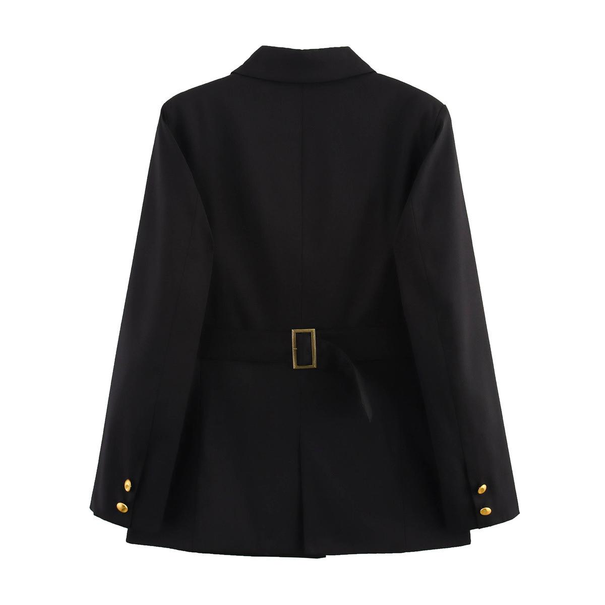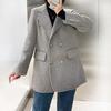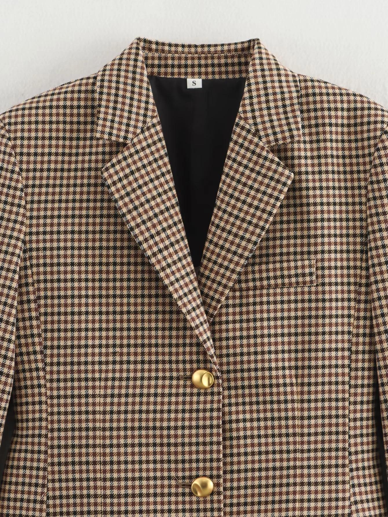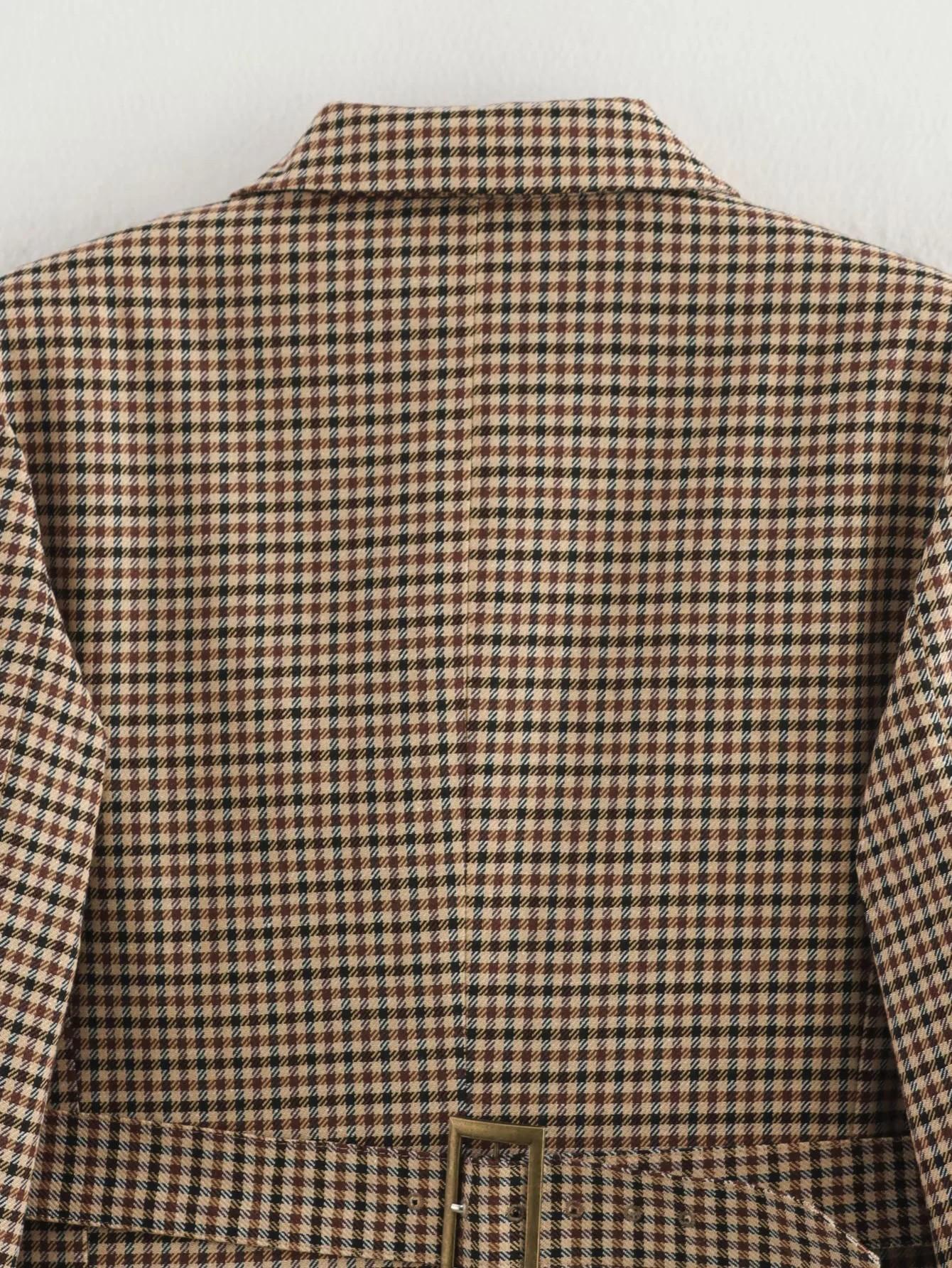 Blazer de Manga Larga de Pata de Gallo para Mujer, Estilo Europeo y Americano, Ajustado, Versátil con Cinturón, Primavera 2025