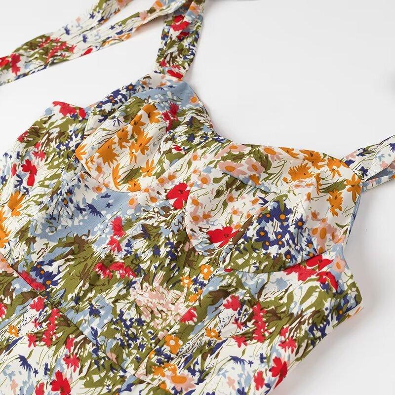 2025 Primavera Nuevo Europeo y Americano Transfronterizo para Mujer Elegante Moda Tirante Ancho Estampado Vestido Sling w091 2591