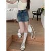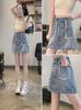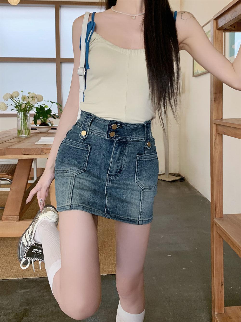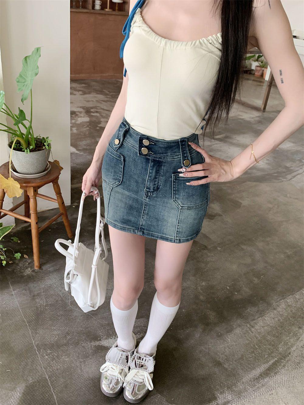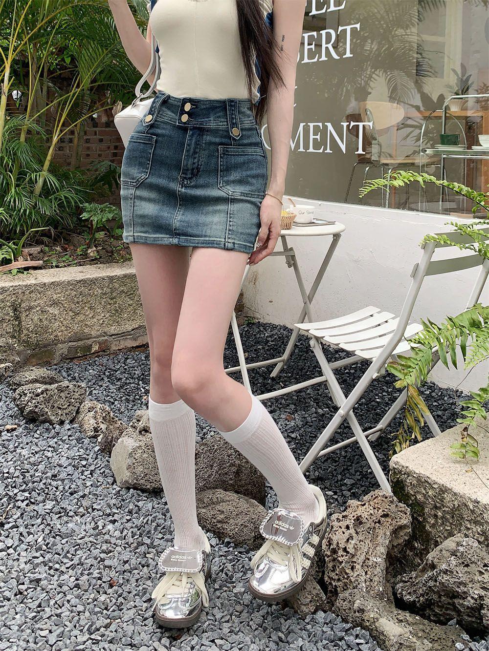 Falda Corta de Mezclilla Azul Vintage de Verano Anti-Exposición Moda Mujer 2025 Petite Cintura Alta Adelgazante Ajustada
