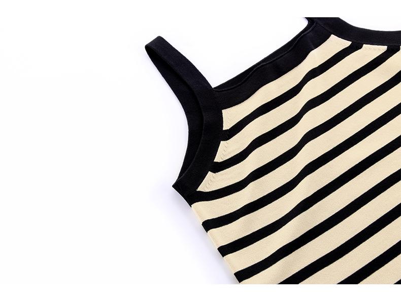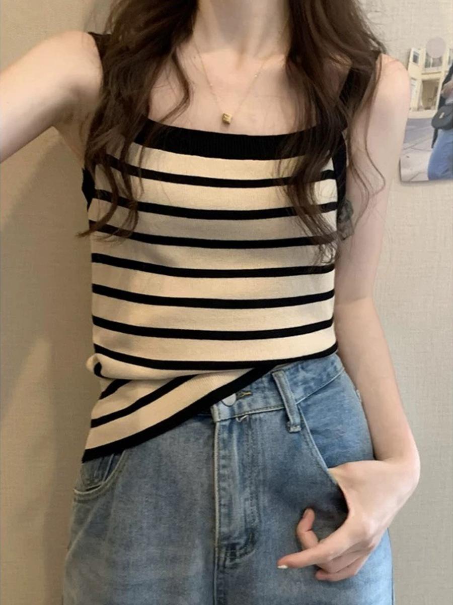 Camisola pequeña de punto de rayas francesas de fábrica para mujer, primavera y verano, dulce chica picante, ropa exterior, base, top corto sin mangas