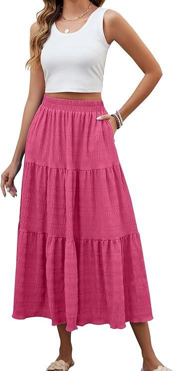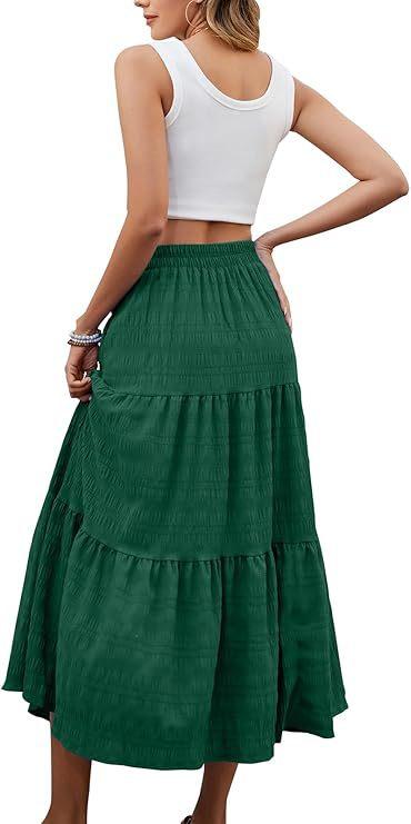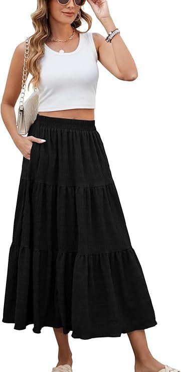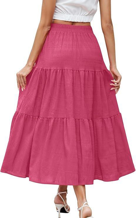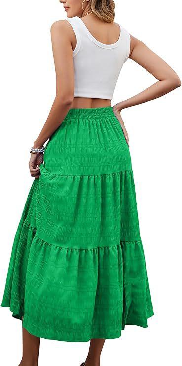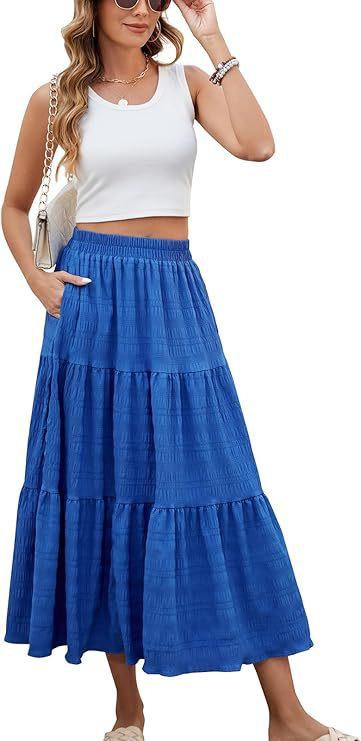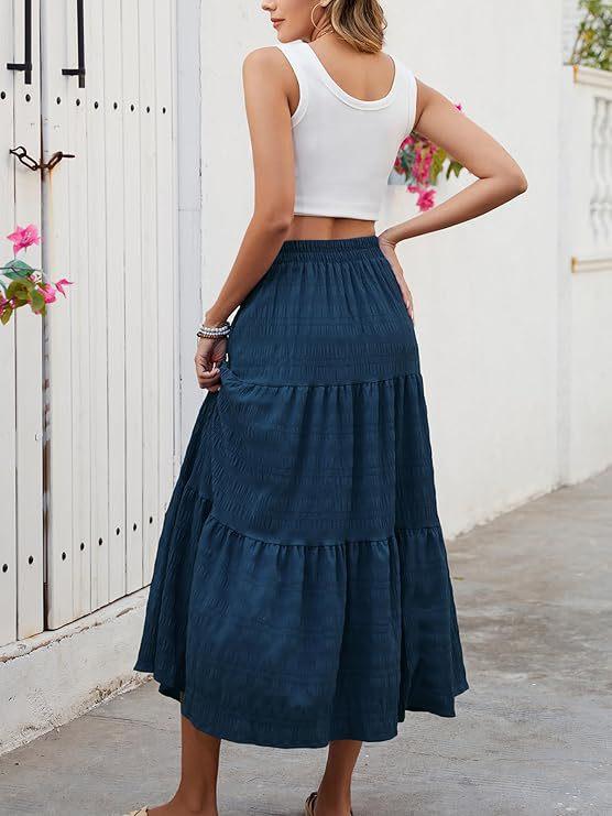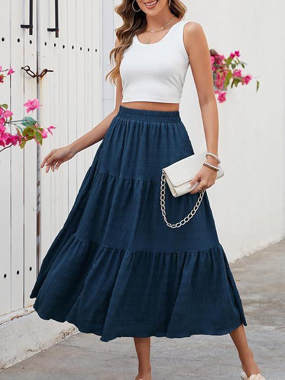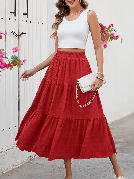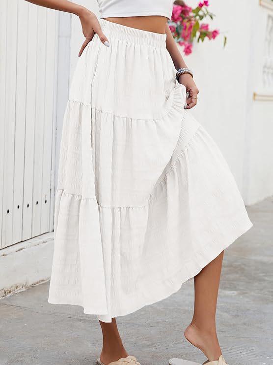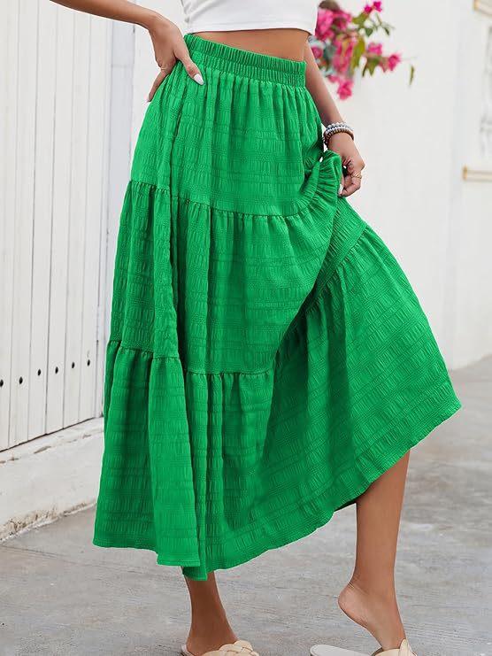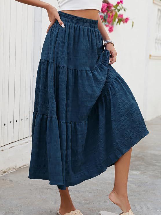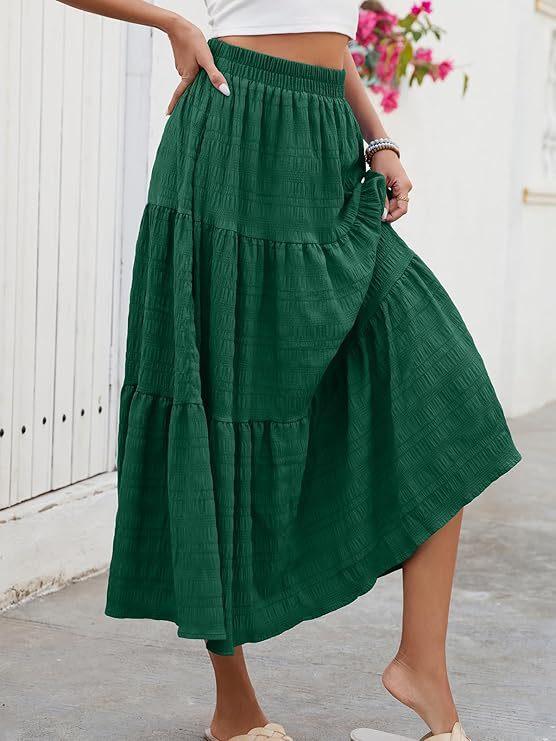 Falda Larga de Verano para Mujer 2025 Europea y Americana Talla Grande Plisada Suelta Línea A Elegante Vuelo en Capas