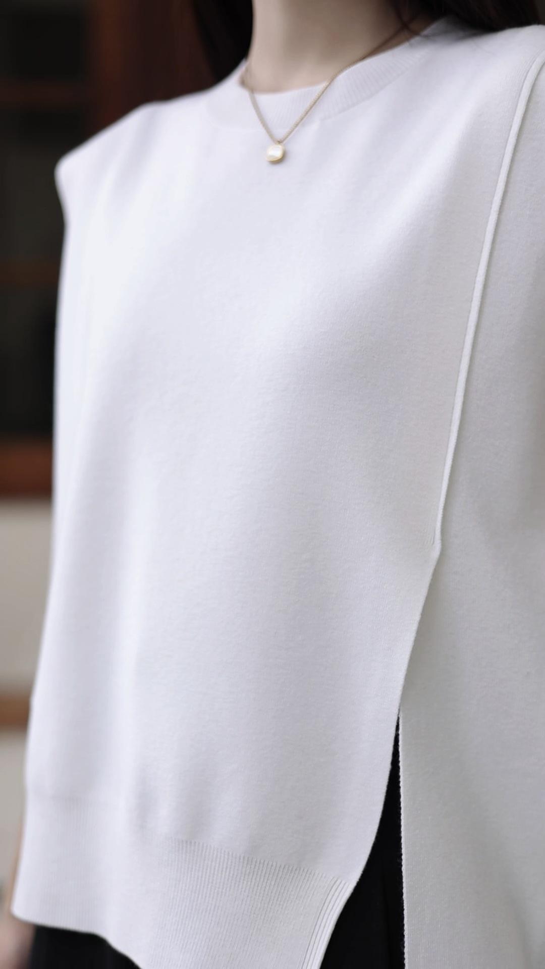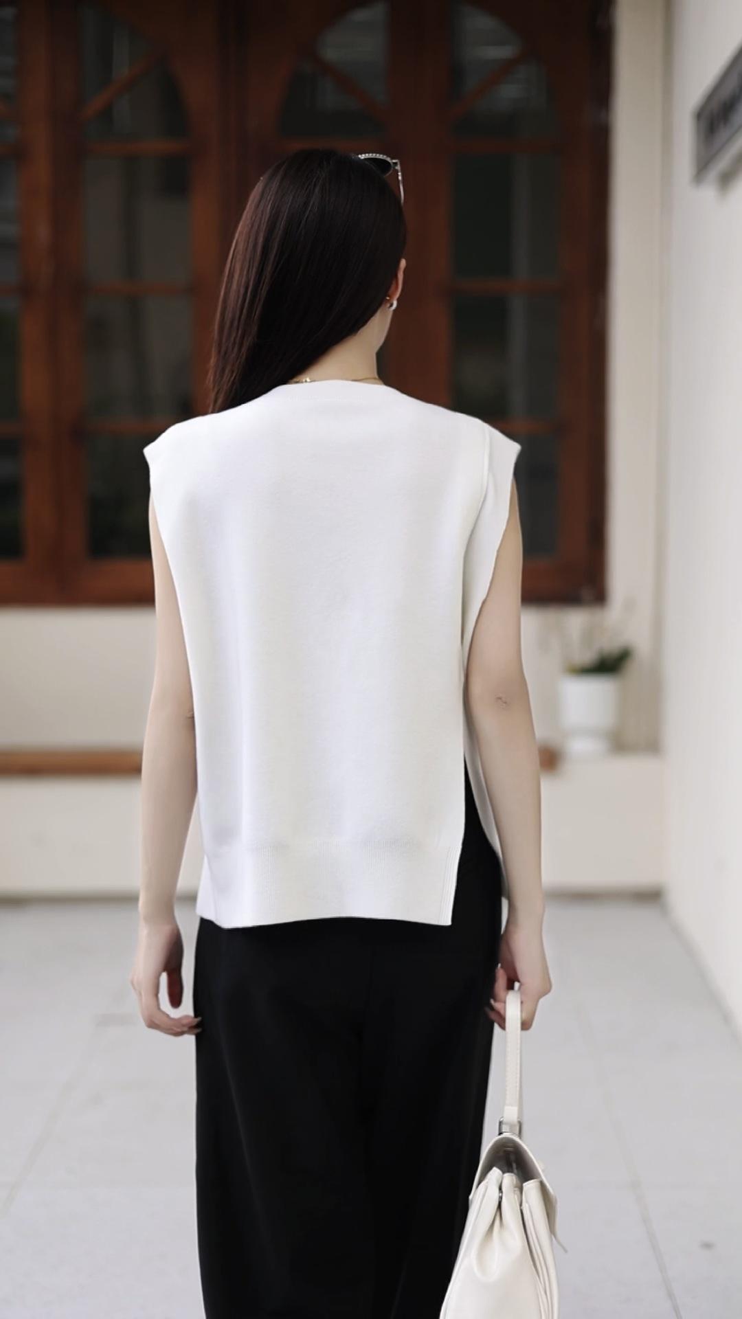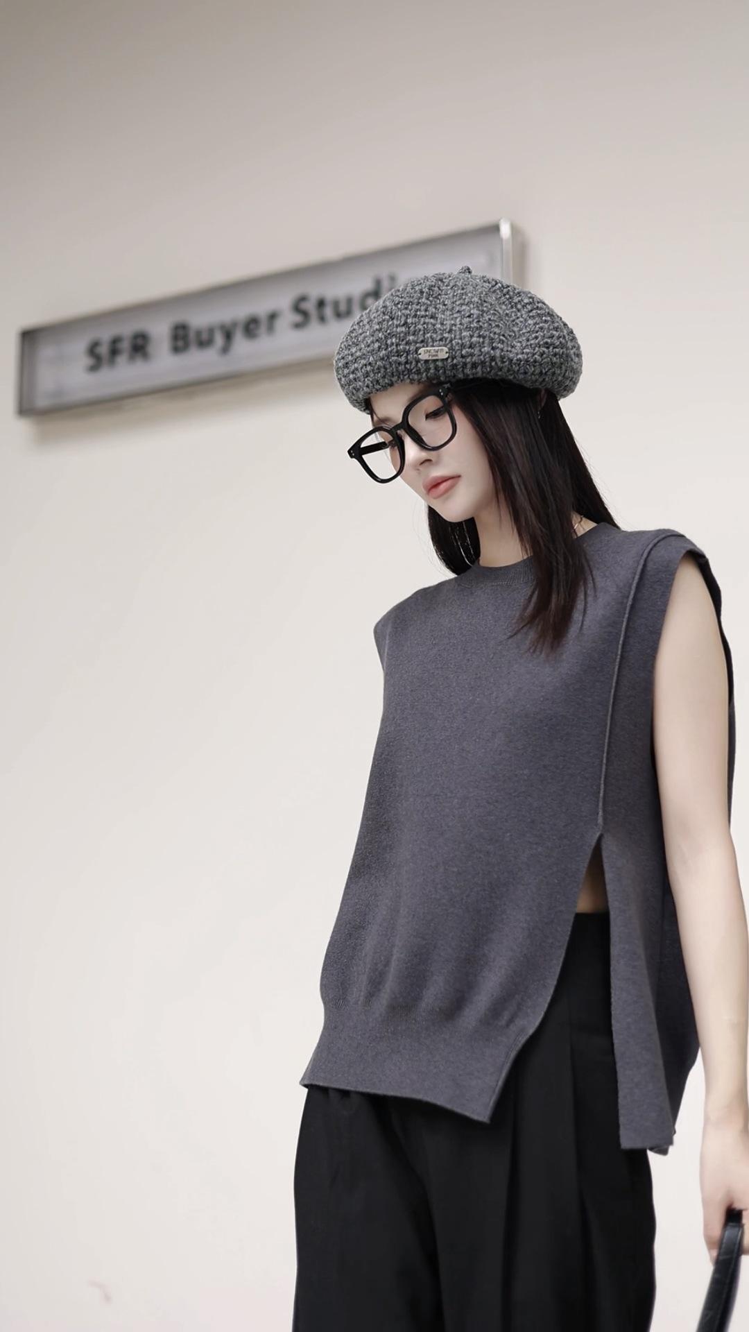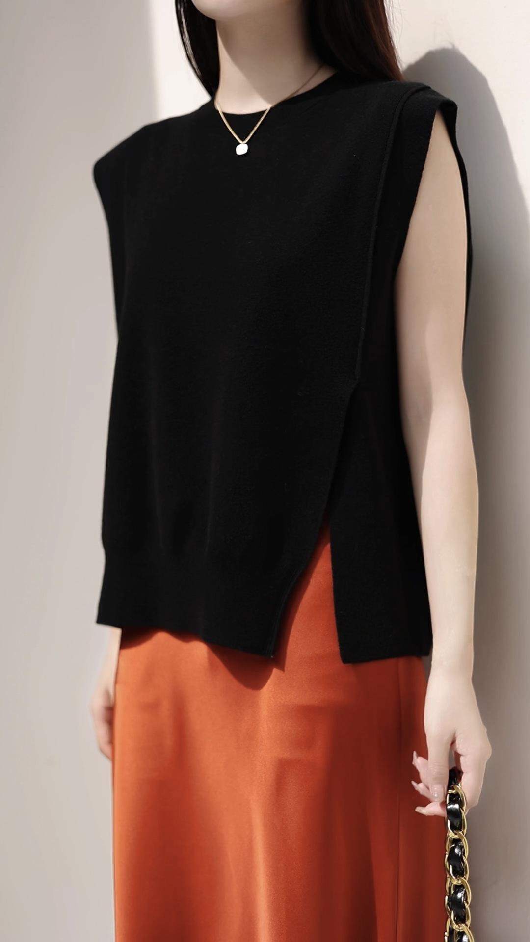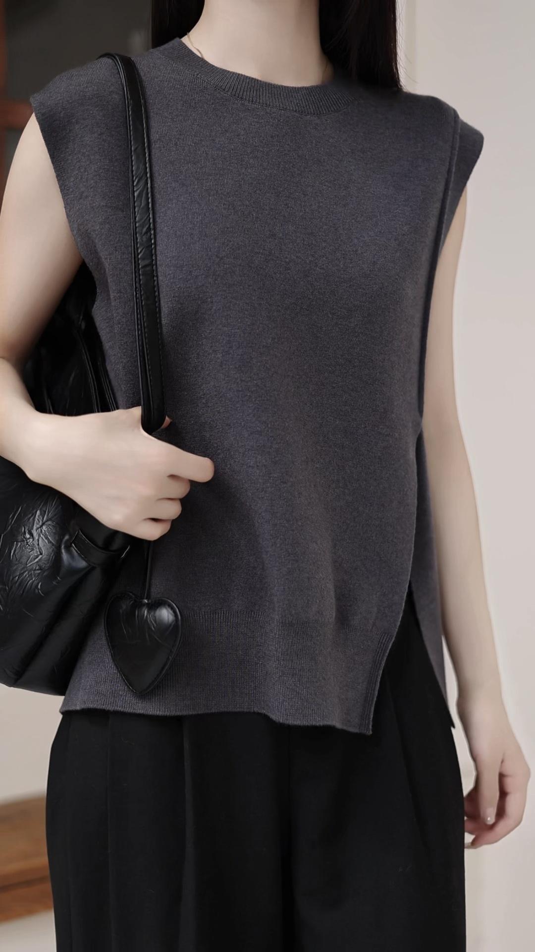 [Hengjia Hj] Ropa de Punto de Lana Lavable a Máquina con Abertura para Mujer Jersey de Cuello Redondo Top Chaleco sin Mangas Apilado Nuevo