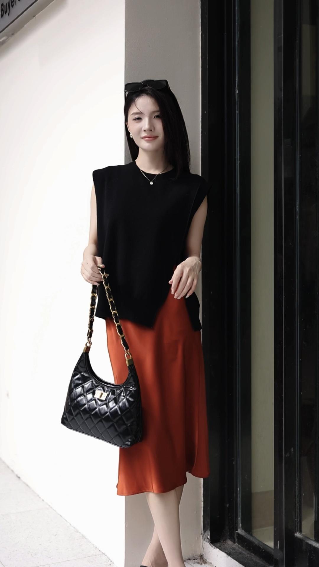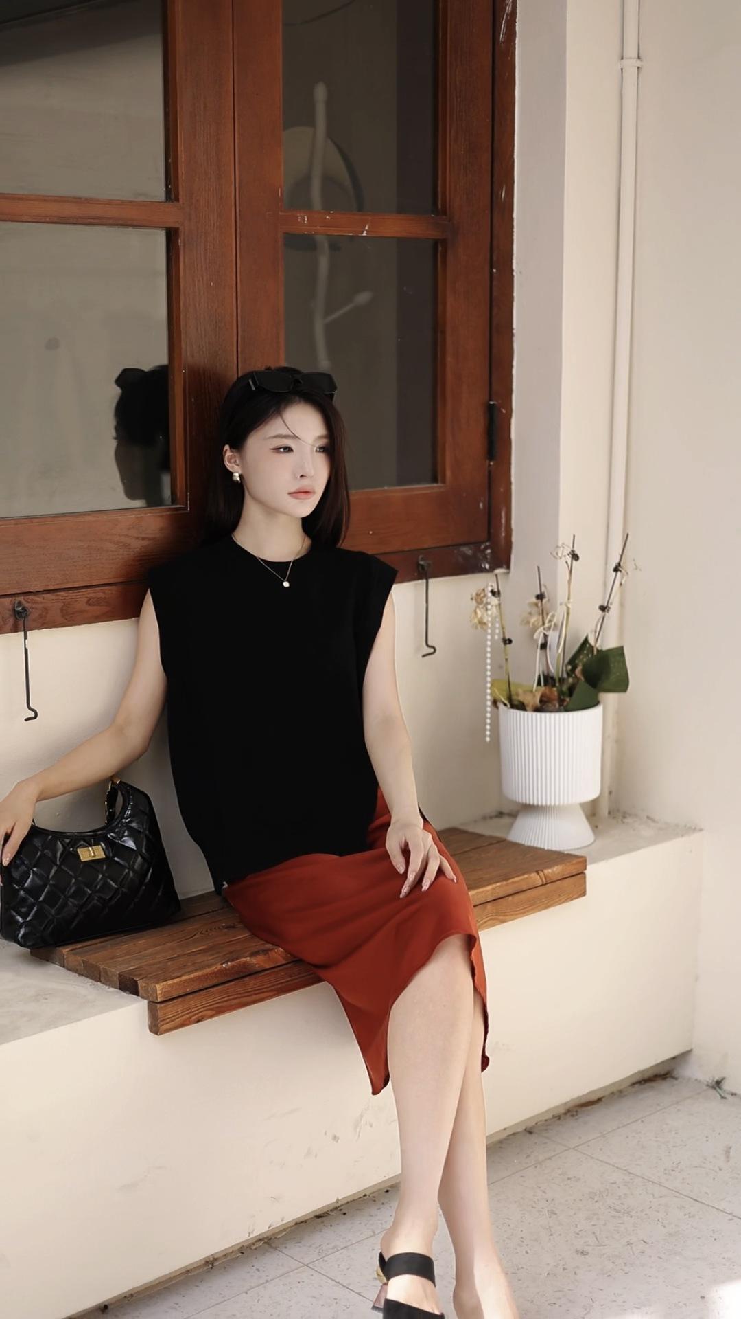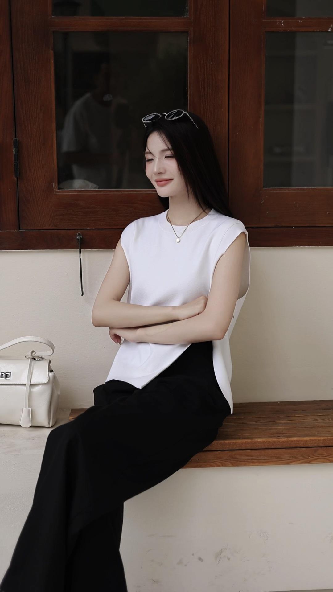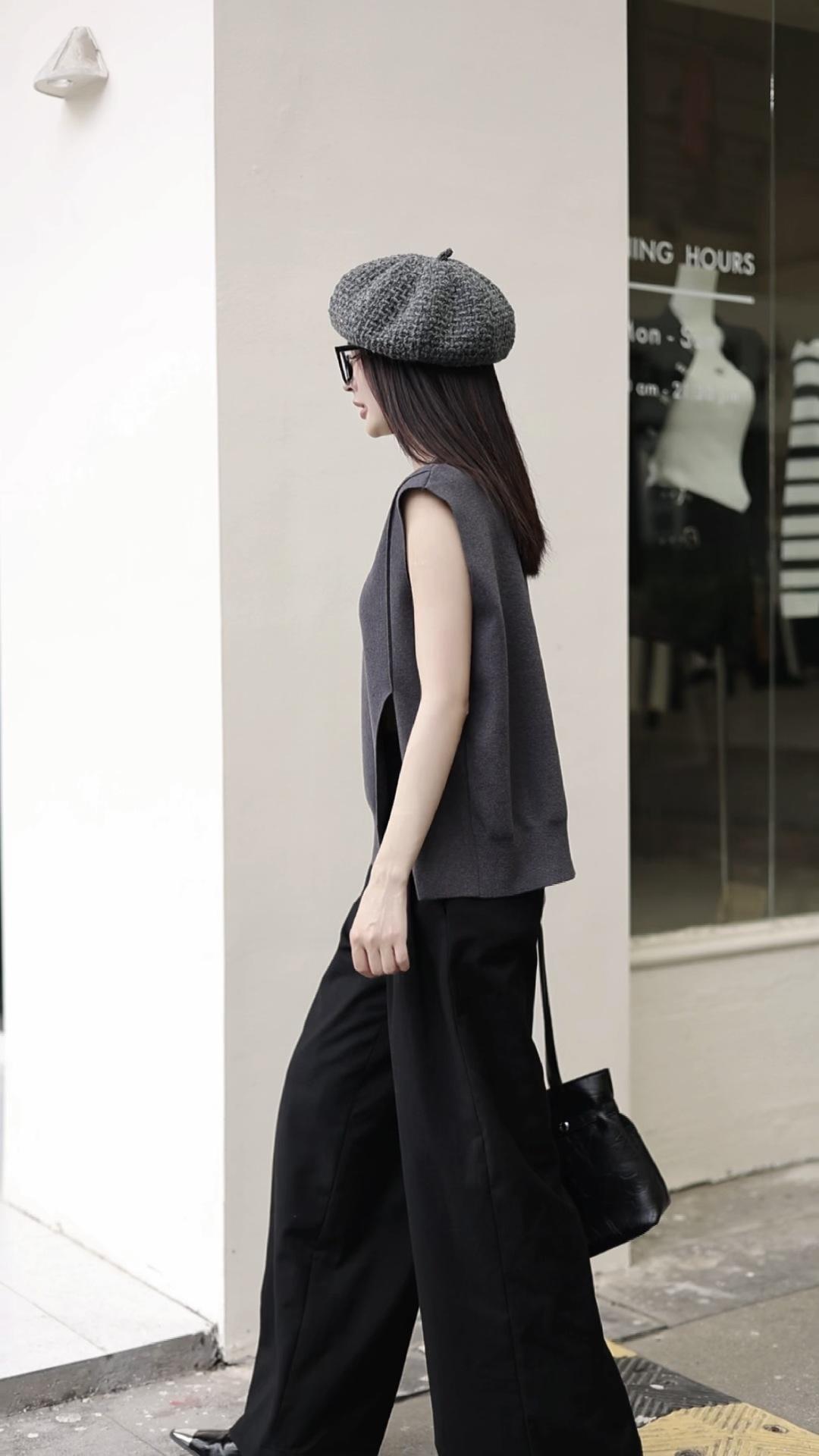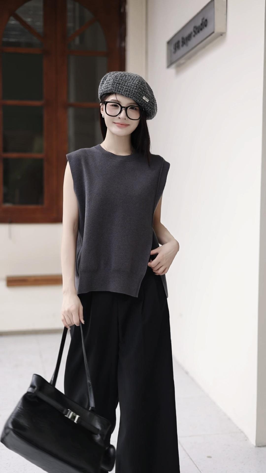 [Hengjia Hj] Ropa de Punto de Lana Lavable a Máquina con Abertura para Mujer Jersey de Cuello Redondo Top Chaleco sin Mangas Apilado Nuevo