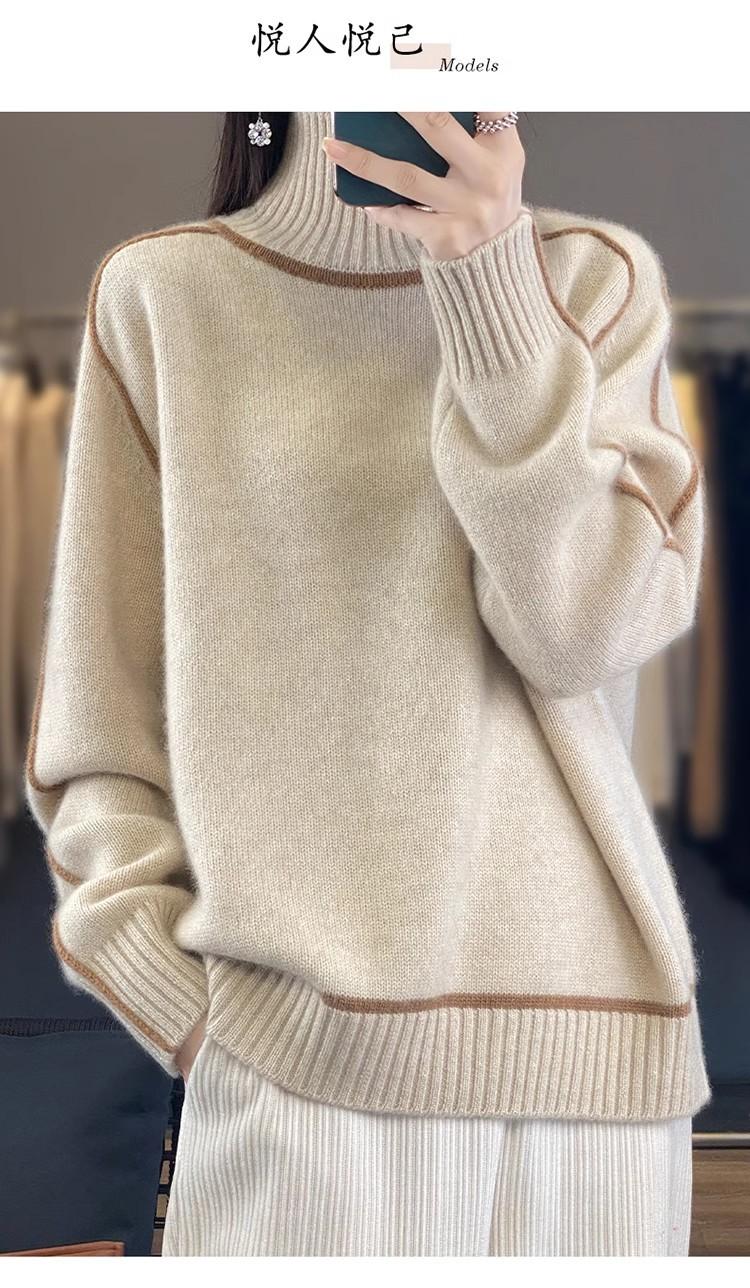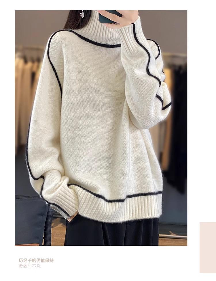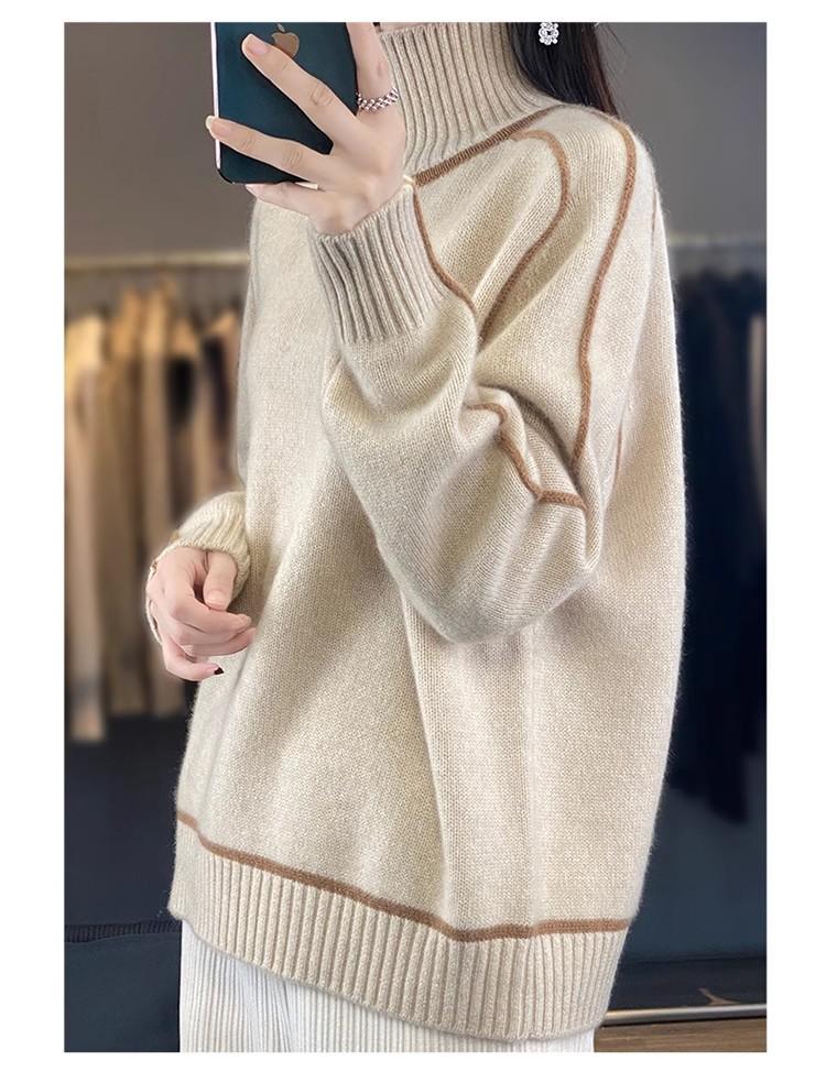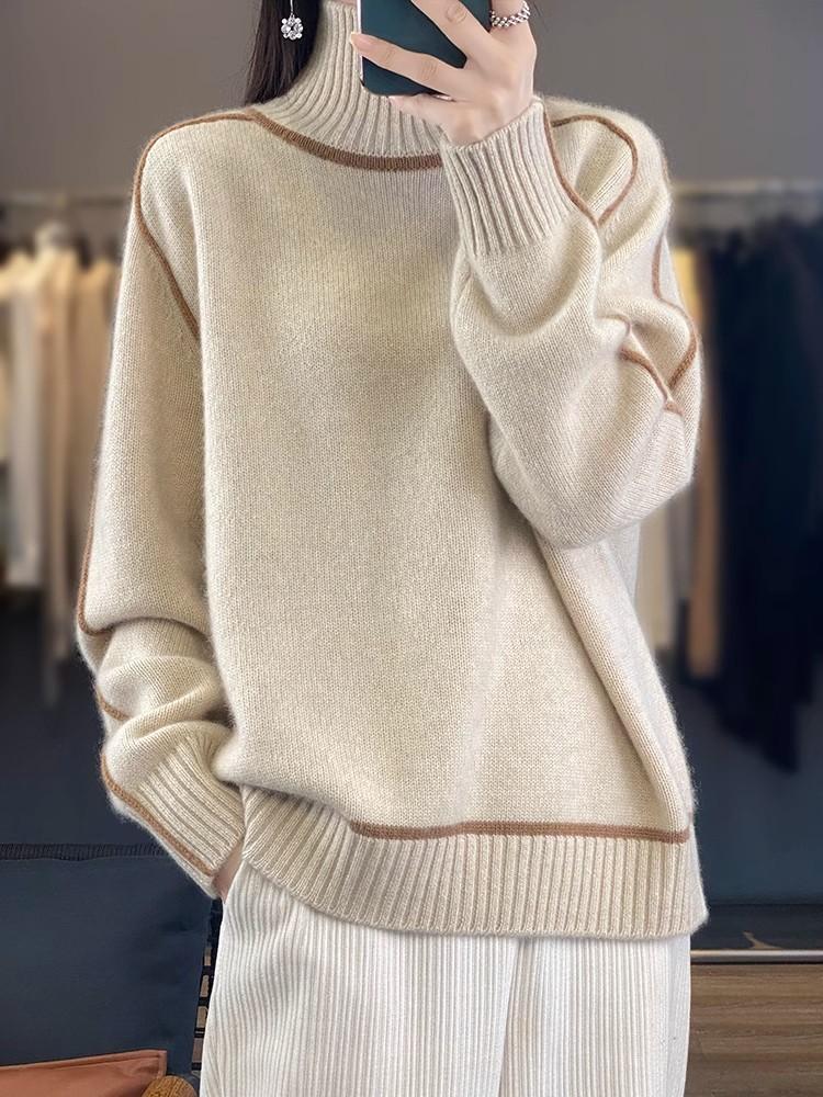 Suéter de lana pura para mujer, nuevo suéter holgado de cuello alto grueso y combinable, camisa de base de cachemira de punto adelgazante, otoño e invierno.