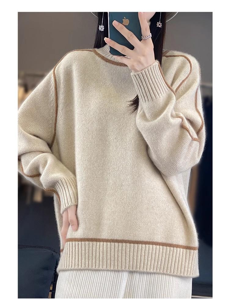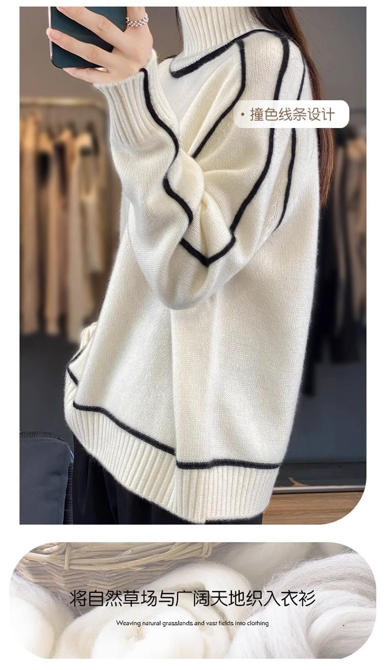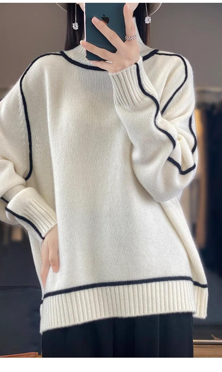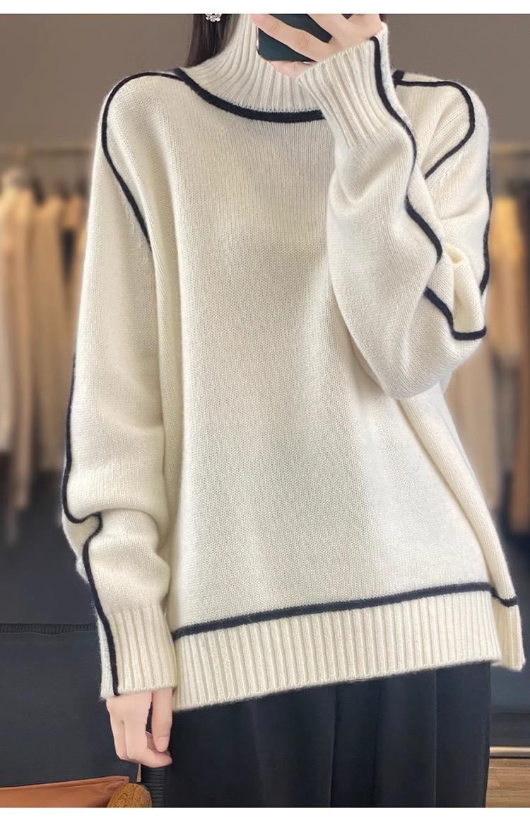 Suéter de lana pura para mujer, nuevo suéter holgado de cuello alto grueso y combinable, camisa de base de cachemira de punto adelgazante, otoño e invierno.