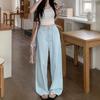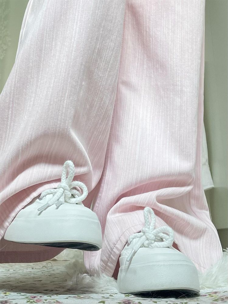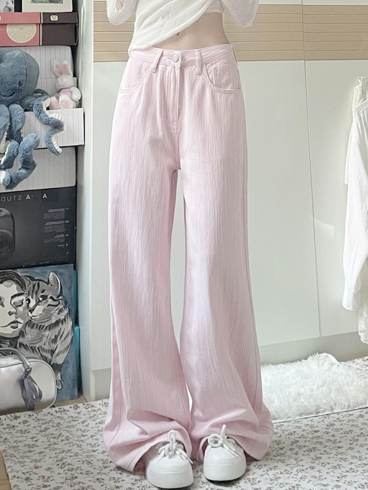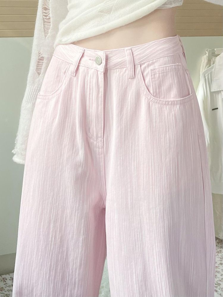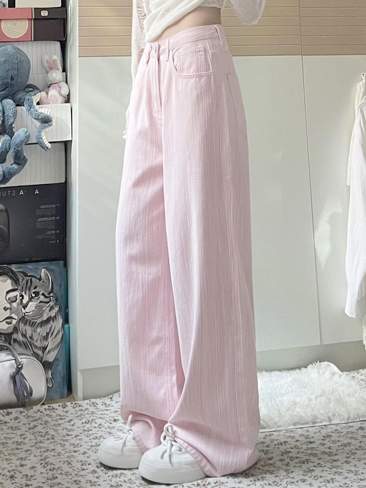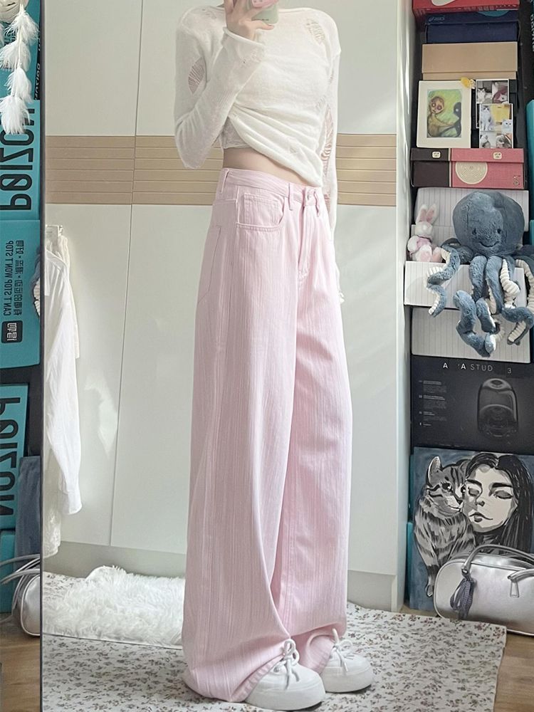 Jeans Rosados para Mujer 2025 Principios de Otoño Nueva Sensación de Textura Pantalones de Pierna Ancha Cintura Alta Cubre Caderas Aspecto Delgado Pantalones Holgados Tipo Mopa