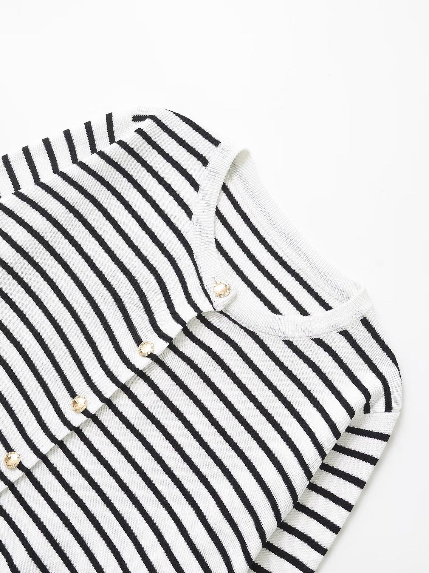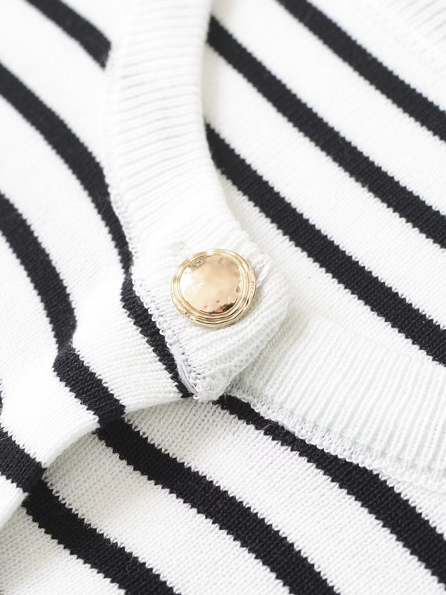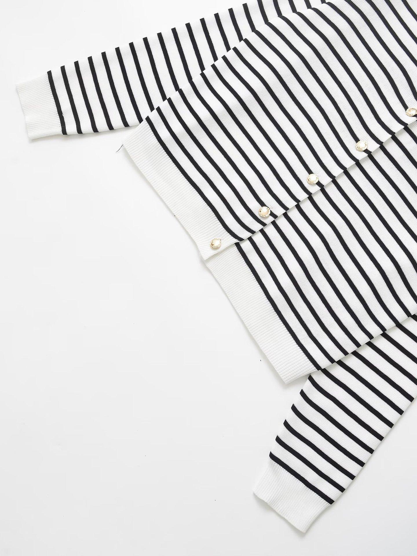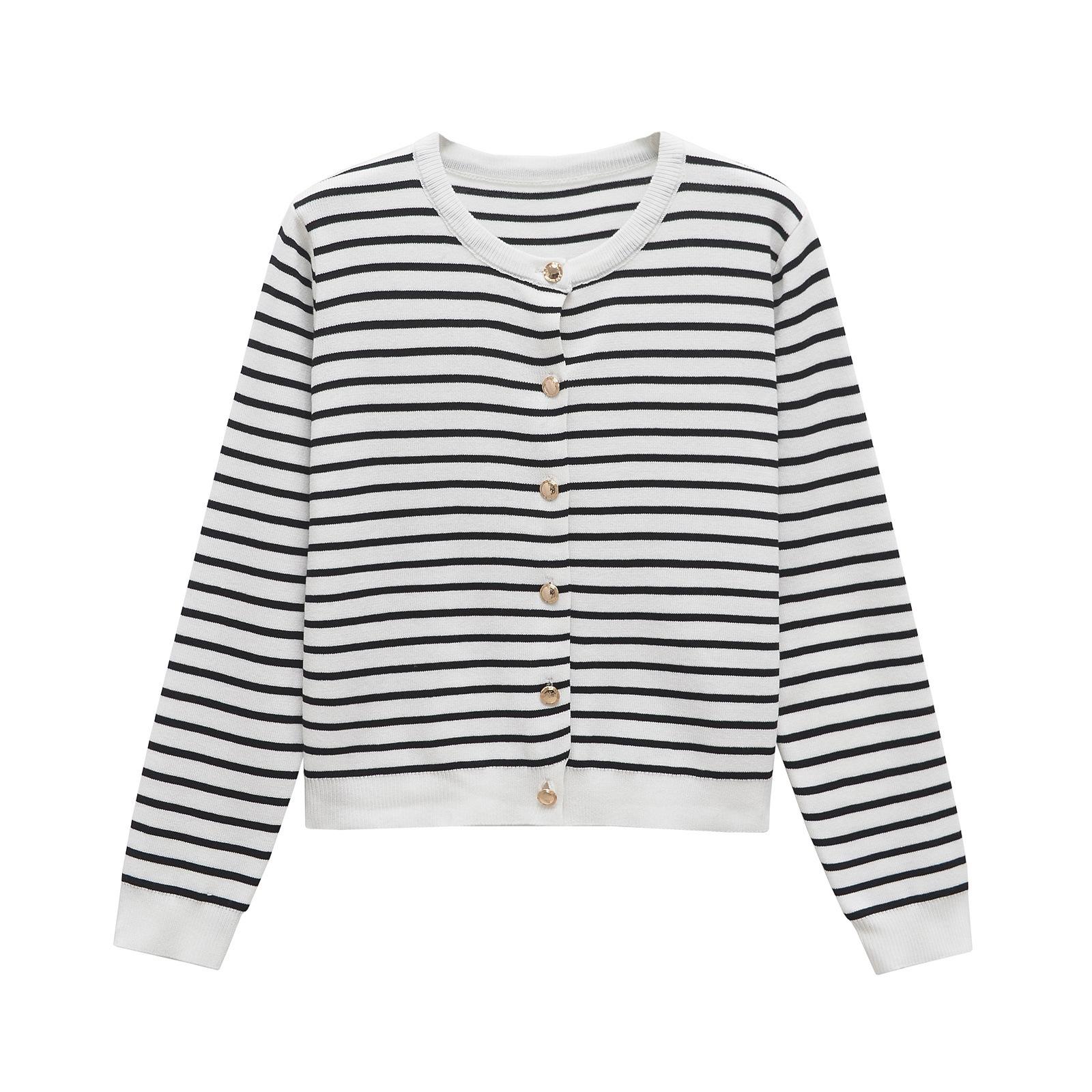 Comercio Exterior Venta al por Mayor Estilo Europeo y Americano Primavera 2025 Casual Cuello Redondo Rayado Chaqueta Cárdigan Tejida Top para Mujer G866571