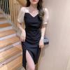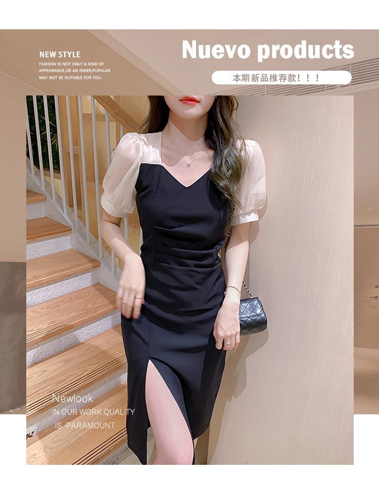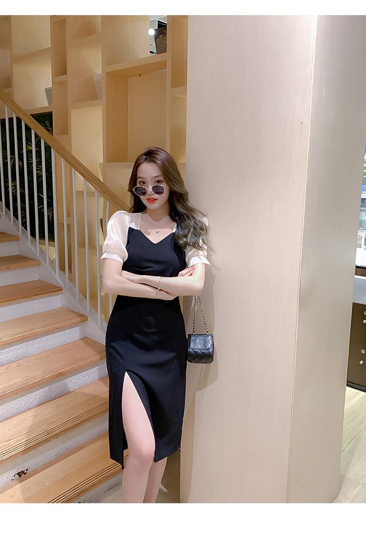 Largo y Corto 2025 Verano Nuevo Estilo Coreano Versión Grande mm Retro Francés Cubre Carne Adelgazante Look Vestido Elegante para Mujer