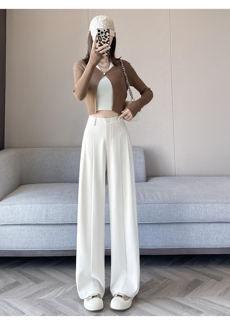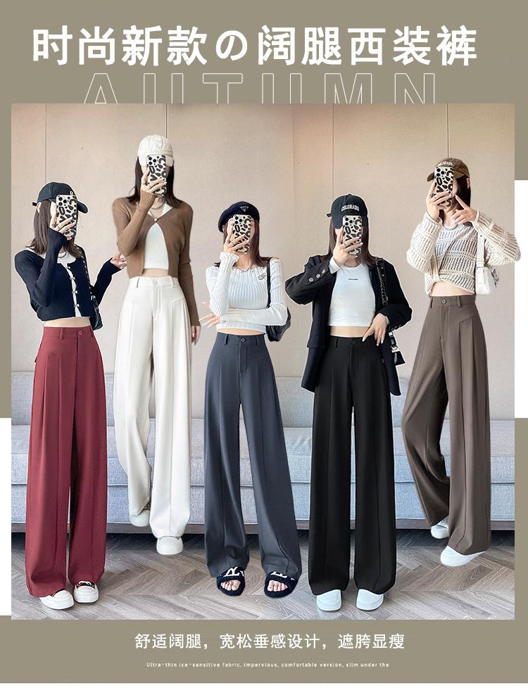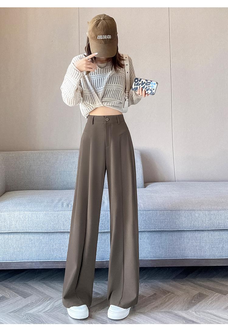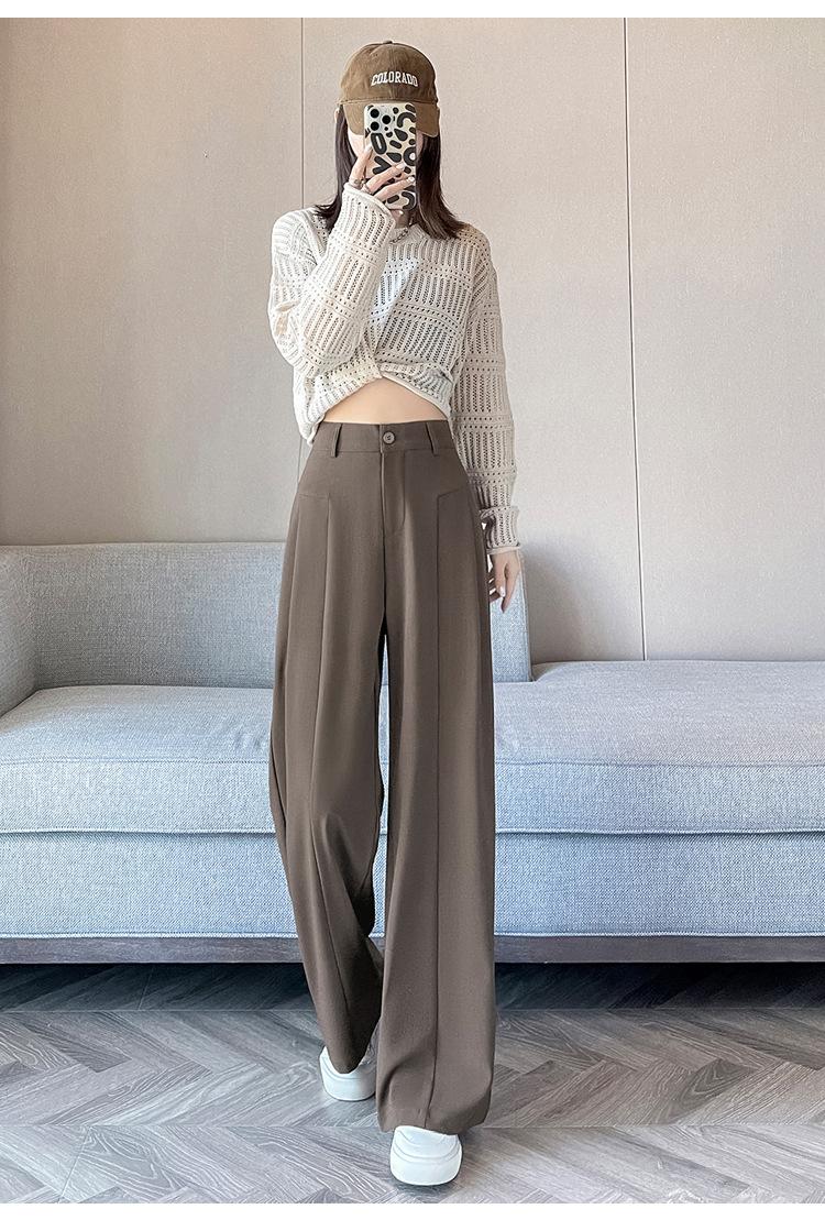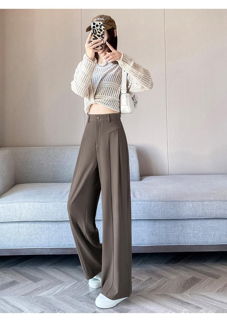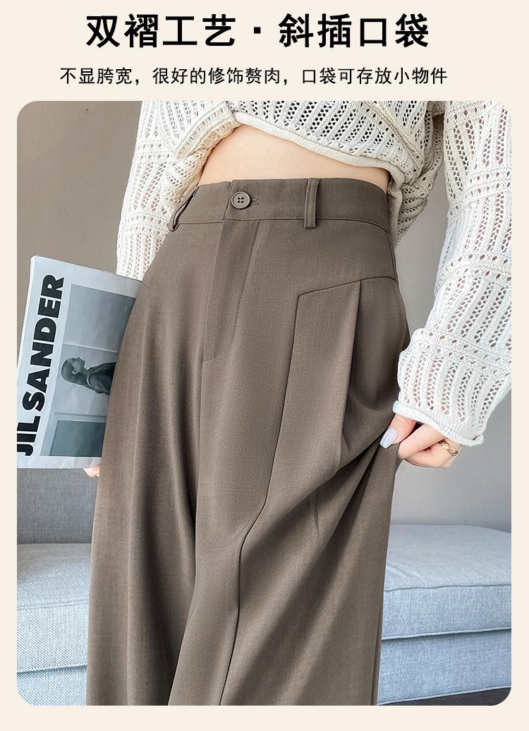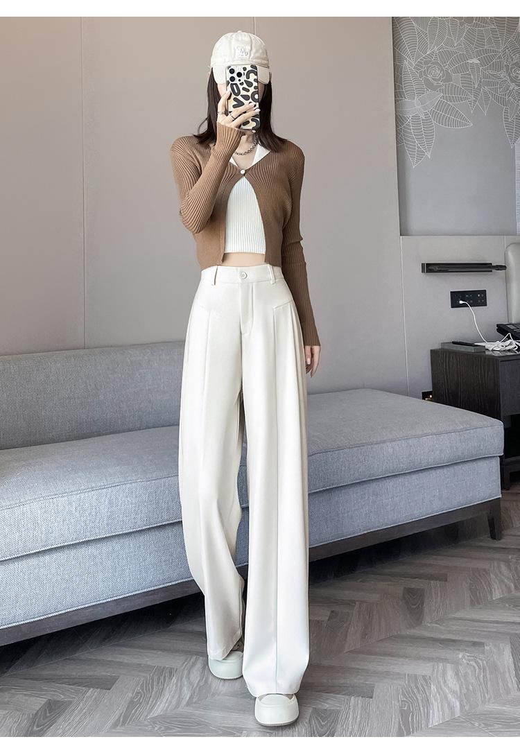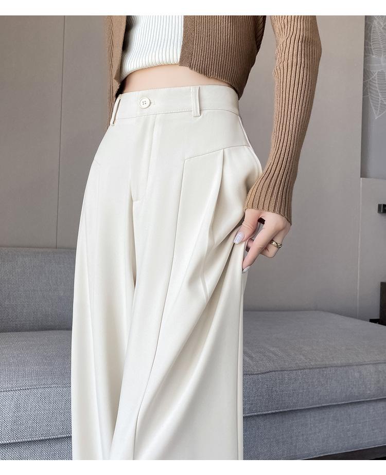 Pantalones de traje albaricoque con sentido del diseño vertical adelgazante para mujer, nuevos de primavera y verano, cortos, versátiles, casuales, holgados, de pierna ancha