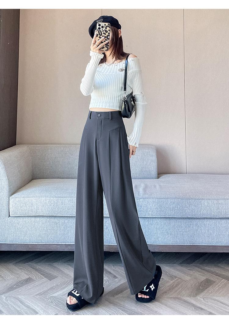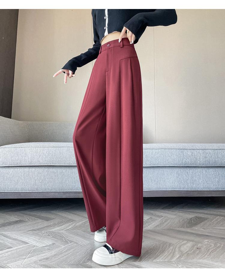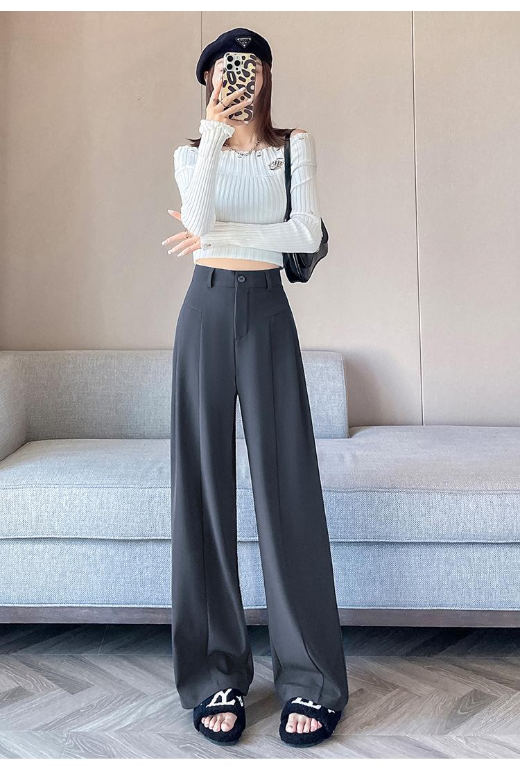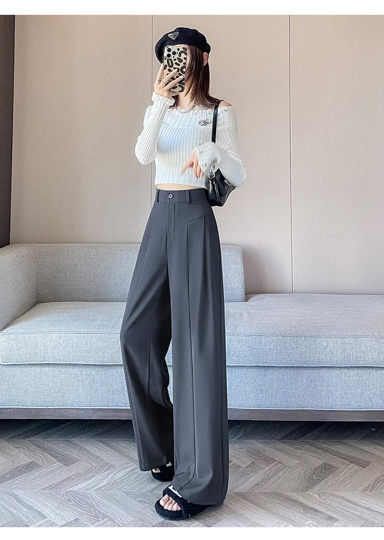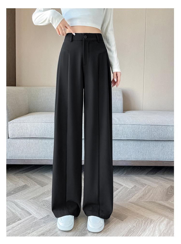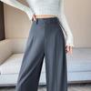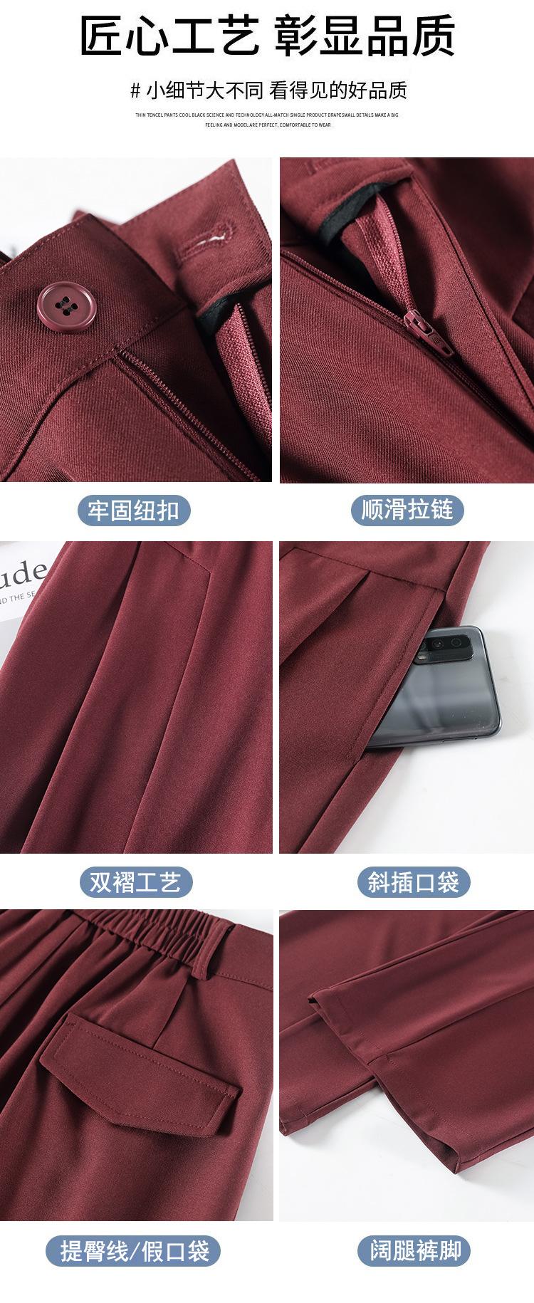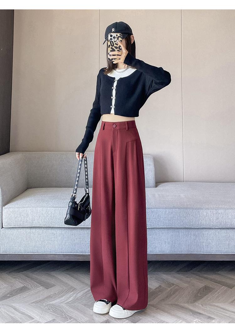 Pantalones de traje albaricoque con sentido del diseño vertical adelgazante para mujer, nuevos de primavera y verano, cortos, versátiles, casuales, holgados, de pierna ancha