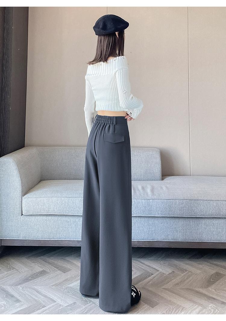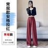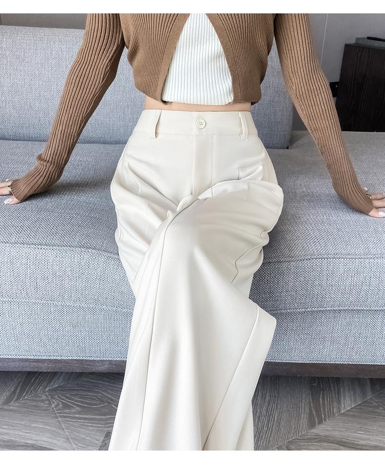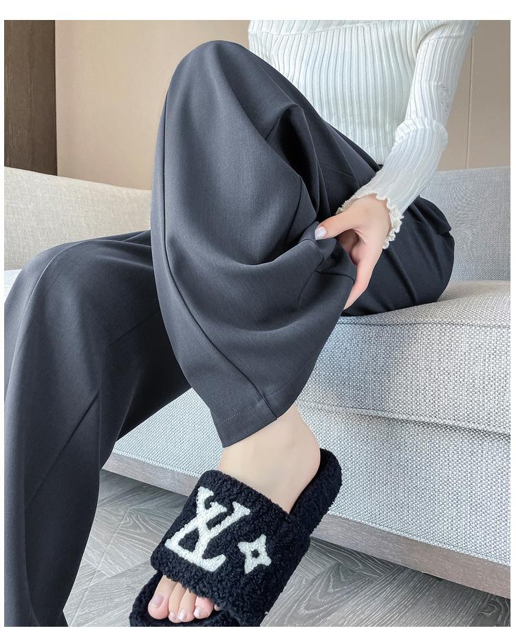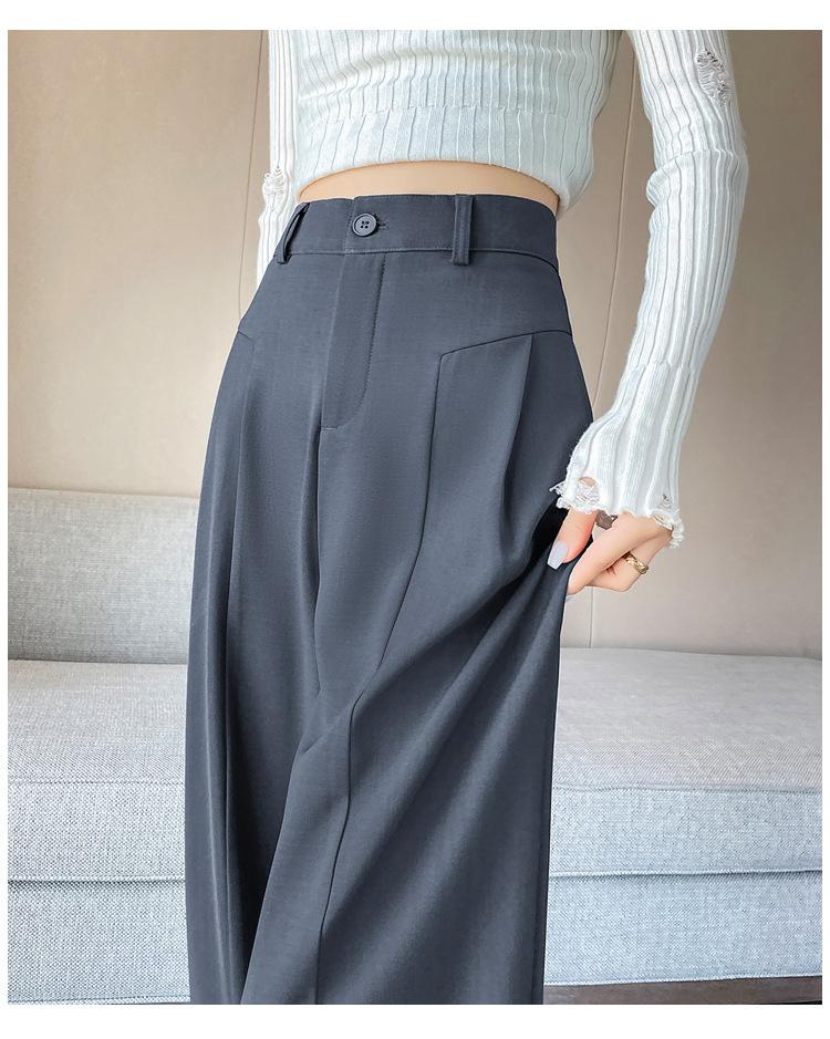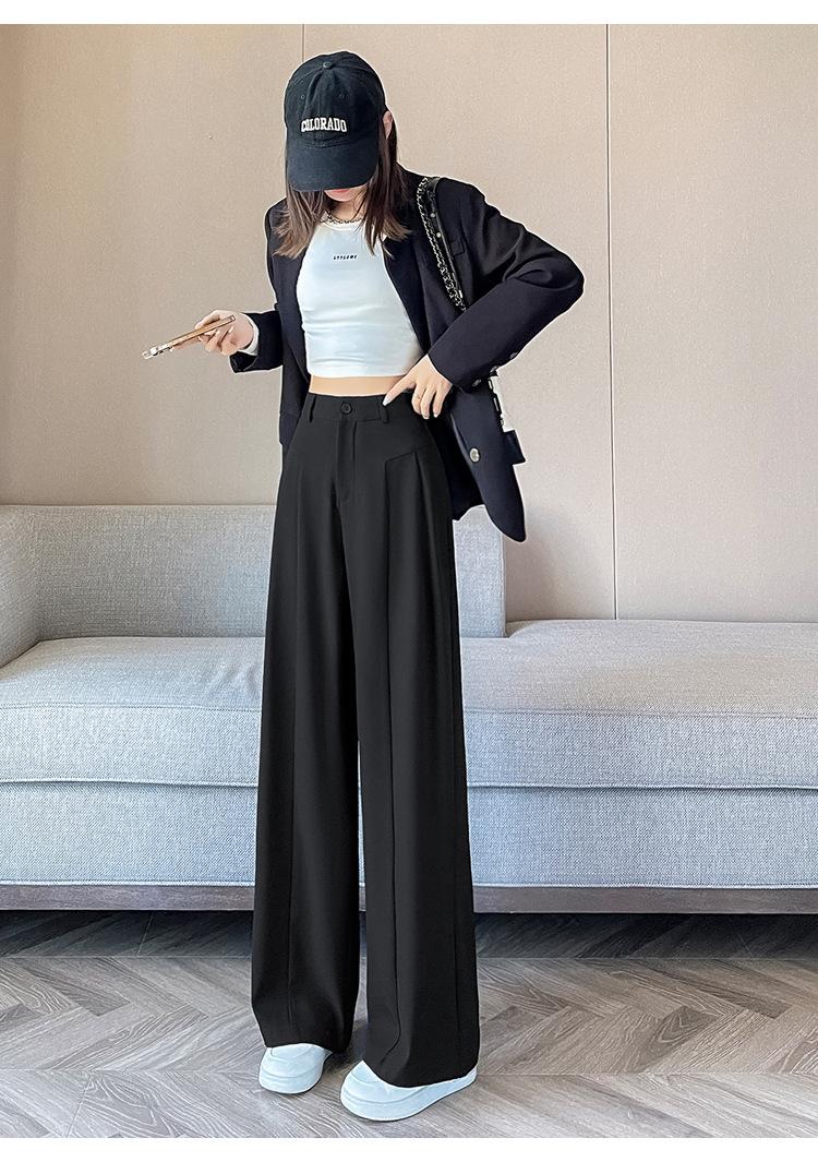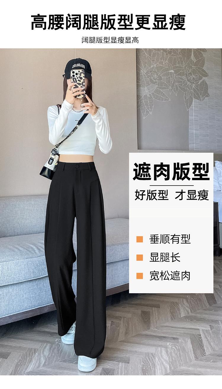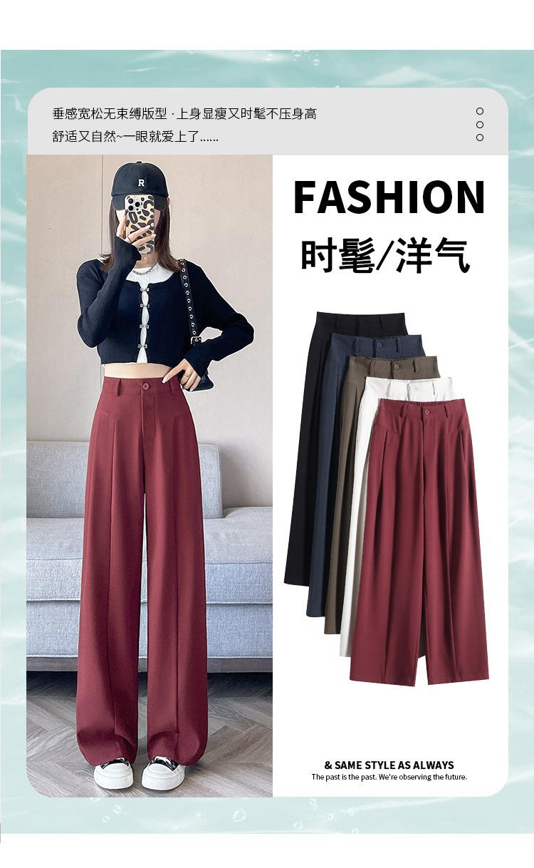 Pantalones de traje albaricoque con sentido del diseño vertical adelgazante para mujer, nuevos de primavera y verano, cortos, versátiles, casuales, holgados, de pierna ancha