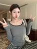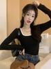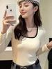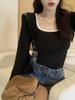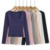 Camiseta de manga larga para mujer, nueva camiseta de otoño 2024, ajustada, con forro polar, con cuello cuadrado a la moda