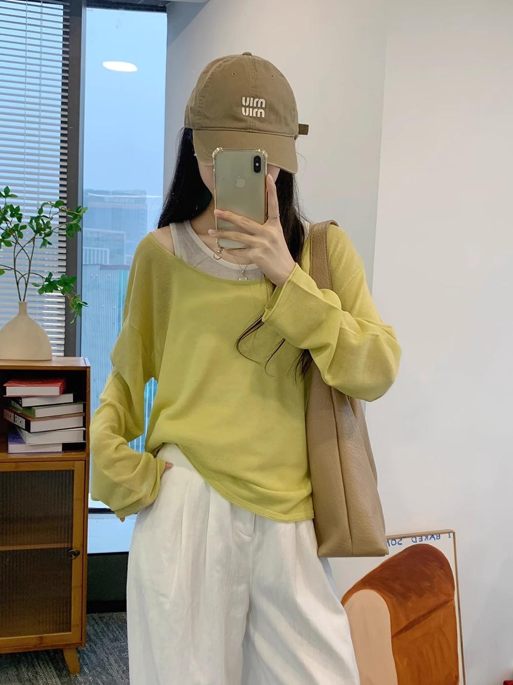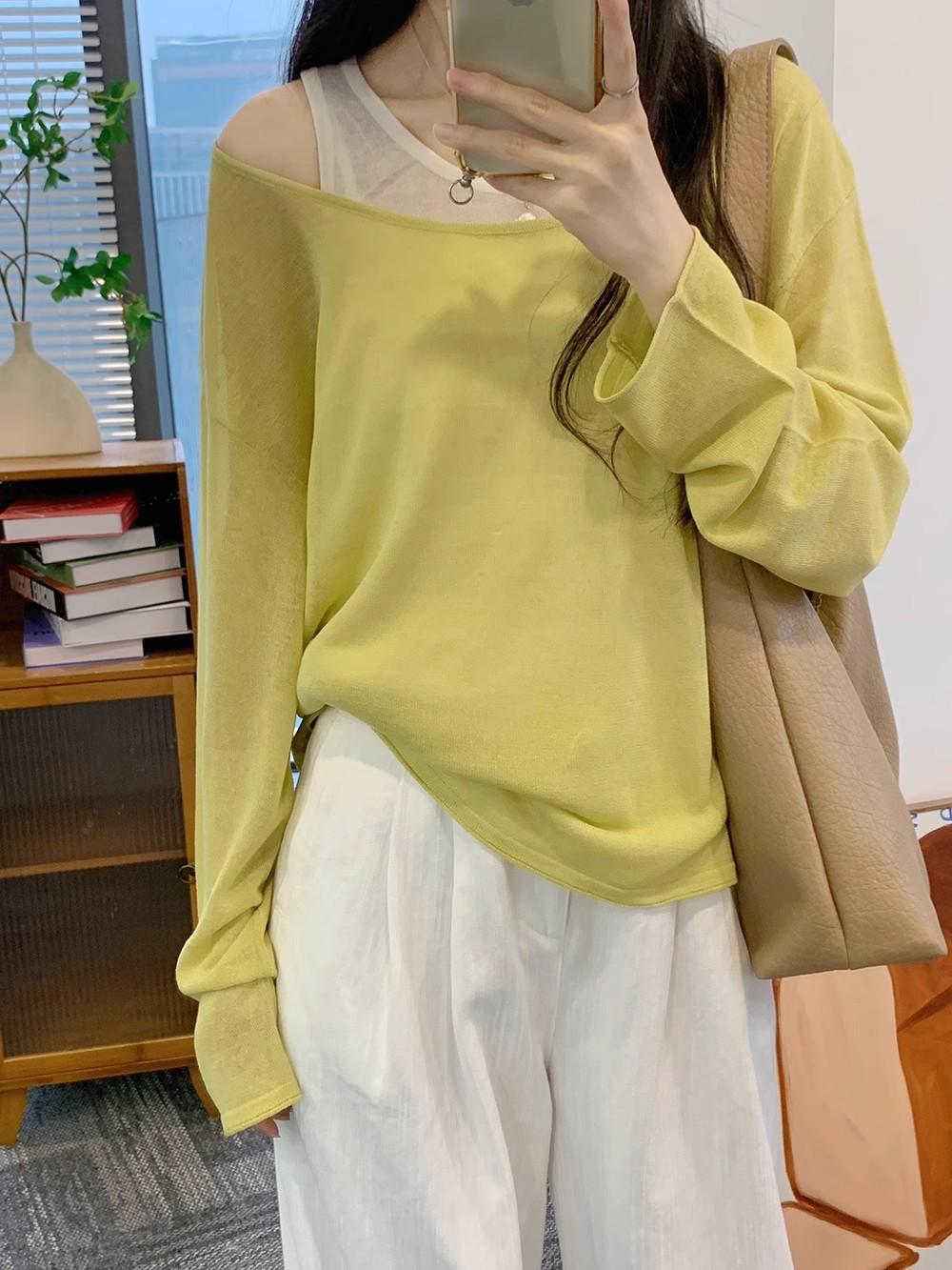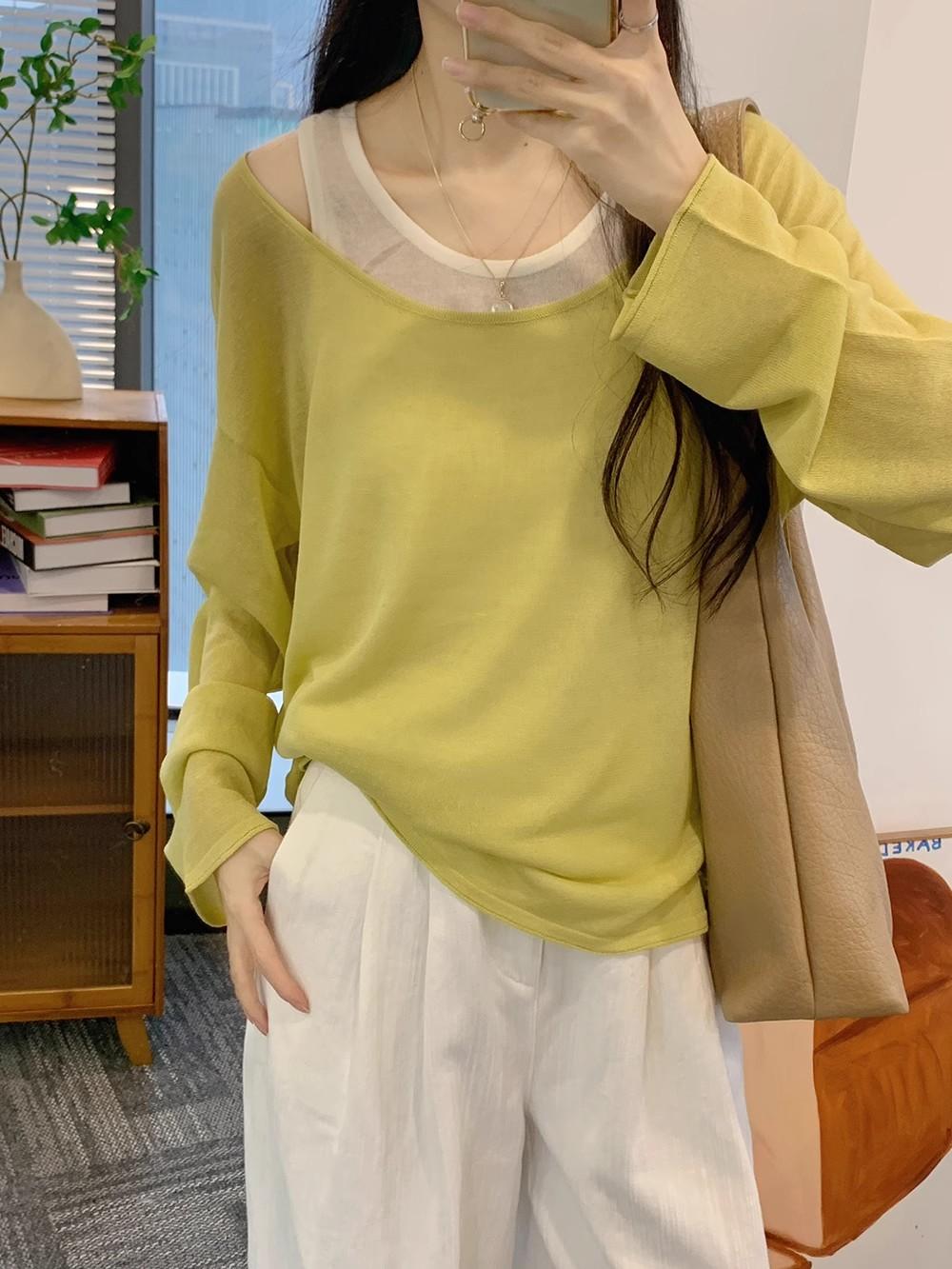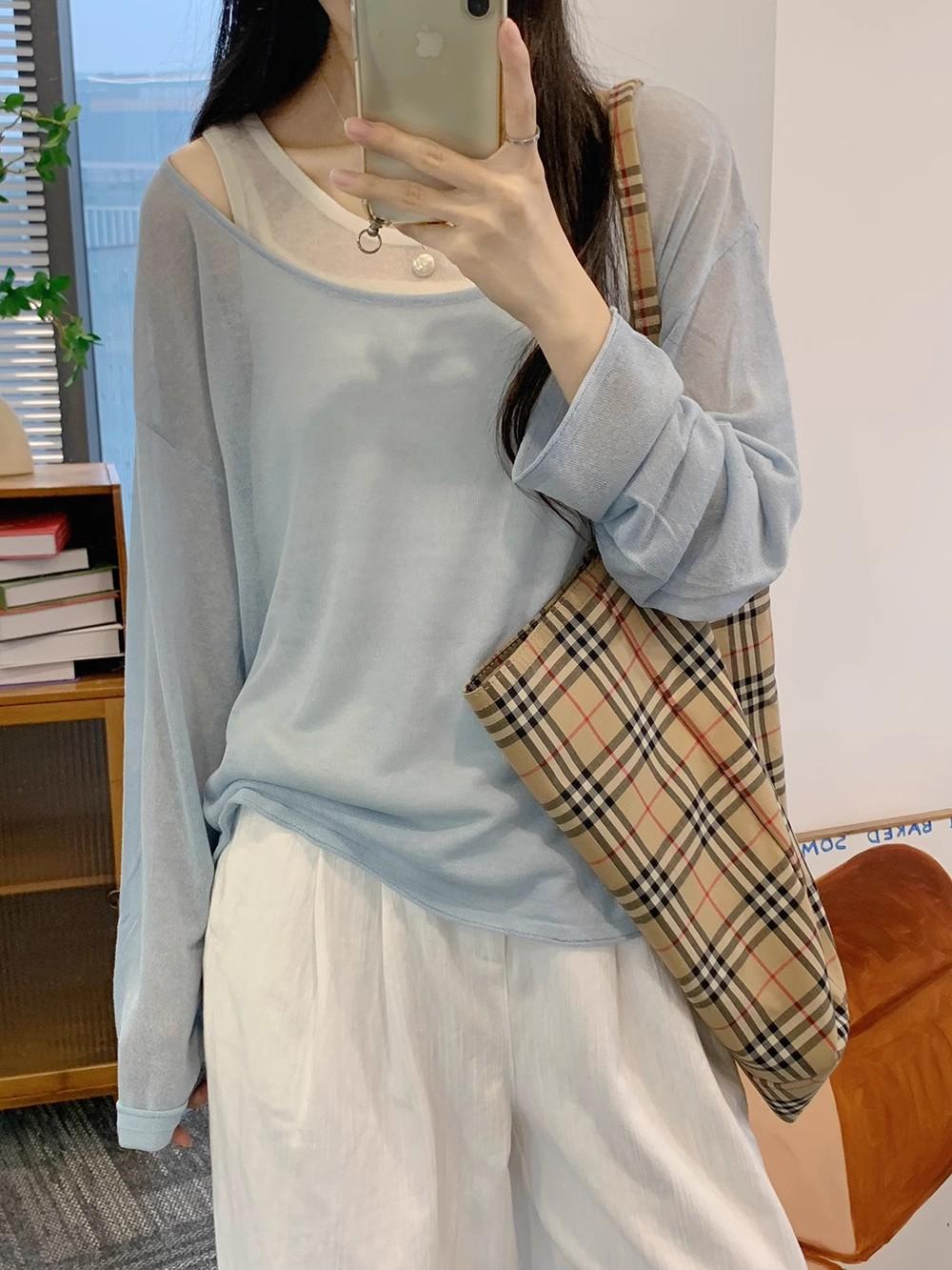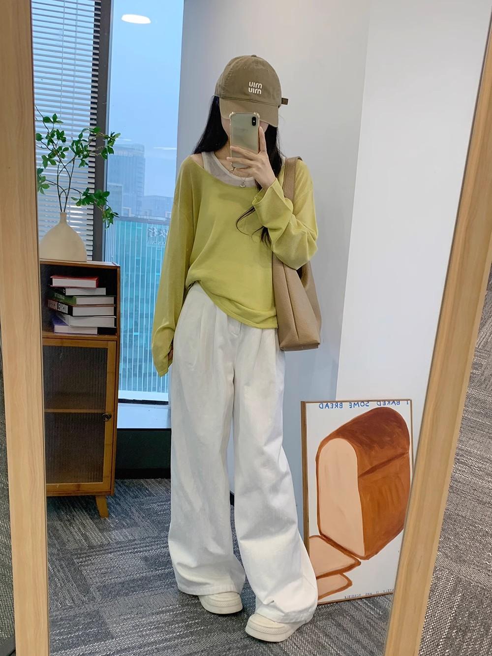 Suéter de Punto de Dos Piezas Estilo Coreano para Principios de Primavera para Mujer Estilo Lazy Holgado Cubre Carne Adelgazante Tops Exteriores