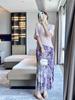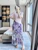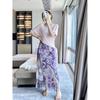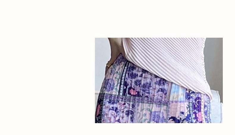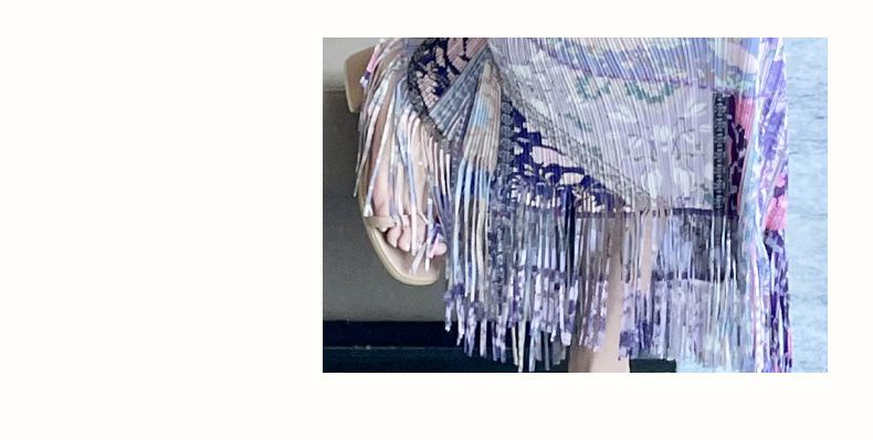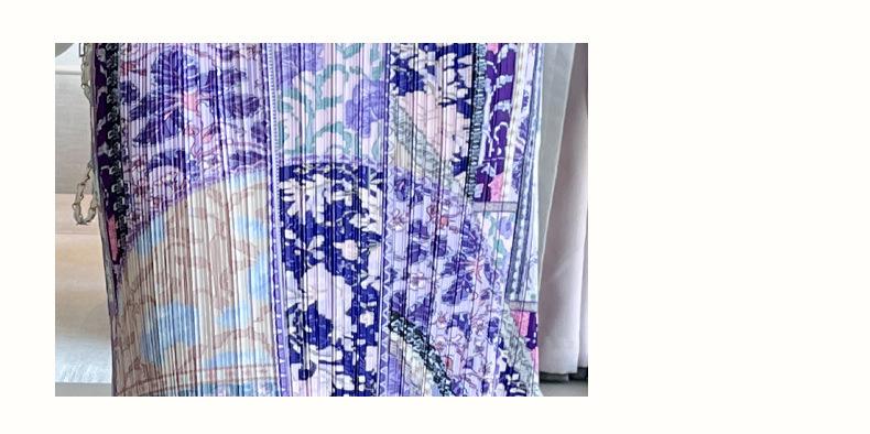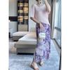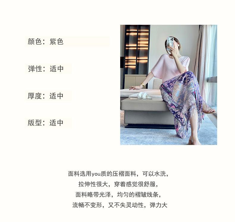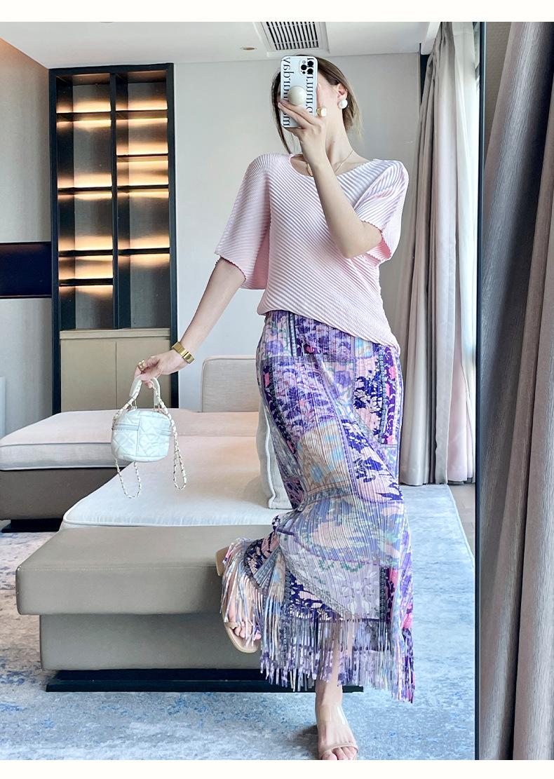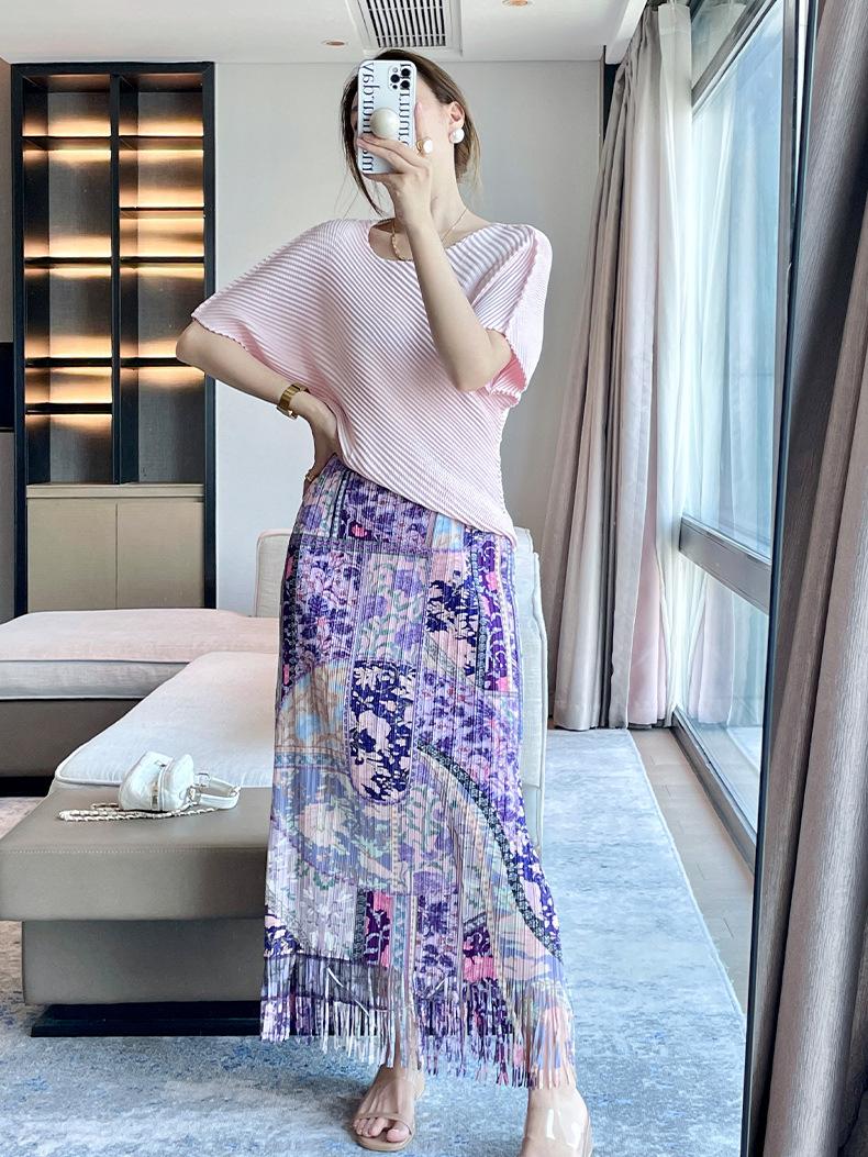 Falda Miyake Plisada Verano 2025 Nueva Morada Estampada Falda Suave de Cintura Alta Adelgazante a la Moda con Flecos