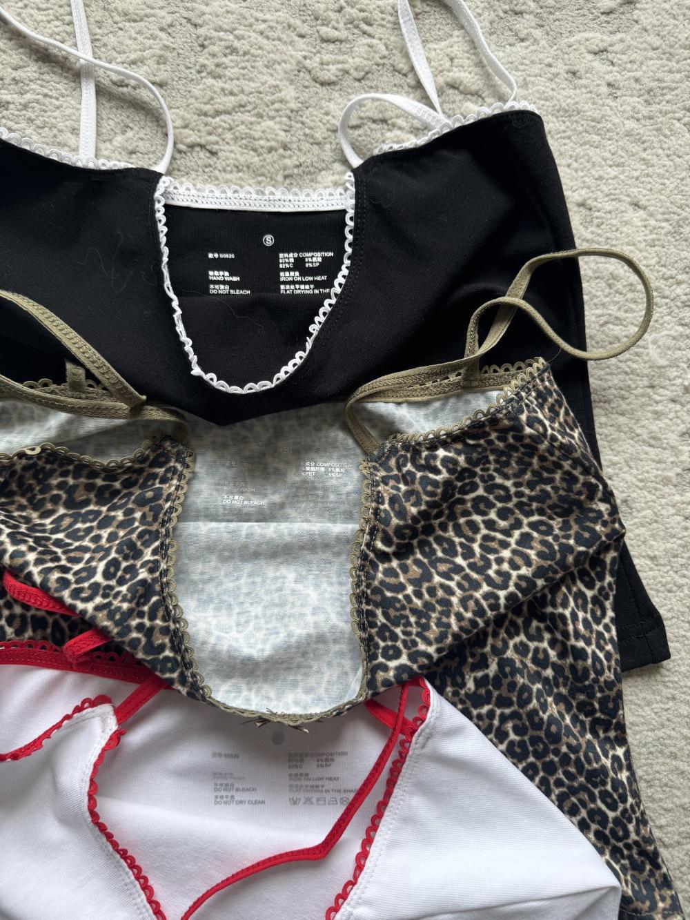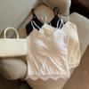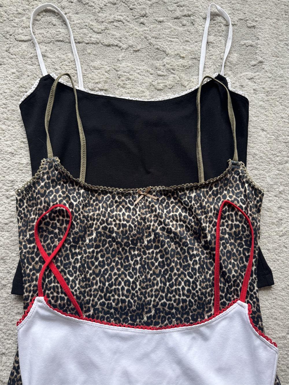 Camisola ajustada elástica con encaje en contraste para mujer, color negro, blanco y estampado de leopardo