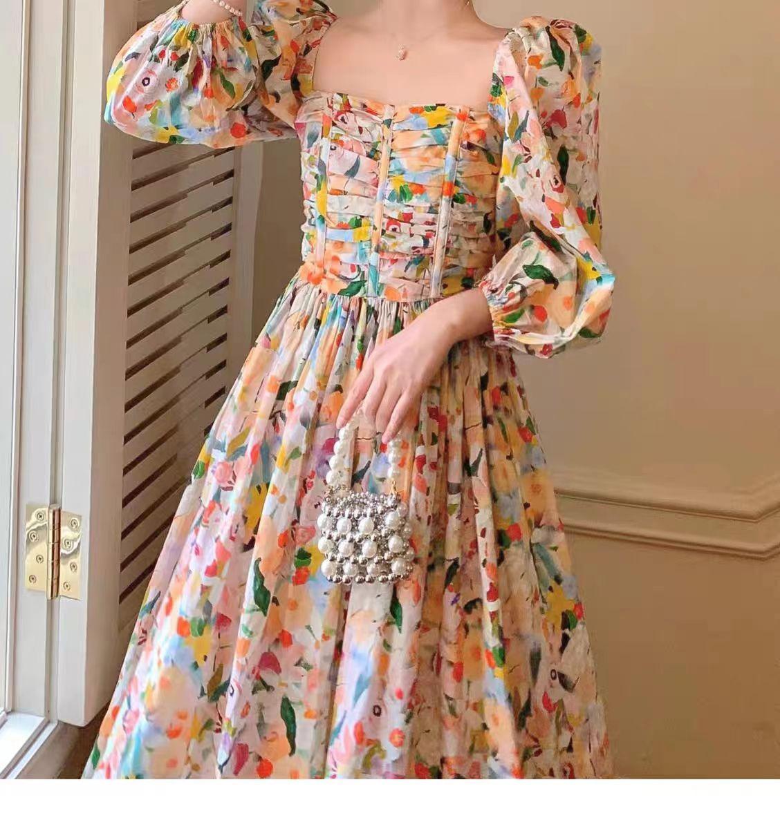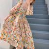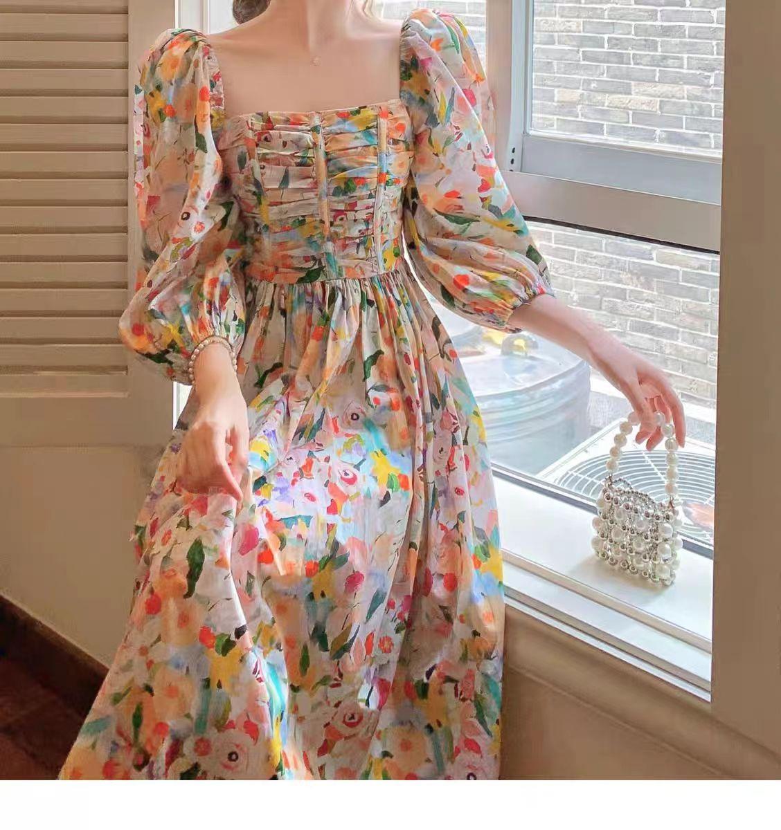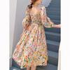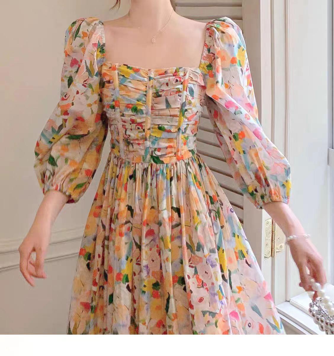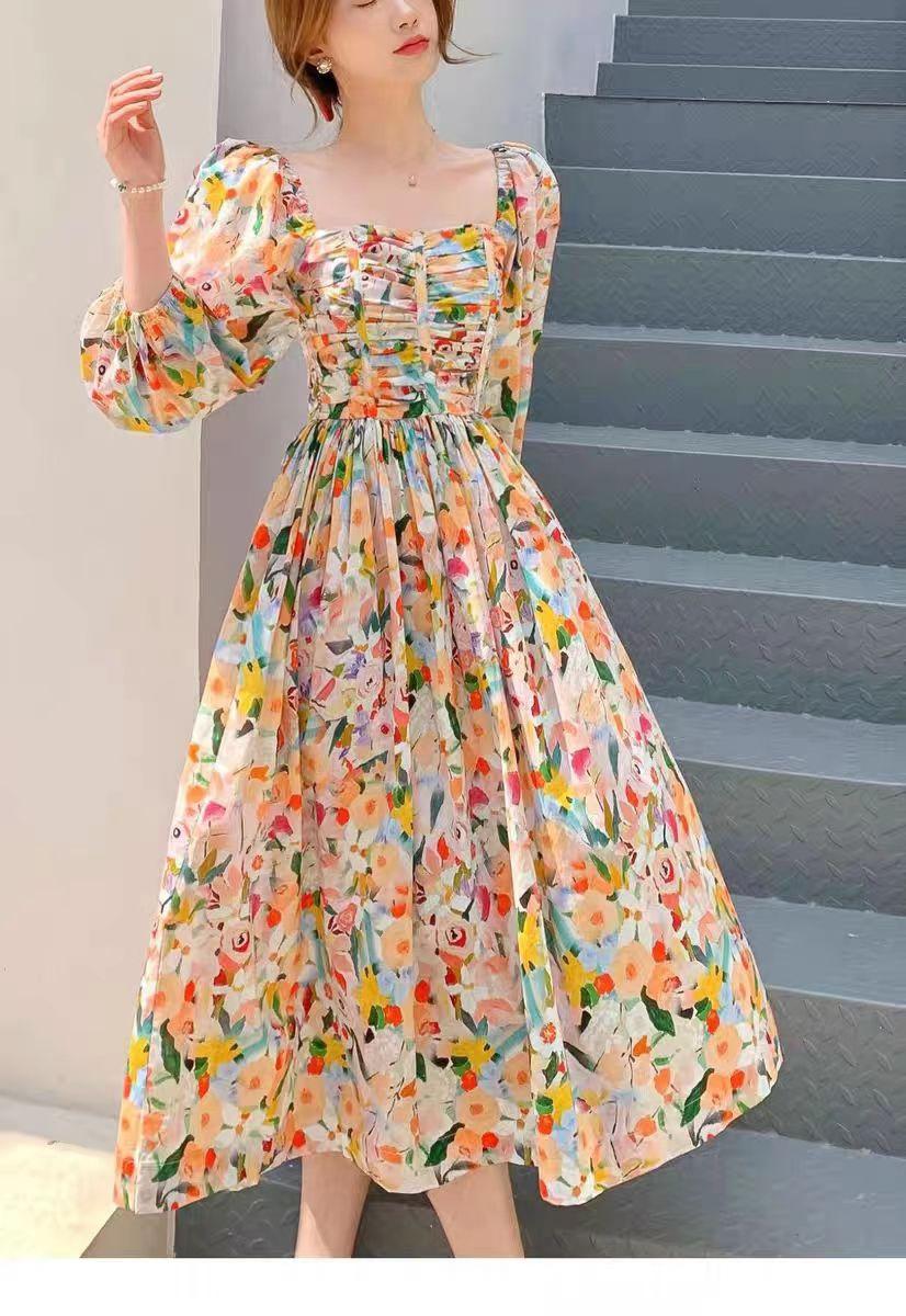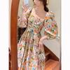 Vestido de verano para niños con mangas abullonadas y estampado floral estilo Hepburn francés de alta gama, estilo occidental, retro chic
