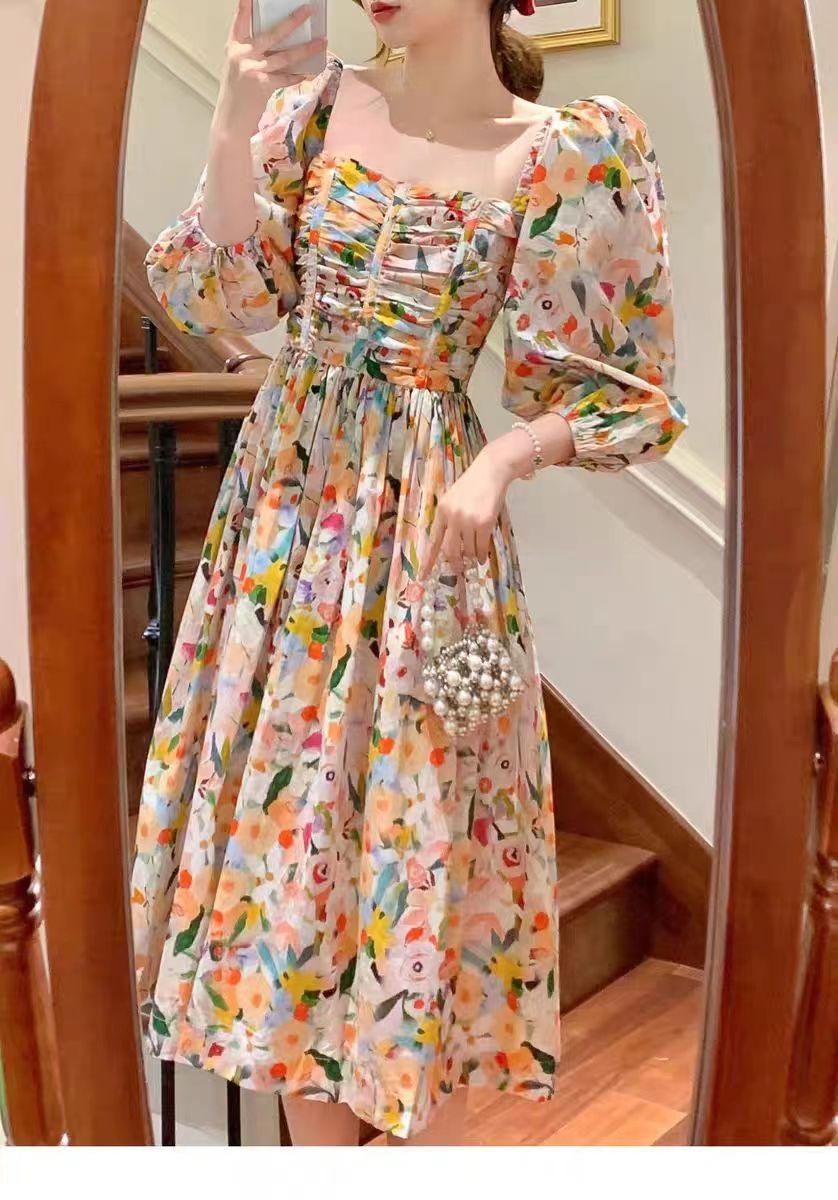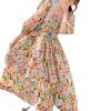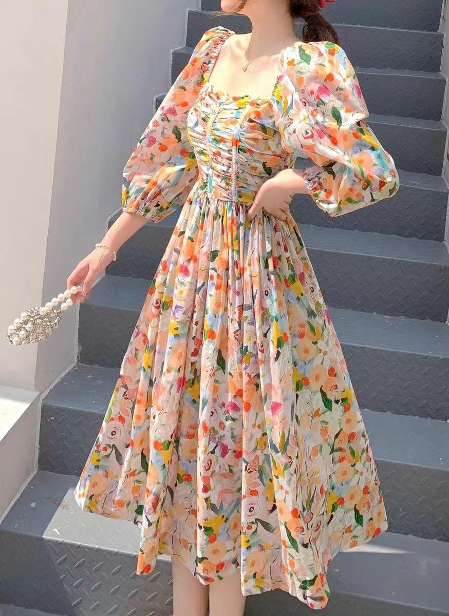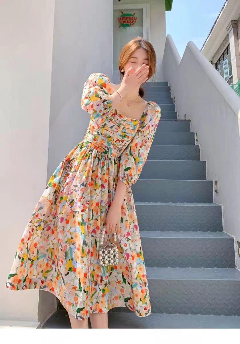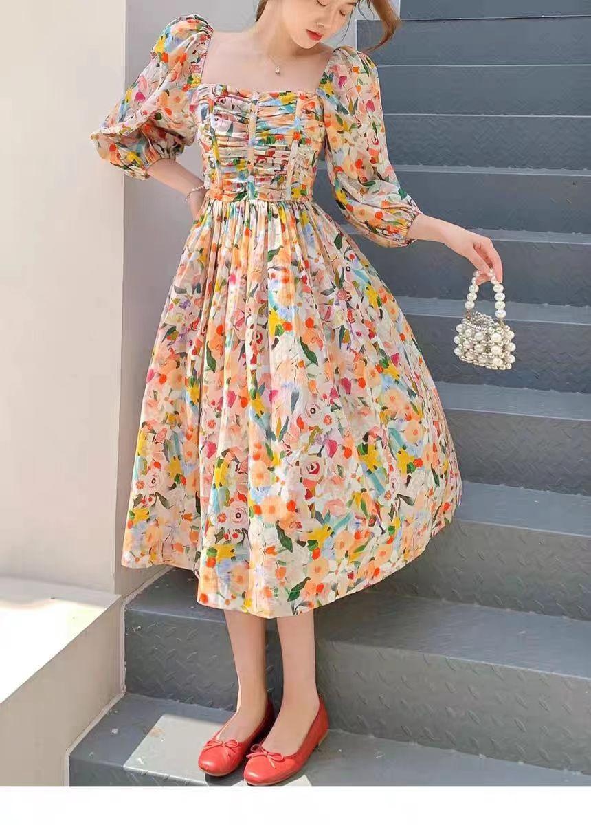 Vestido de verano para niños con mangas abullonadas y estampado floral estilo Hepburn francés de alta gama, estilo occidental, retro chic