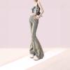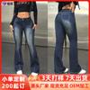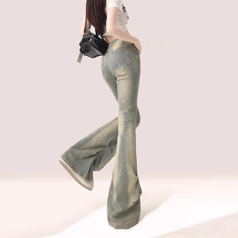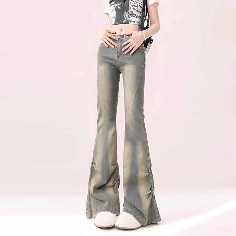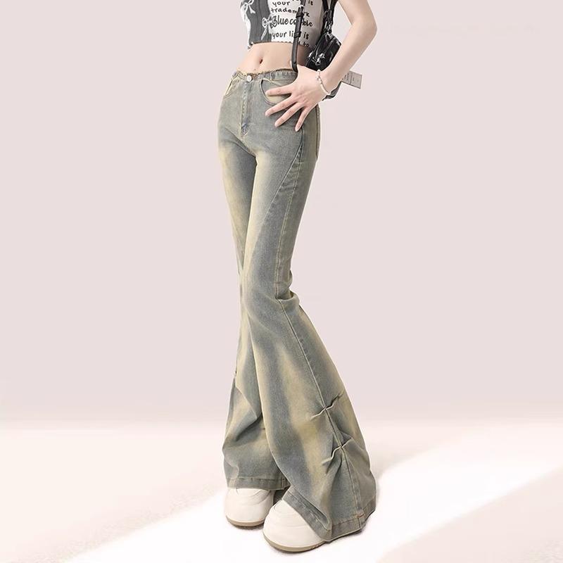 Jeans de Cintura Baja con Orilla Cruda para Mujer 2025 Americano Retro Corte Slim Versátil Elástico Sexy Pantalones Horseshoe hasta el Piso