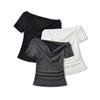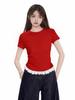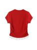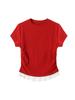 Playera de Encaje Rojo con Hombros Descubiertos para Chica Caliente para Verano y Verano Diseño Irregular Corta Ajustada a la Cintura