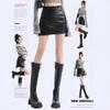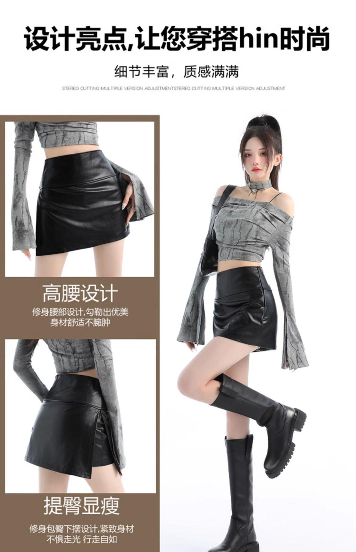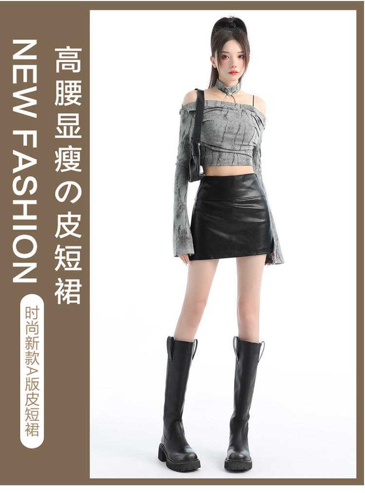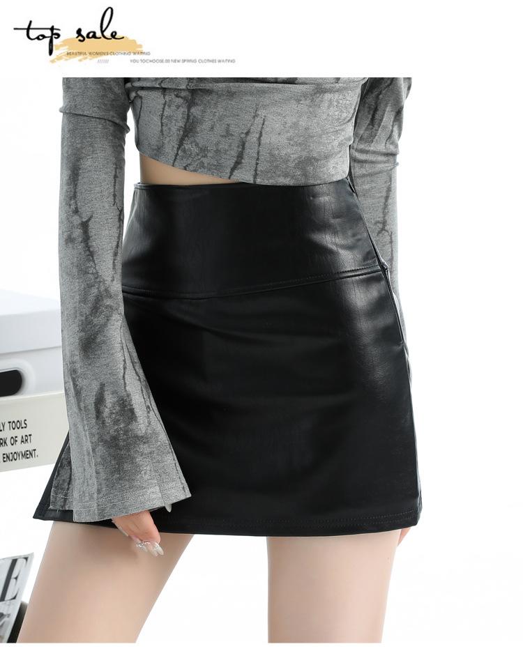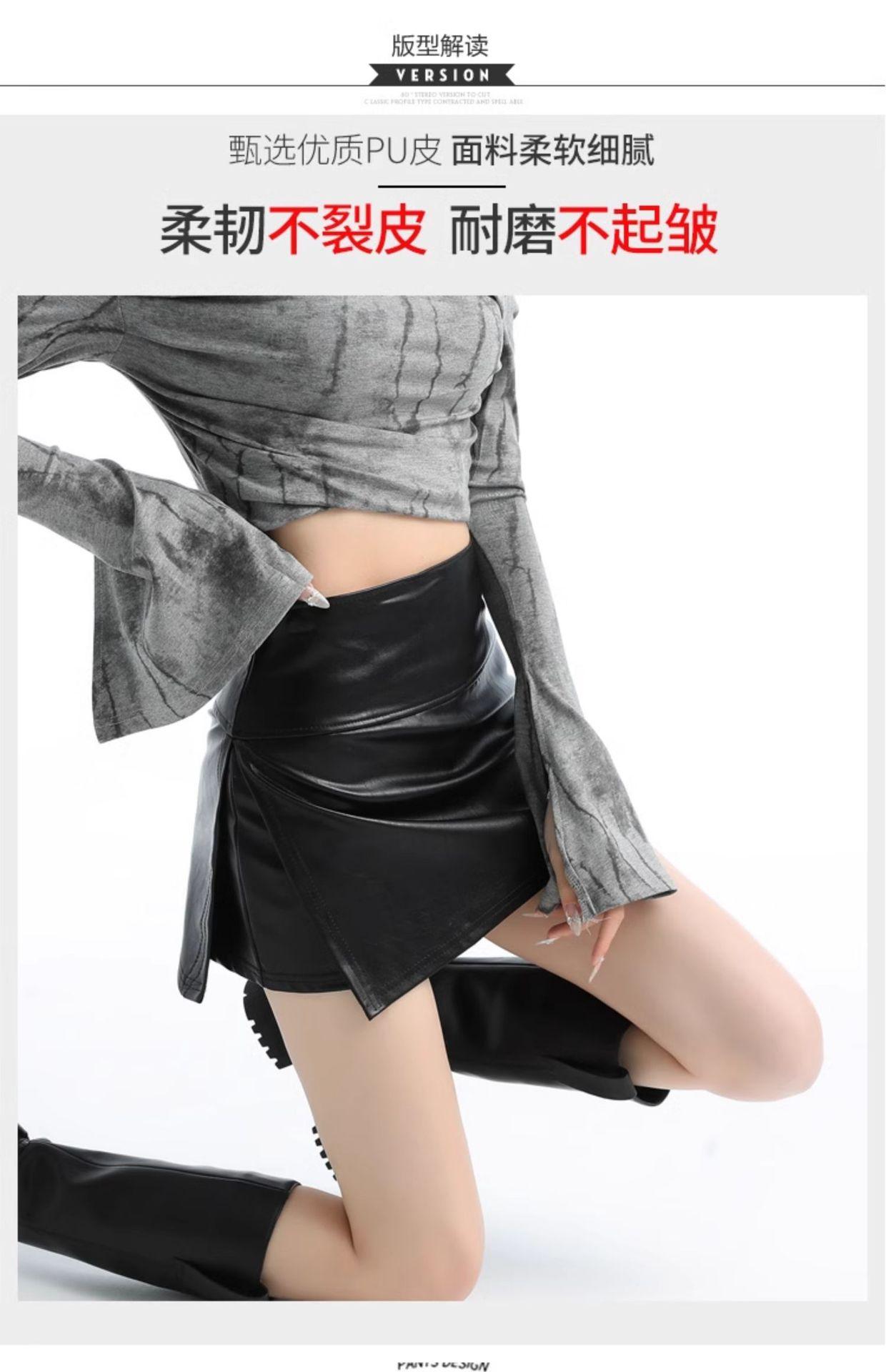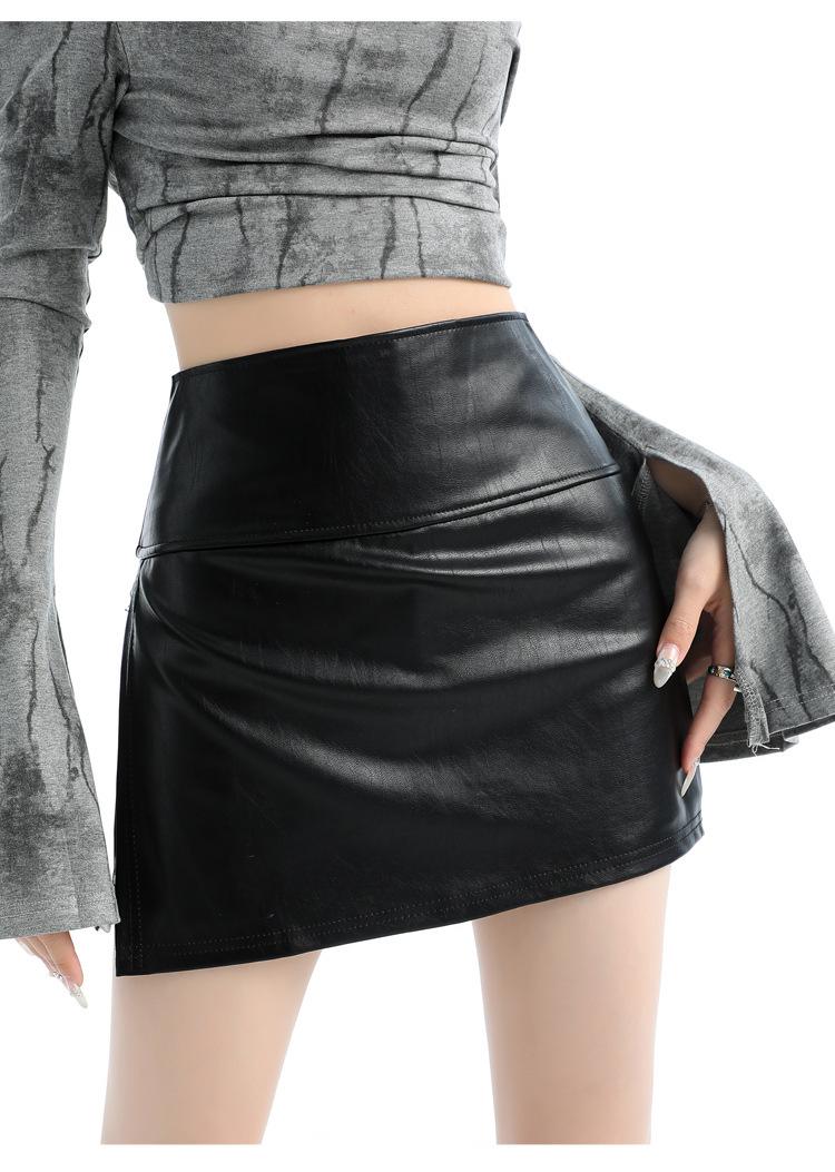 Falda de cuero negra con abertura, falda corta, vestido de verano para mujer, nueva falda de cadera 2025, pantalones de cintura alta, falda de corte A