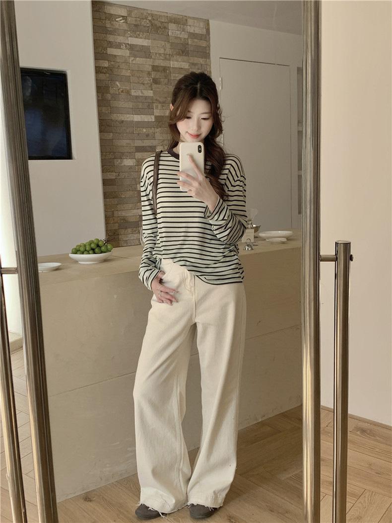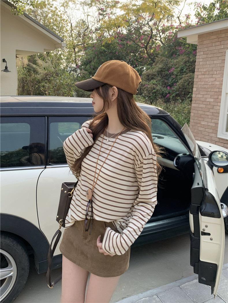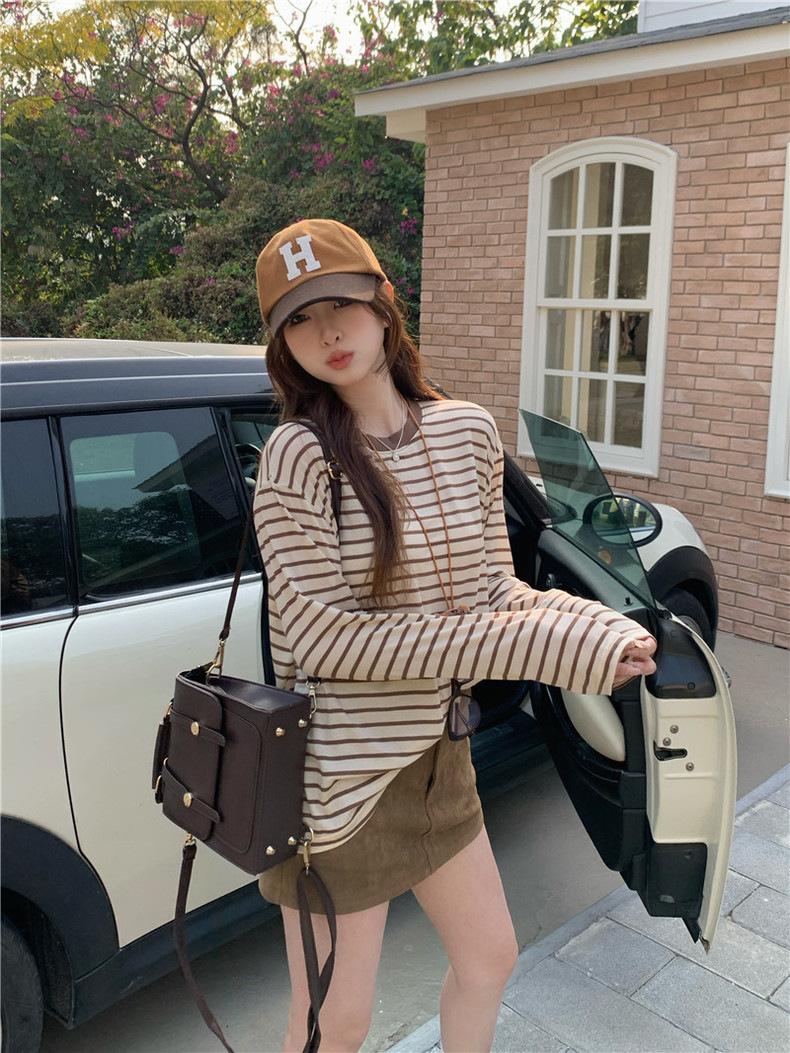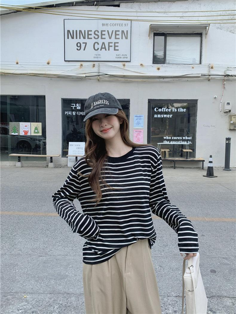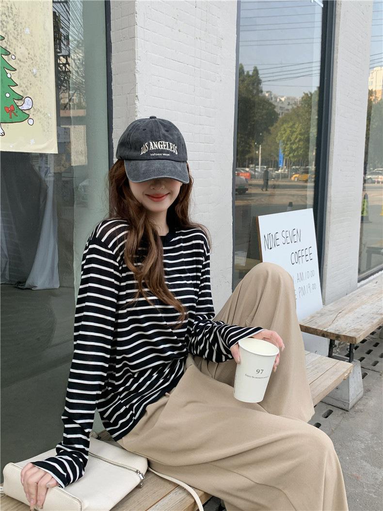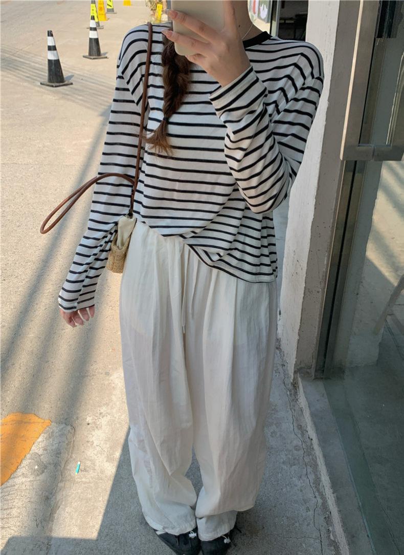 Camiseta de seda de hielo a rayas con protección solar, primavera y verano 2025, nueva blusa fina, holgada, adelgazante, de manga larga y cuello redondo para mujer