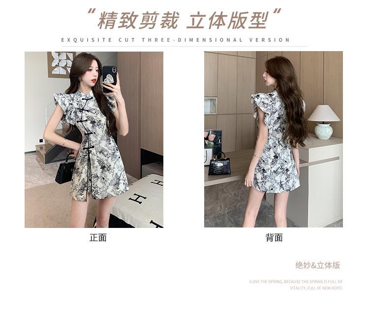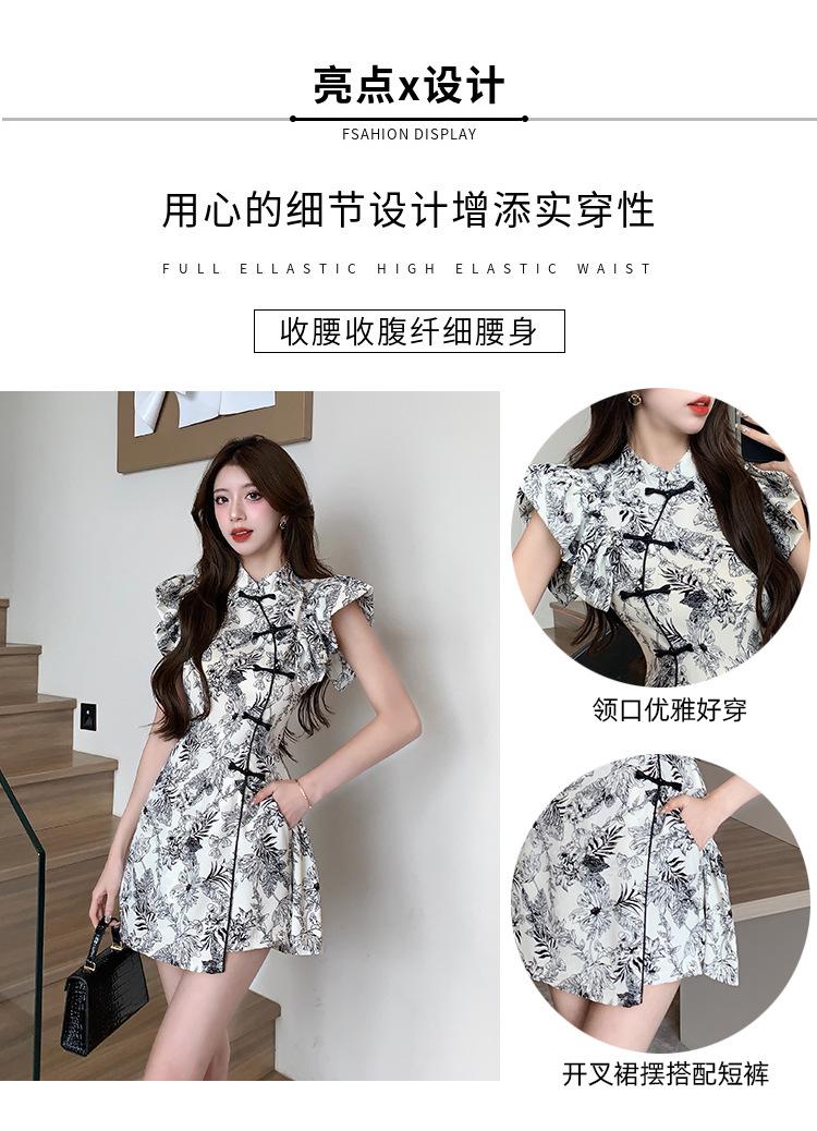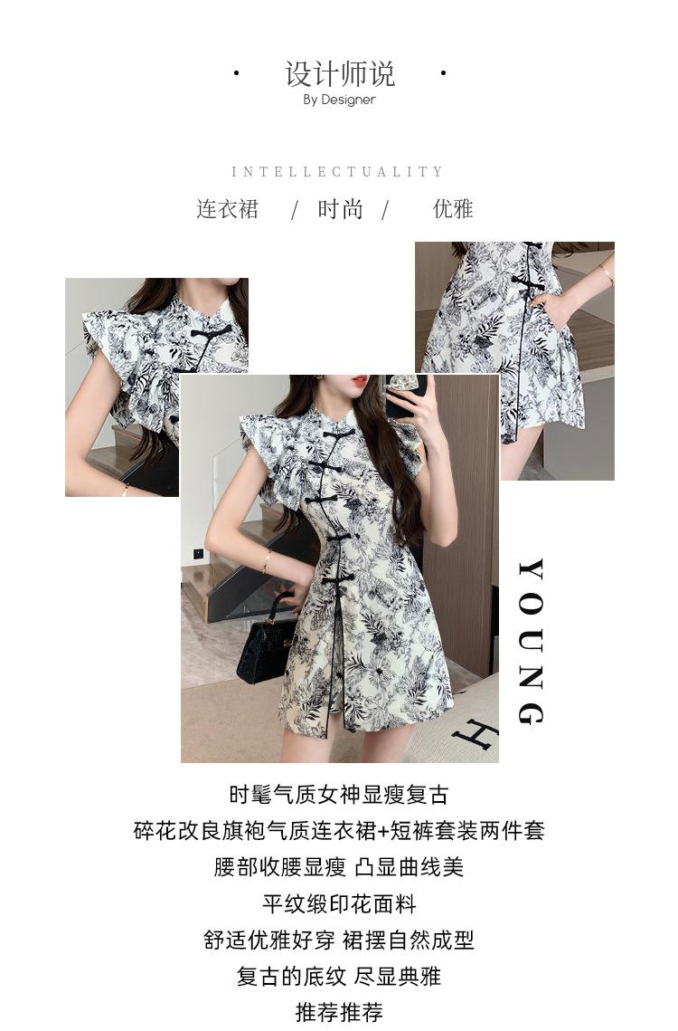 Traje de Estilo Nacional de Estilo Chino Nuevo 2025 para Mujer Verano Nuevo Top con Abertura de Botón Pantalones Cortos de Cintura Elástica Conjunto de Dos Piezas