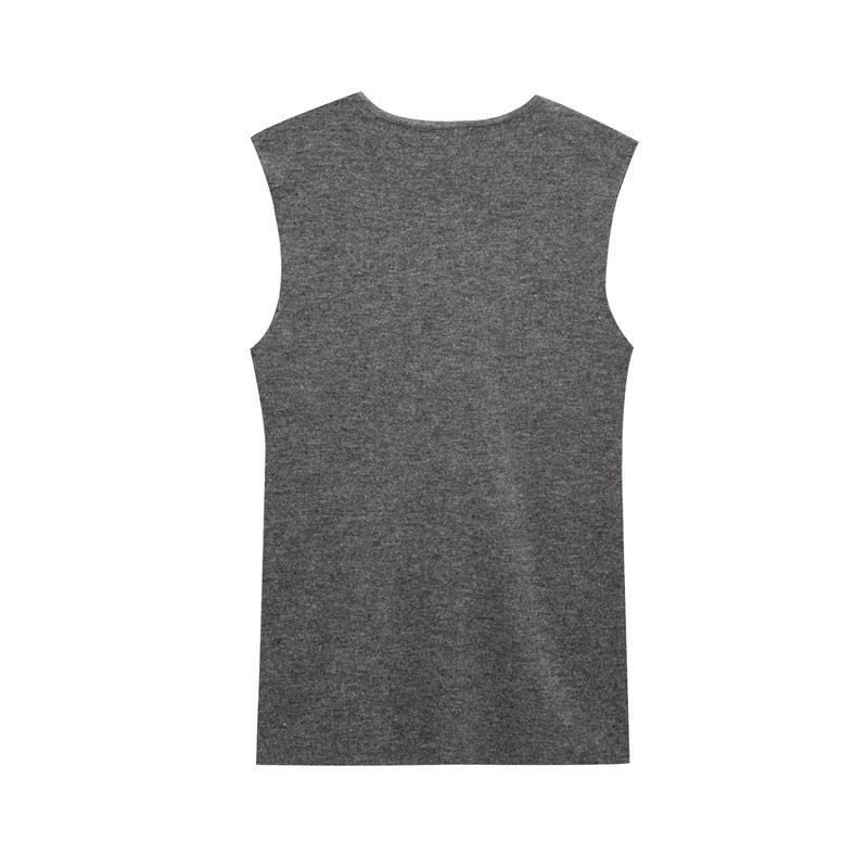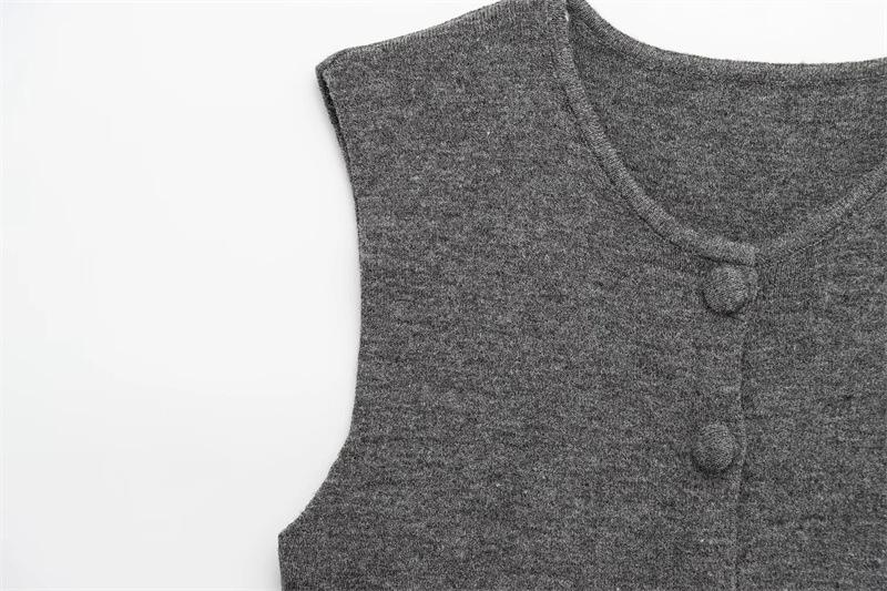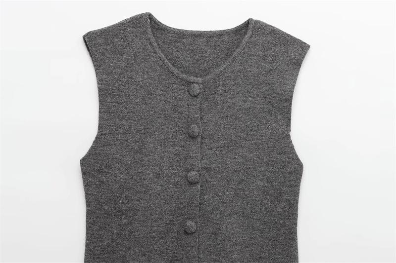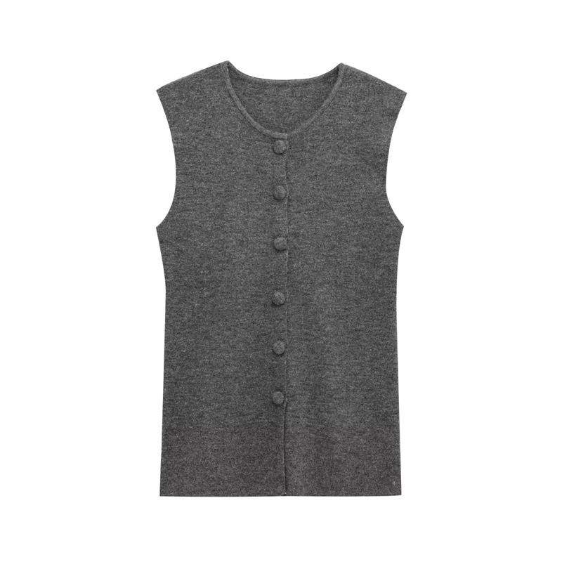 Chaleco de Punto sin Mangas de Estilo Europeo y Americano, Moderno, Sencillo, de Cuello Redondo, con Botonadura Sencilla, Primavera, Ajustado, Largo Medio, Top Casual para Mujer