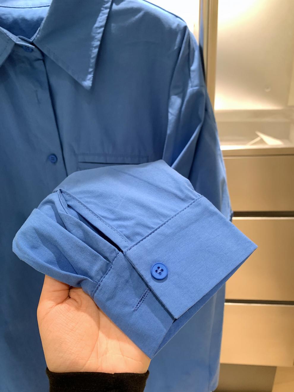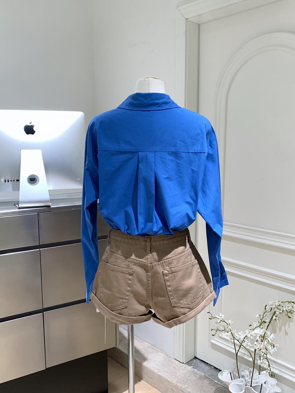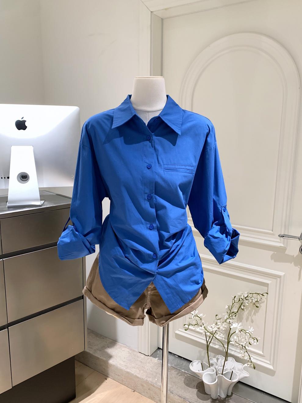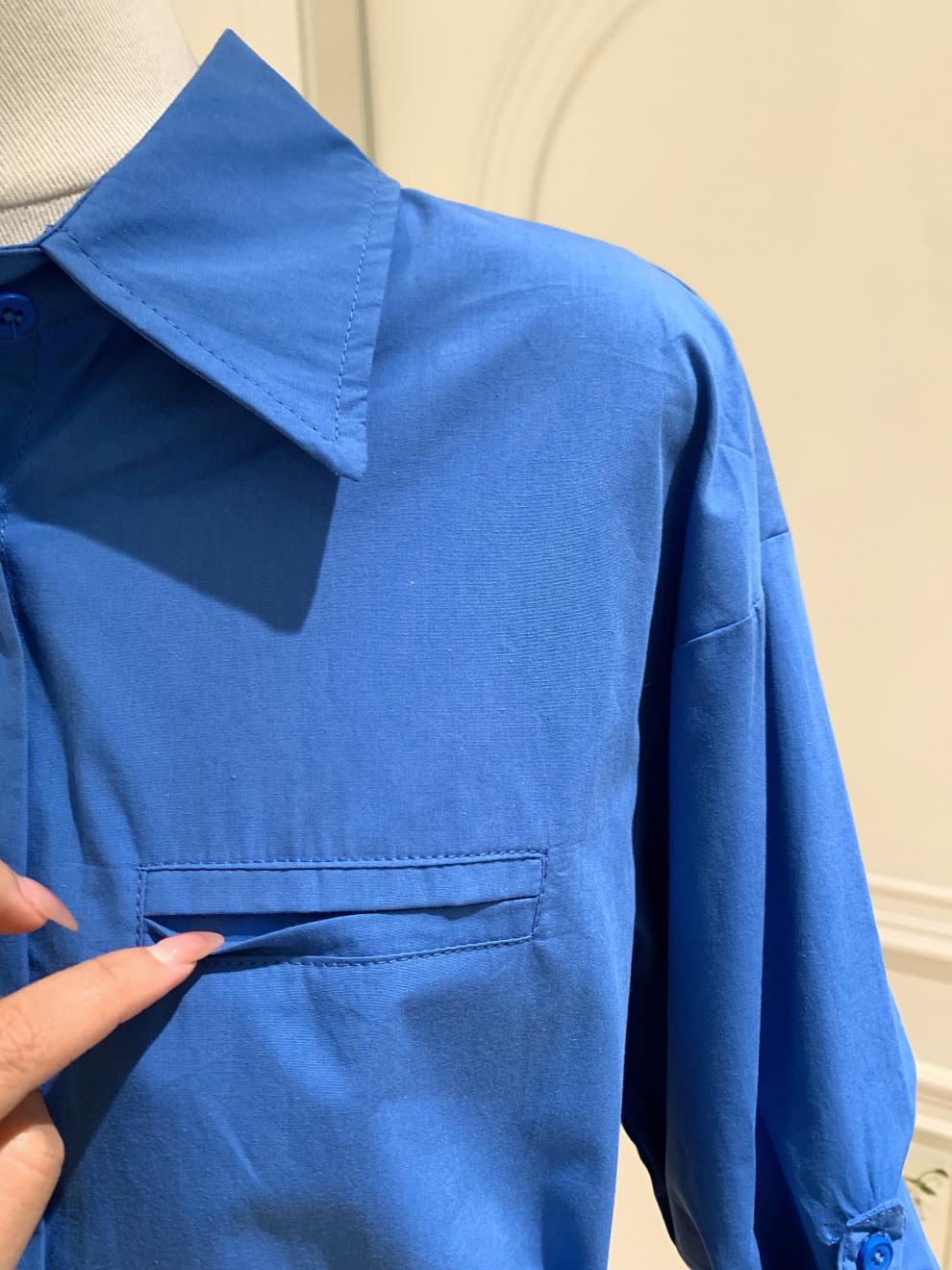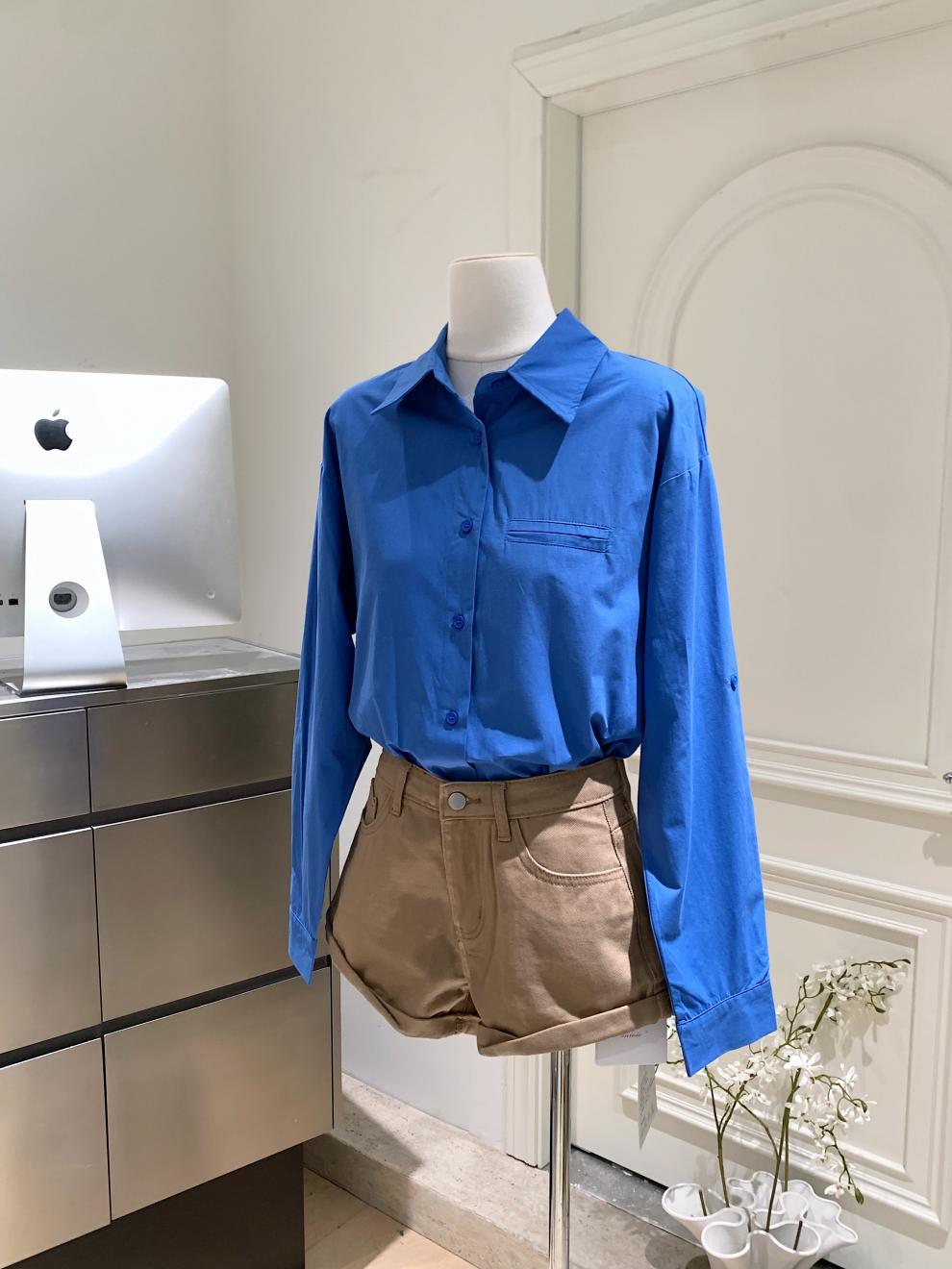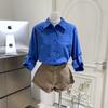 Camisa de Manga Larga Azul Prusia Azul Klein para Mujer Camisa Coreana de Primavera y Otoño Top con Sentido del Diseño