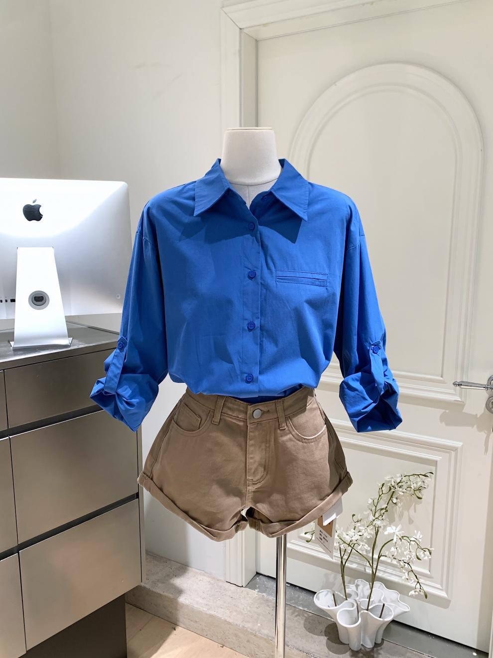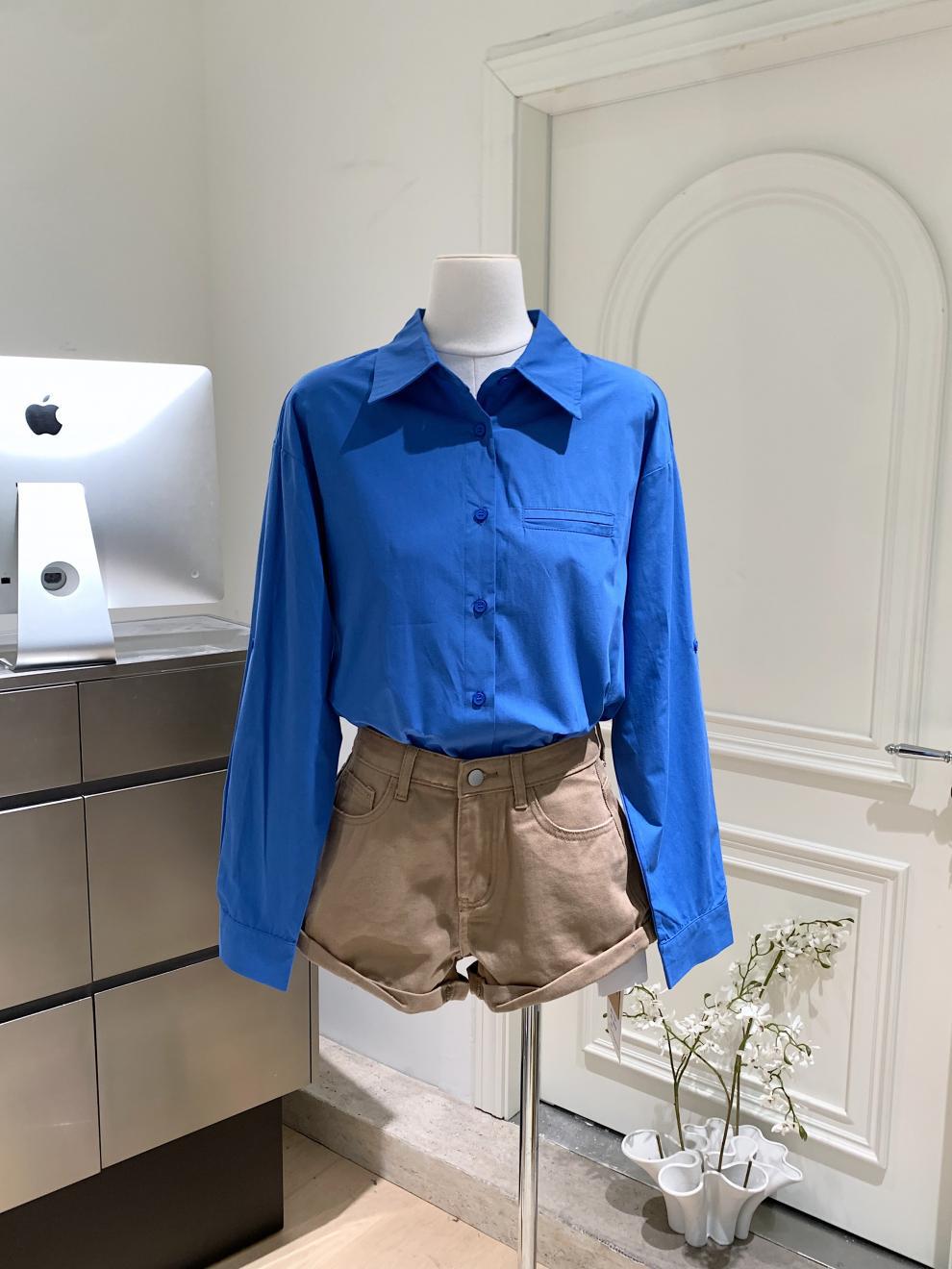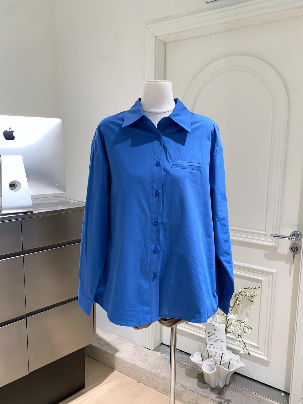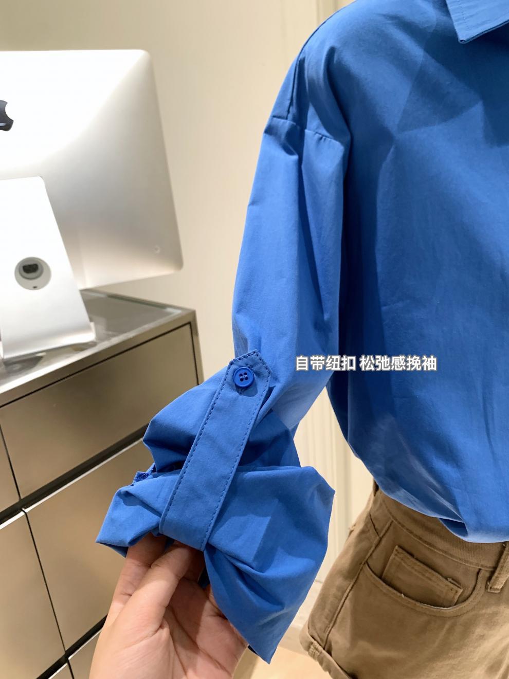 Camisa de Manga Larga Azul Prusia Azul Klein para Mujer Camisa Coreana de Primavera y Otoño Top con Sentido del Diseño