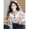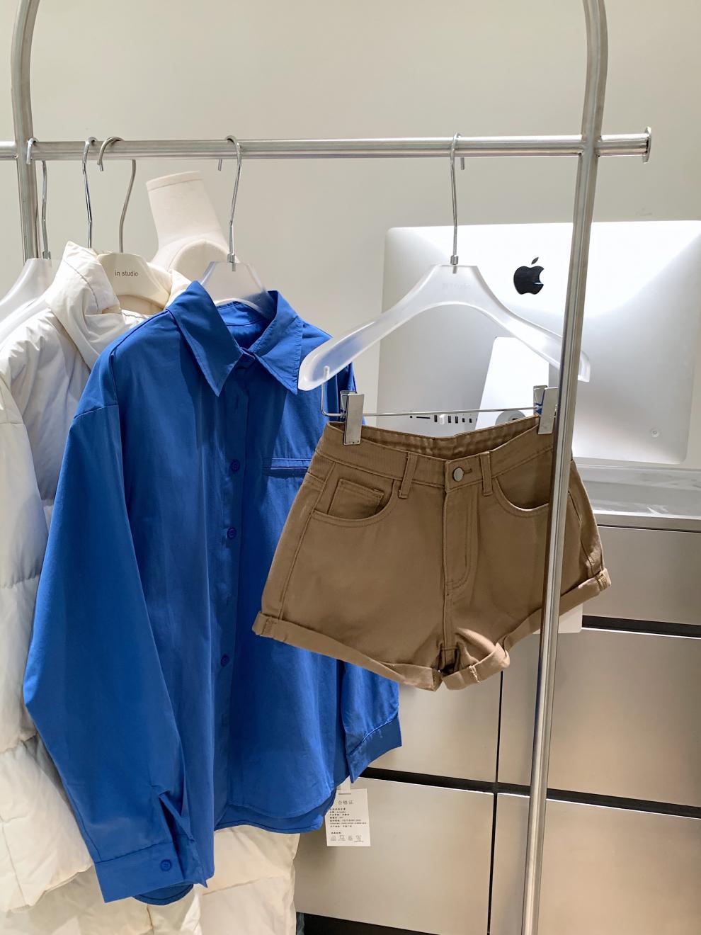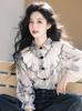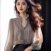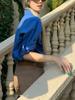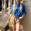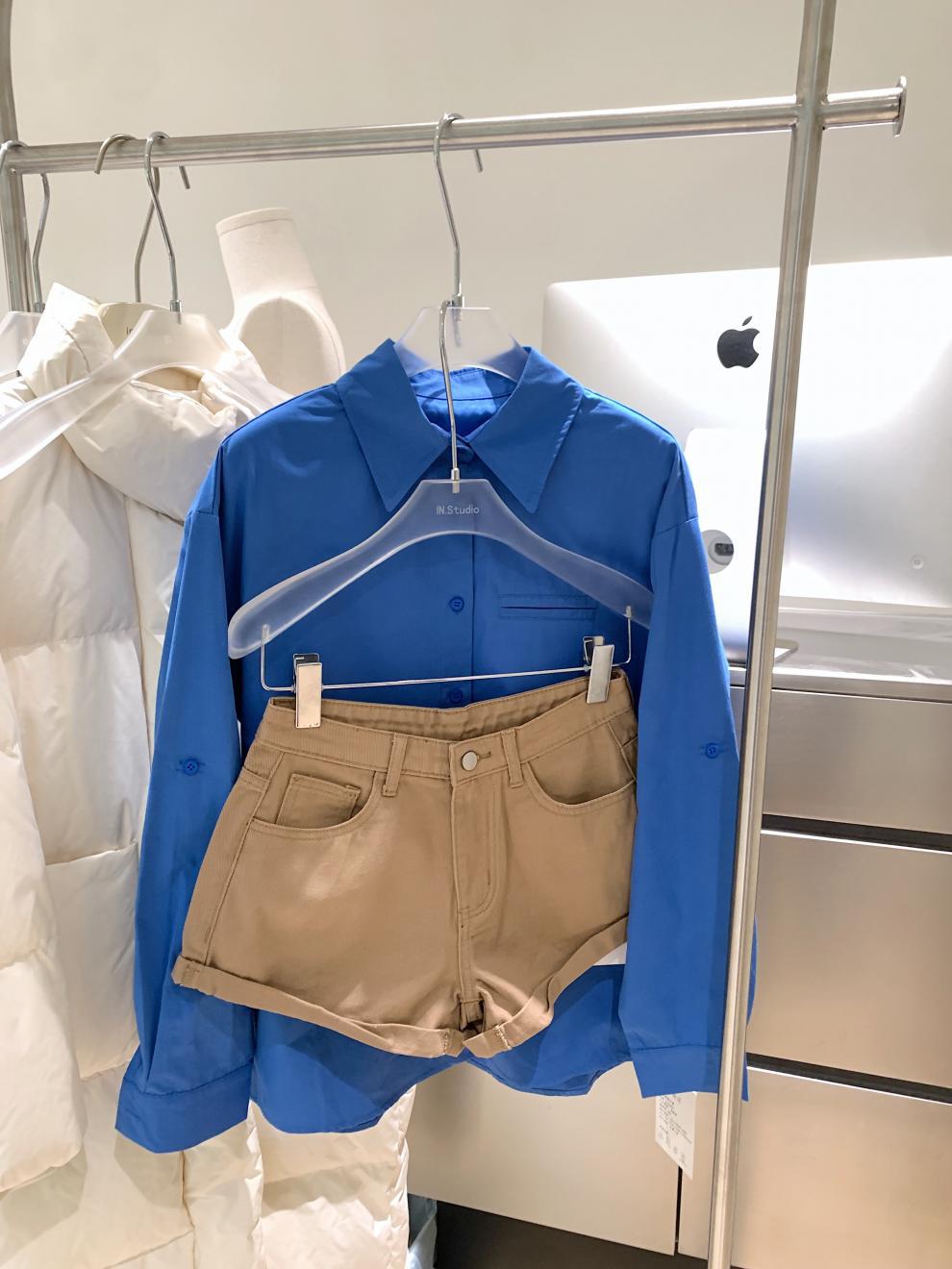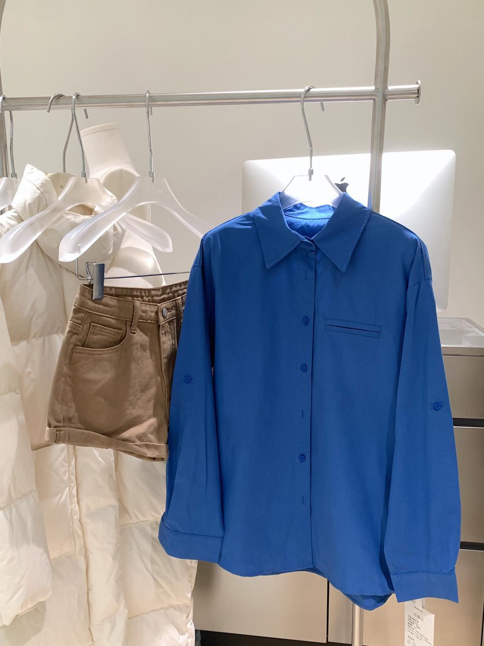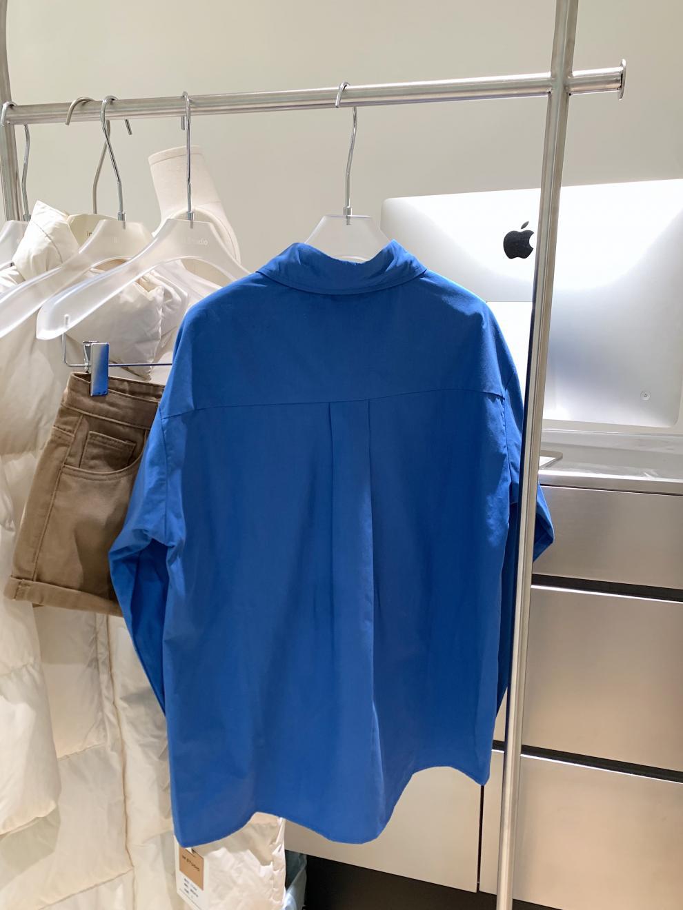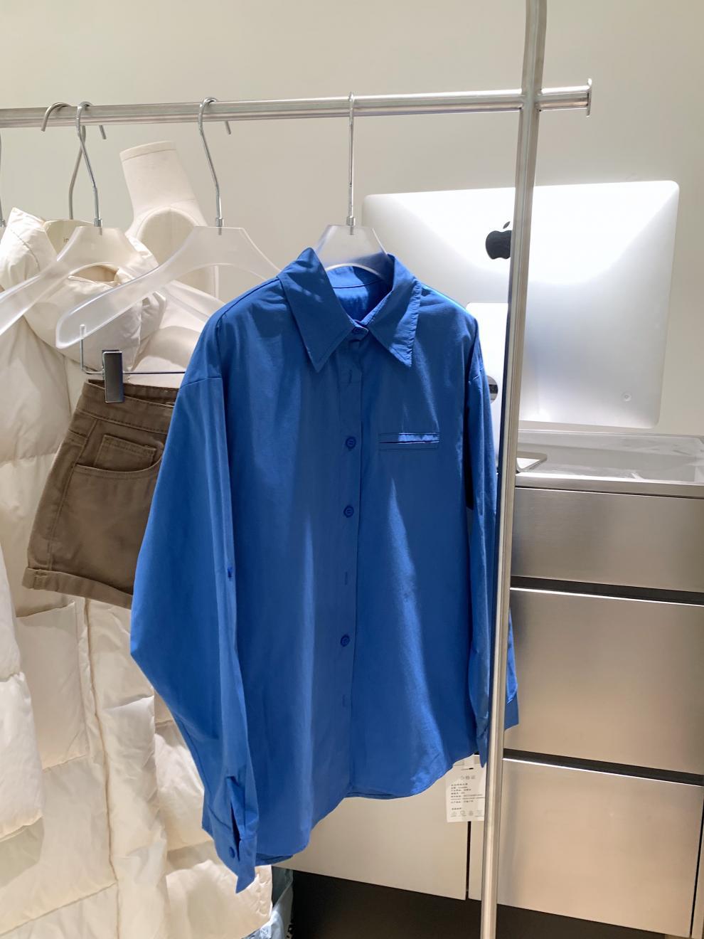 Camisa de Manga Larga Azul Prusia Azul Klein para Mujer Camisa Coreana de Primavera y Otoño Top con Sentido del Diseño