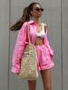Cárdigan de algodón puro transfronterizo, traje corto de manga larga, primavera y verano 2025, traje informal sencillo de color sólido estilo europeo y americano para mujer