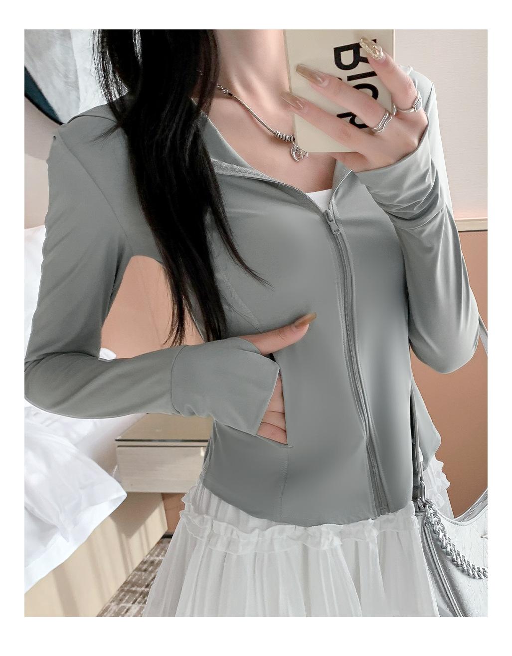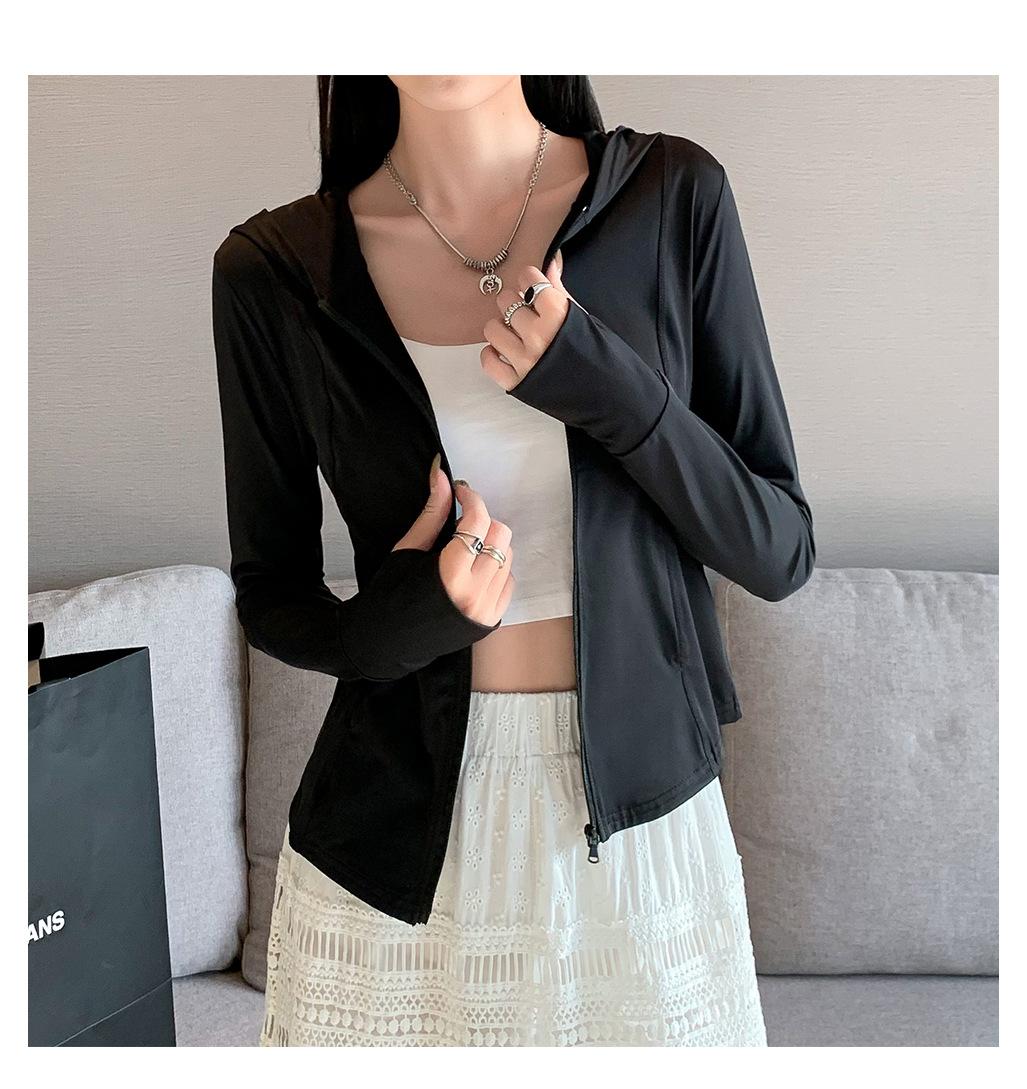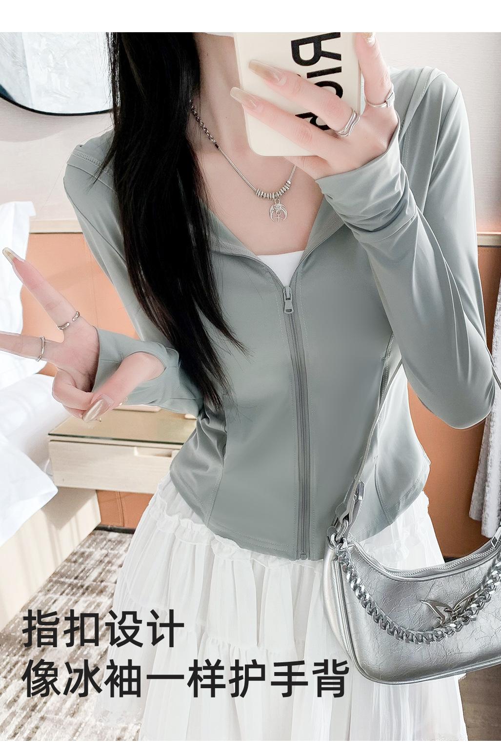Ropa de Protección Solar para Verano, Delgada y Fina, Cárdigan de Seda de Hielo con Bolsillos, Cómodo, Transpirable, Blusa con Capucha Anti-UV para Protección Solar