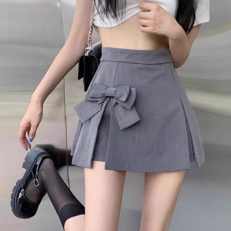 Color de Falda Gris Abierto para Mujer Verano Nuevo Estilo Coreano Cintura Alta Traje Falda Línea A Adelgazante Combinable Falda de Cadera