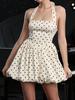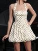 2025 Nuevo Vestido de Tirantes de Lunares Franceses de Moda Europea y Americana Transfronteriza Sexy Cintura Ceñida Halter Vacaciones Vestido Pomposo
