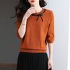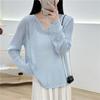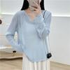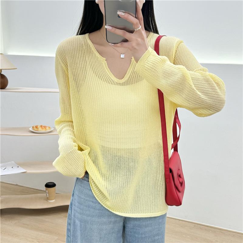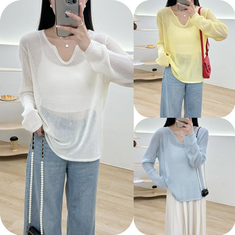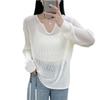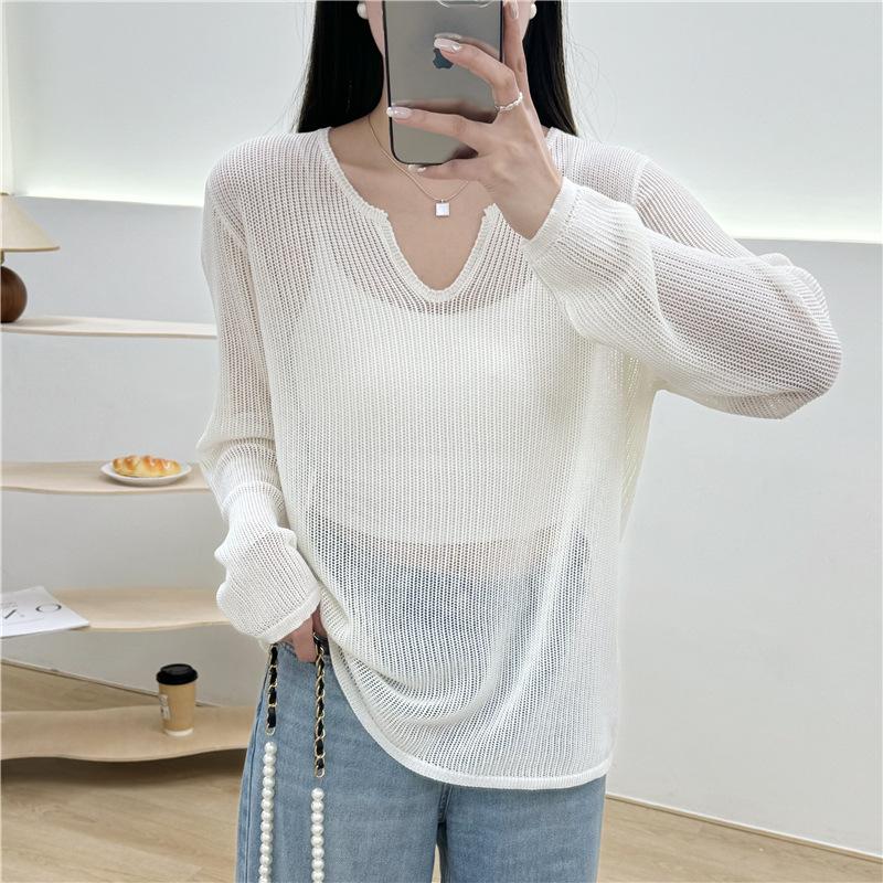 Suéter de punto calado de seda helada con cuello en V y estilo perezoso para mujer, novedad de verano de 2025, suéter holgado y adelgazante para mujer