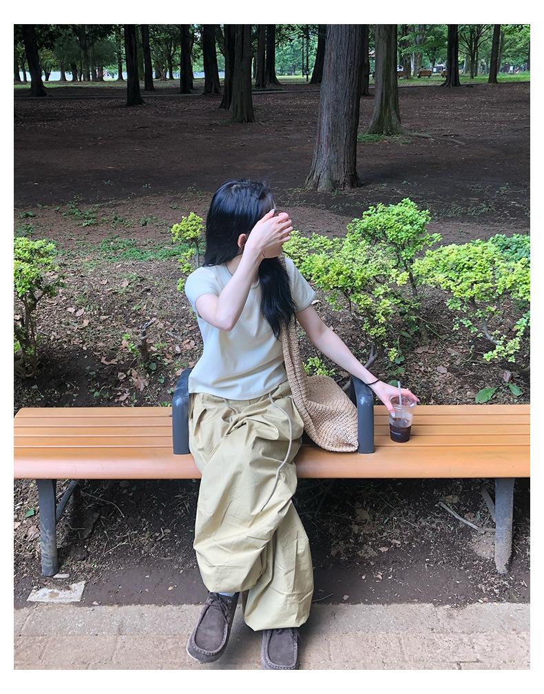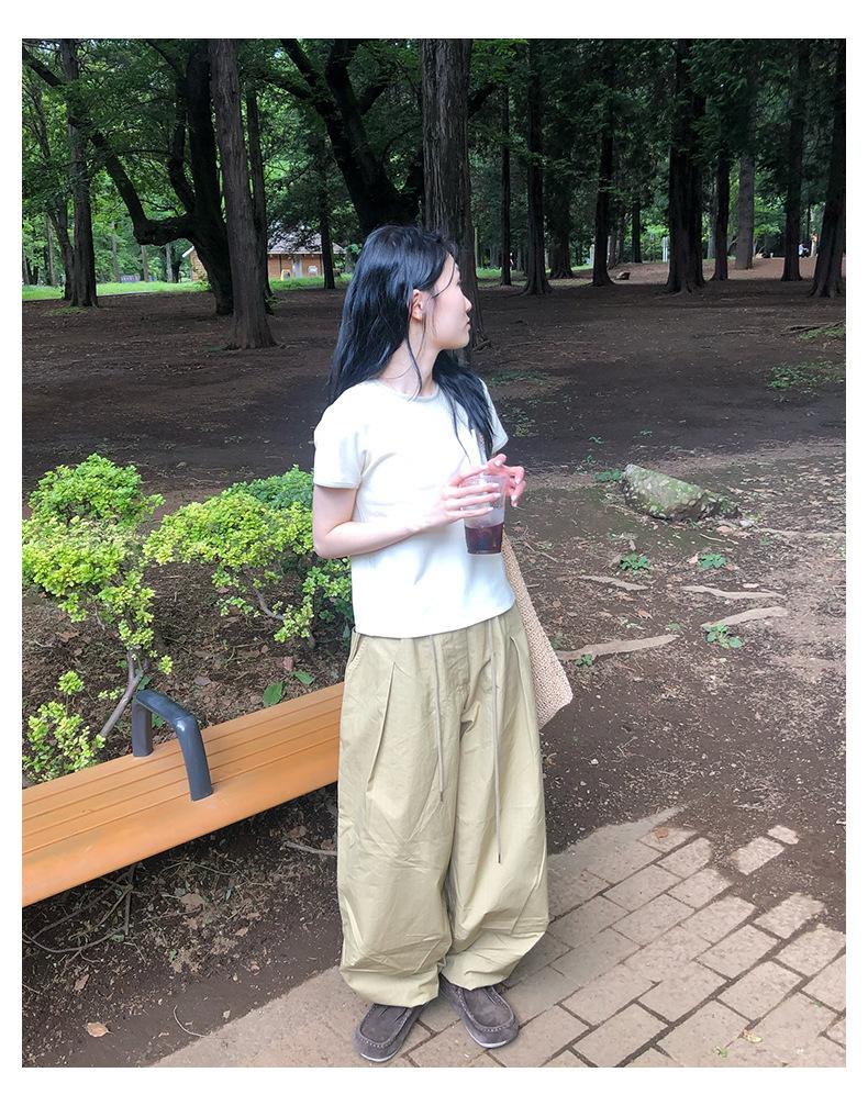 2025 Primavera Nuevo Corea del Sur Dongdaemun Simple Diario Viajero Versátil Perfil Adelgazante Cordones Pantalones Casuales para Mujer