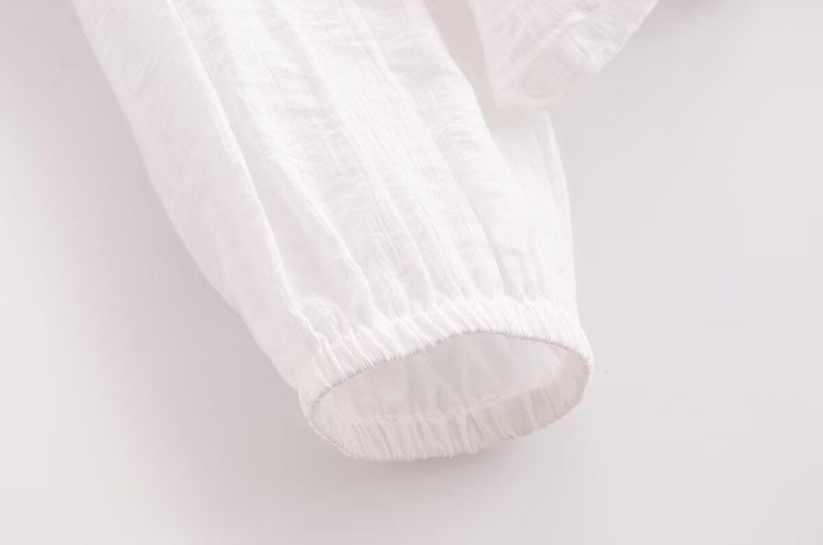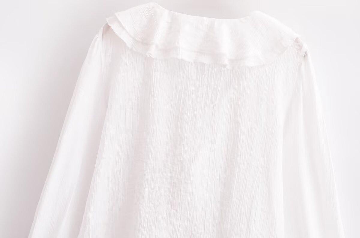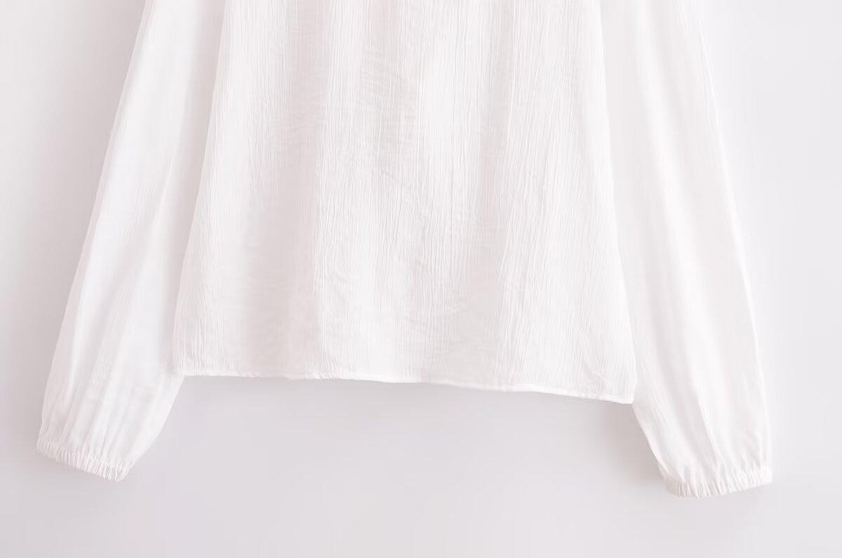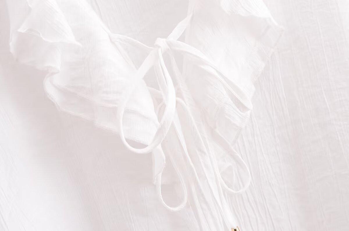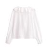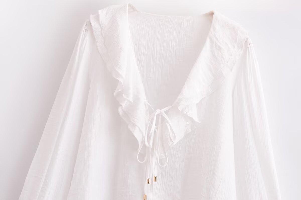 80011-Estilo europeo y americano 2025 nueva blusa de encaje con volantes y cuello en V para mujer, camisa sexy de moda de manga larga ajustada
