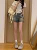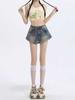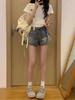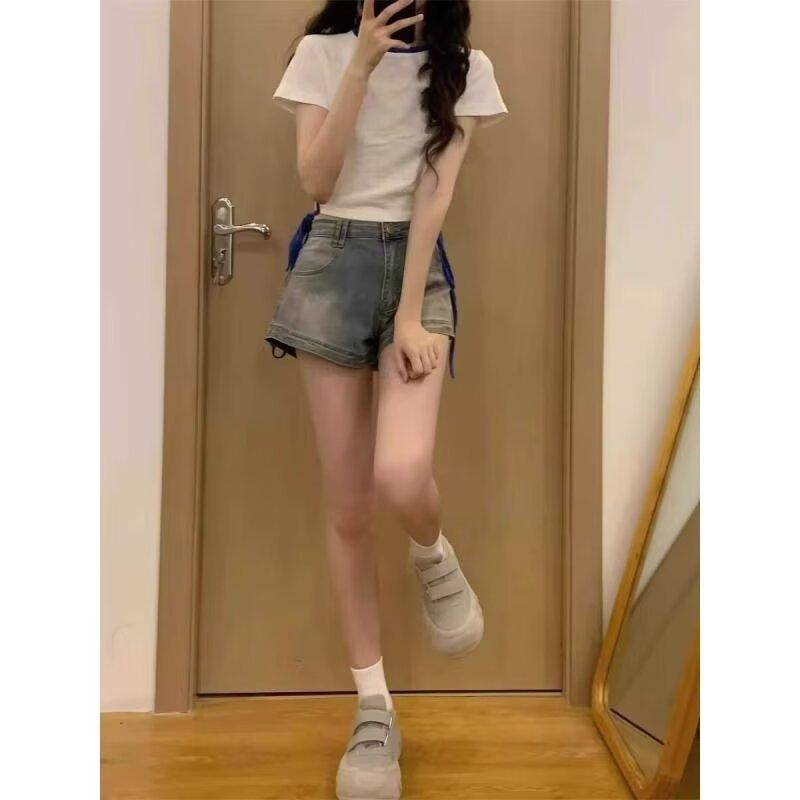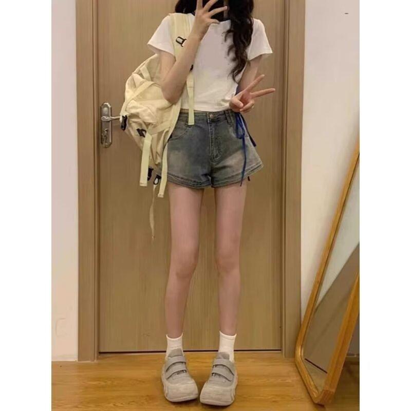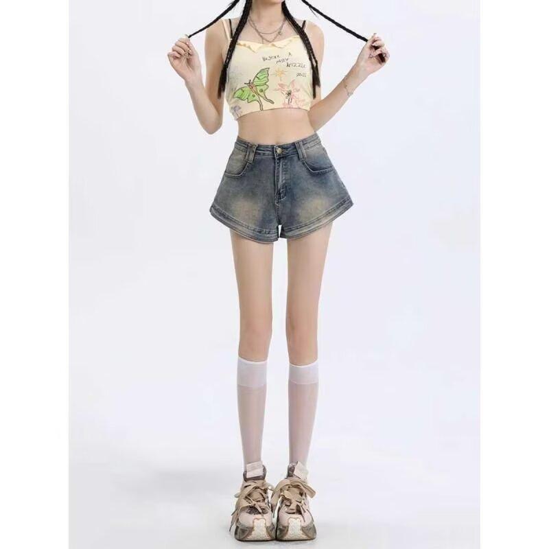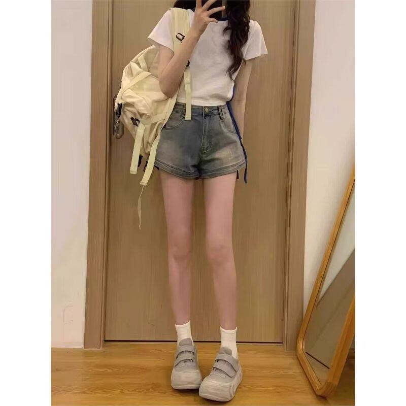Pantalones cortos vaqueros retro americanos para mujer, de verano, con diseño de chica sexy, cintura alta, ajustados, adelgazantes, estilo A-shorts.