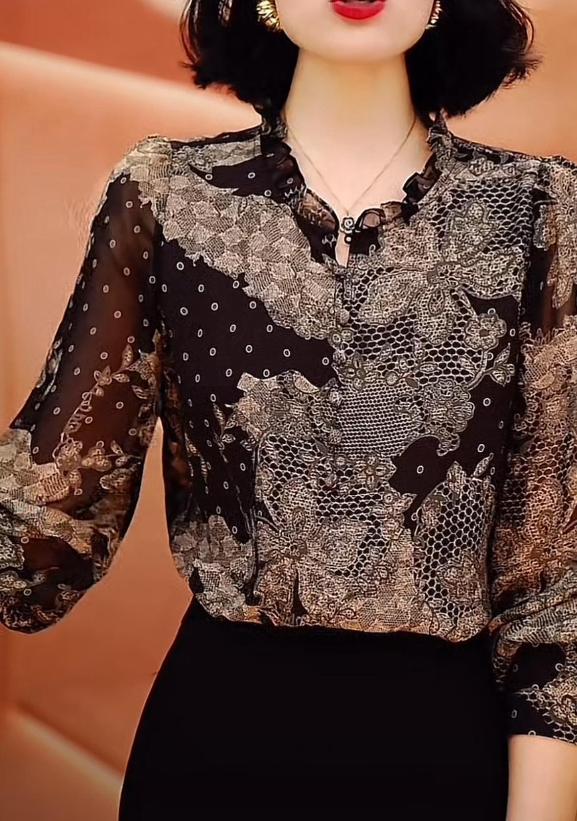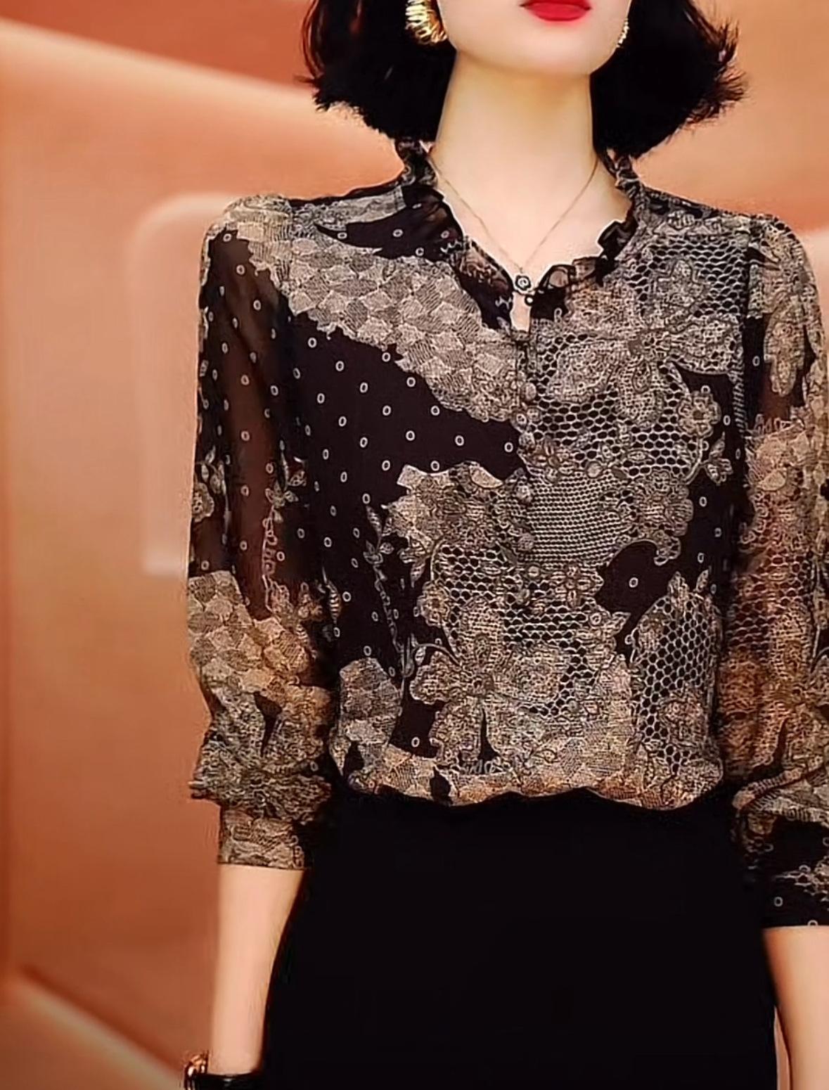 Nuevos Tops Retro 2025, Pulóveres Transpirables y Versátiles, Elegantes Camisas Finas de Gasa Estampadas, Modernos