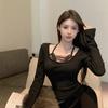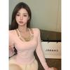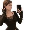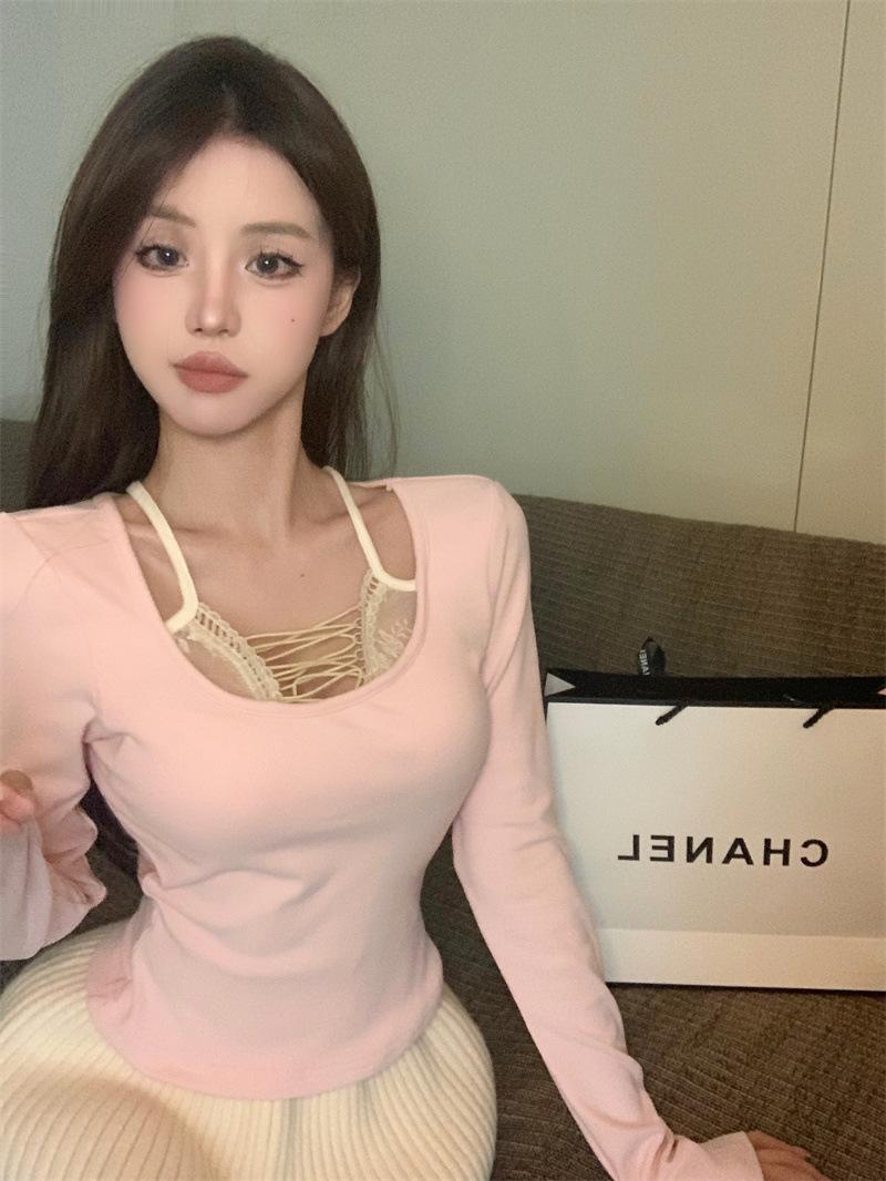 Estilo Deseo Puro Spice Girl Sexy Encaje Puntadas Camiseta de Manga Larga Otoño Nicho Nuevo Ajustado Adelgazante Moda Top Ins
