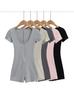 Mono sexy de estilo europeo y americano para chica guapa con cuello en U, manga corta, estilo nuevo de primavera y verano, versátil, ajustado, base, mono corto