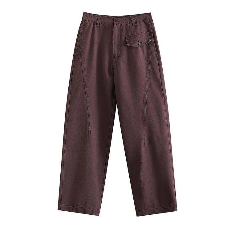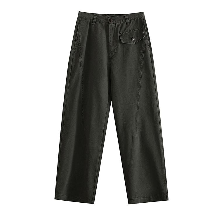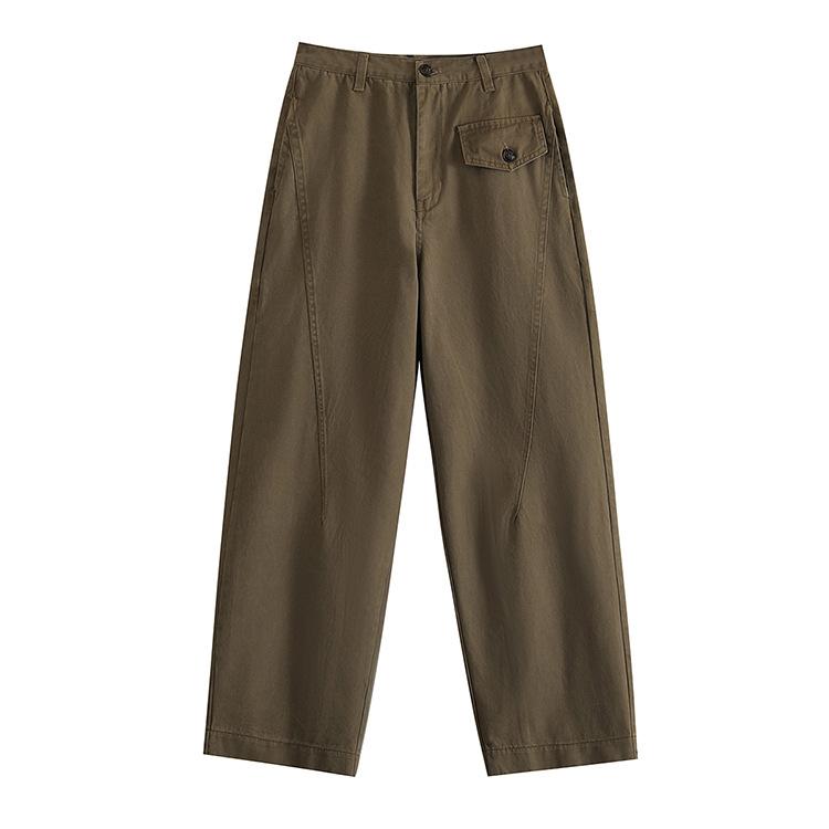 25020-2025 nuevos pantalones de pierna ancha y recta de cintura alta para mujeres de estilo europeo y americano, pantalones casuales sexis con múltiples bolsillos