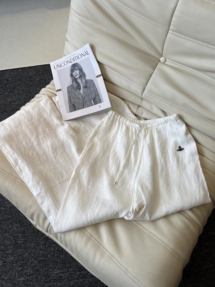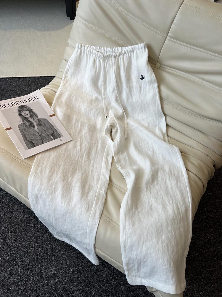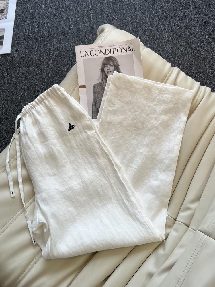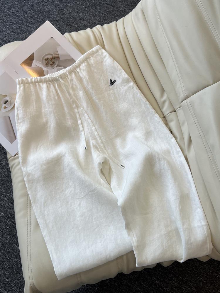 Nanyou versión alta 2025 principios de primavera nueva ropa de lino pantalones de pierna ancha diseño nicho pantalones blancos de moda